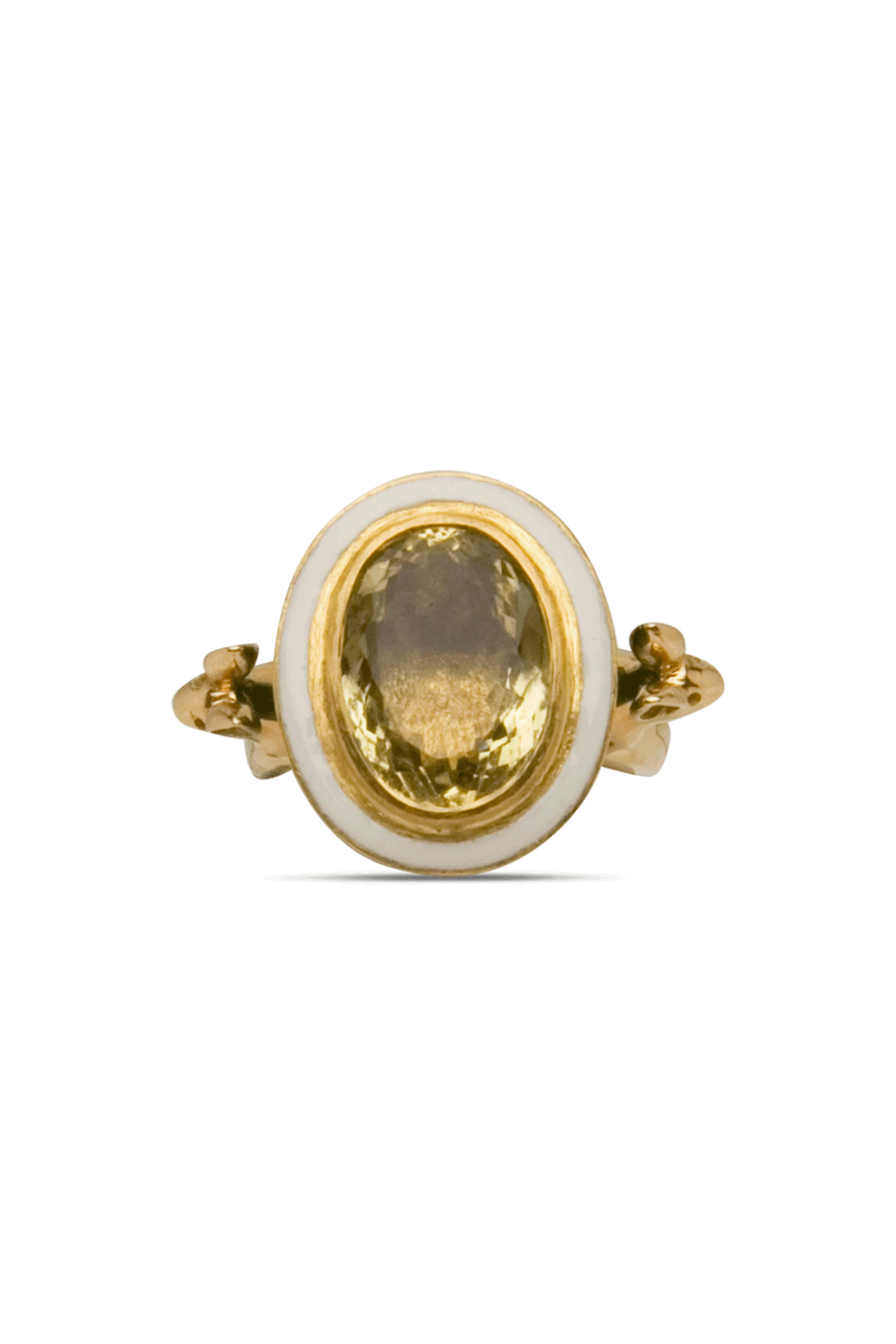 Carla Rockmore 20k Yellow Gold Imperial Rabbit Ring. 20k yellow gold. Yellow aqua stone. Black enamel. 6.5 ring size.