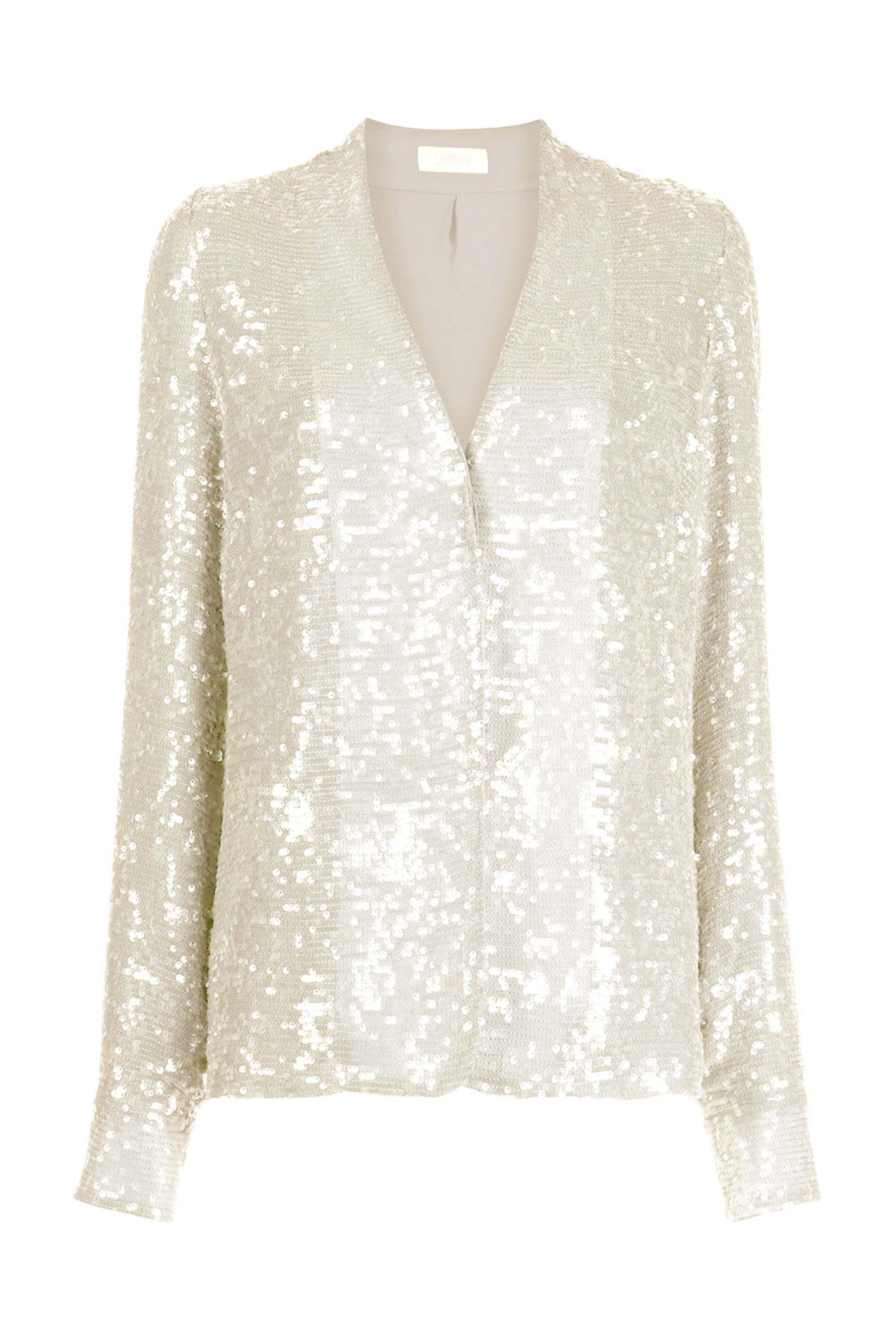 - Lapointe Cream Sequin V Neck Button Down Blouse