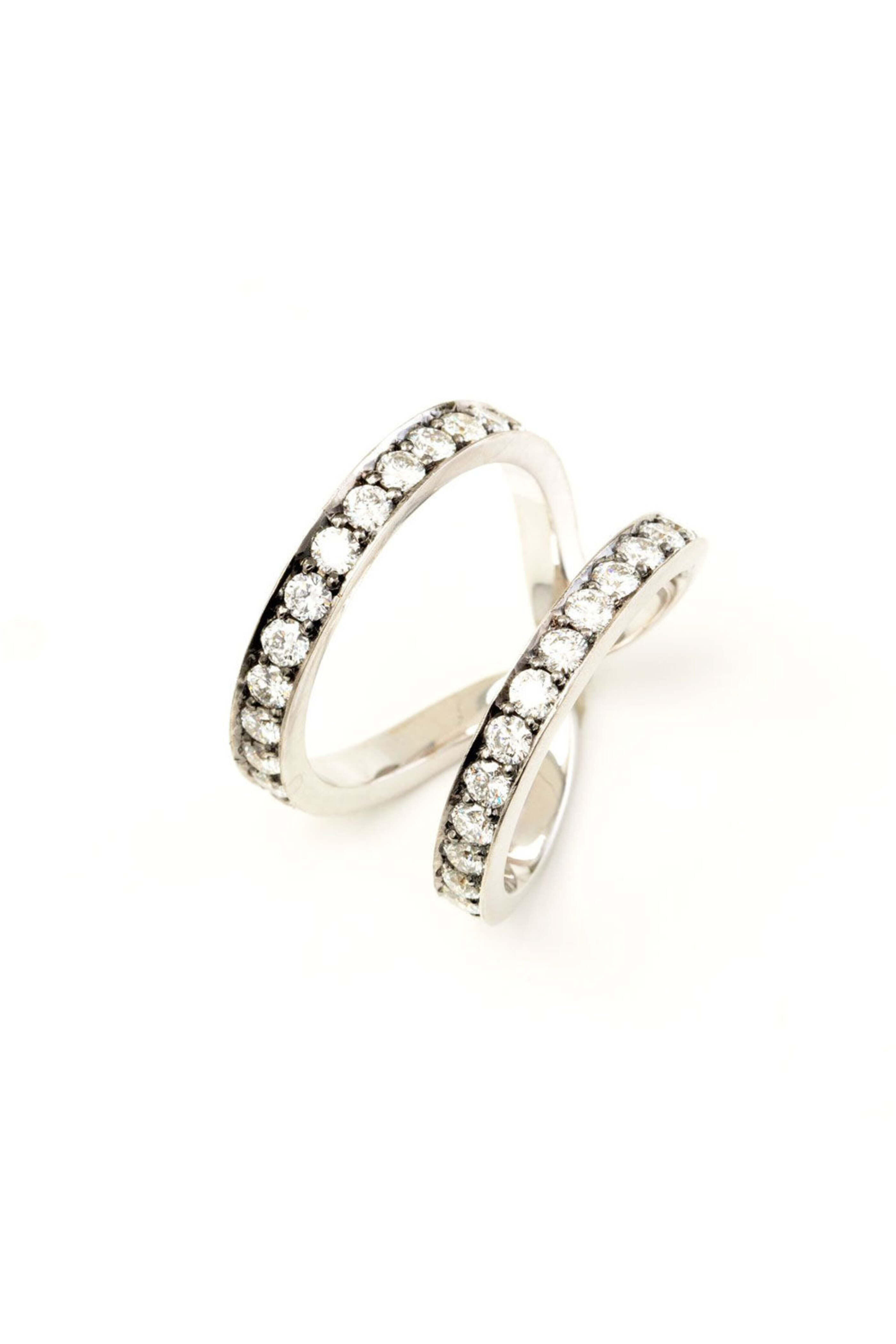 Sylva & Cie Diamond Wonder Woman Ring. 18k white gold. Round brilliant cut diamond 2.4 total carat weight. Double row design. Ring size 5.5. Made in the USA.