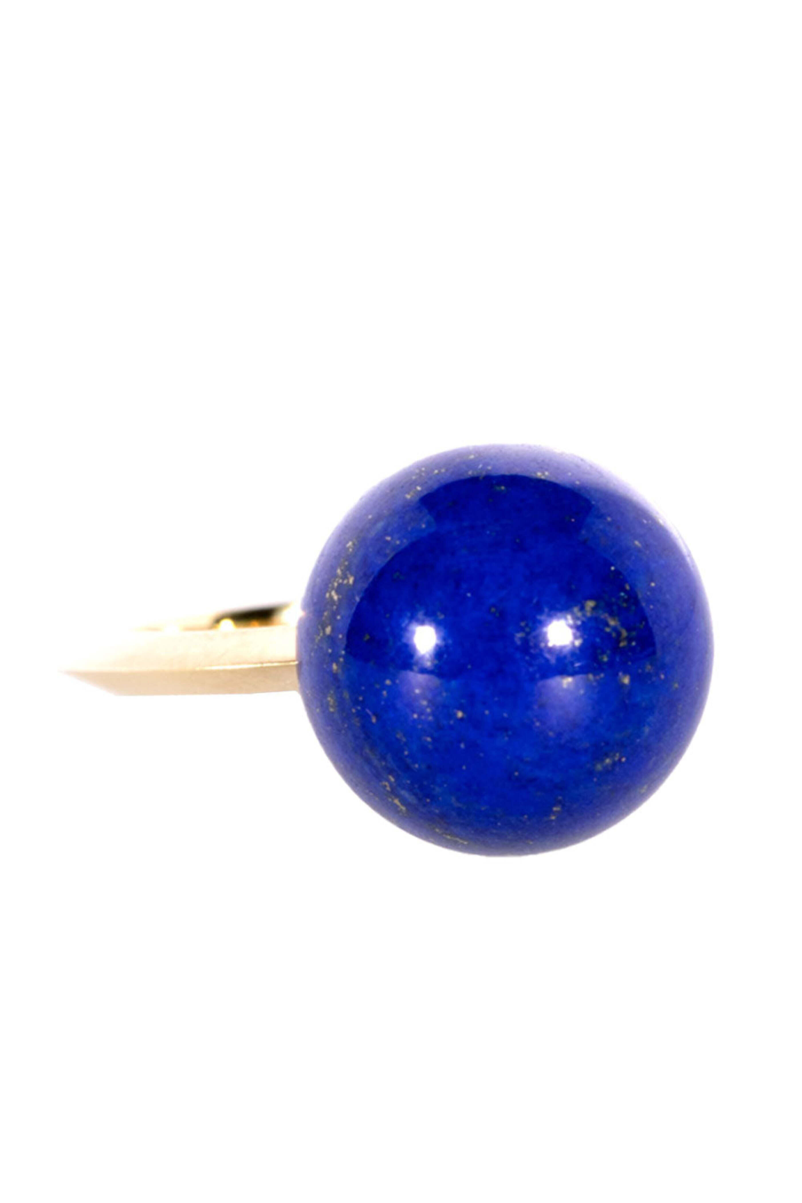 Sylva & Cie Blue Lapis Ball Ring. 18k yellow gold. Blue lapis. Ball cut. 14mm. Ring size 6.5. Made in the USA.