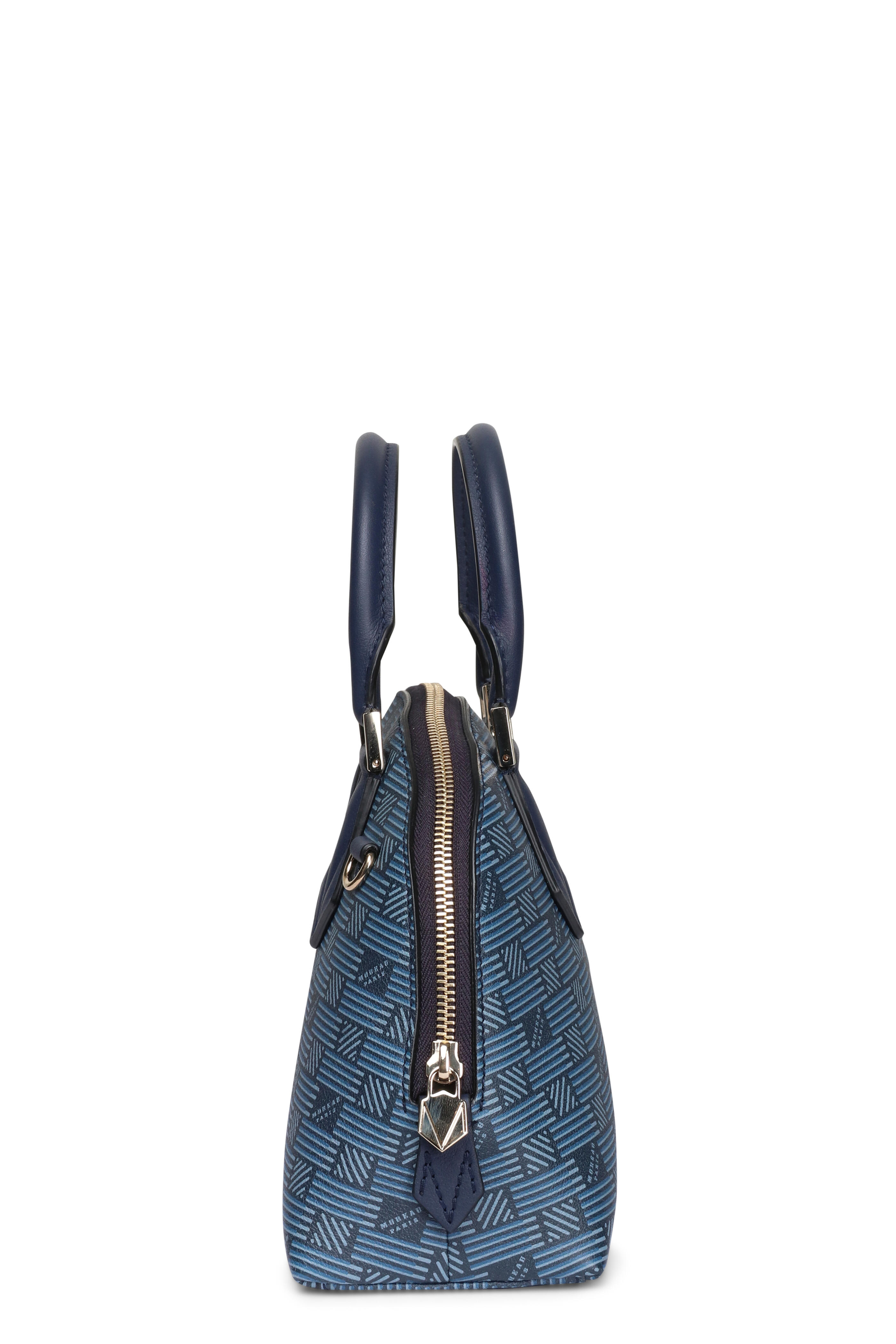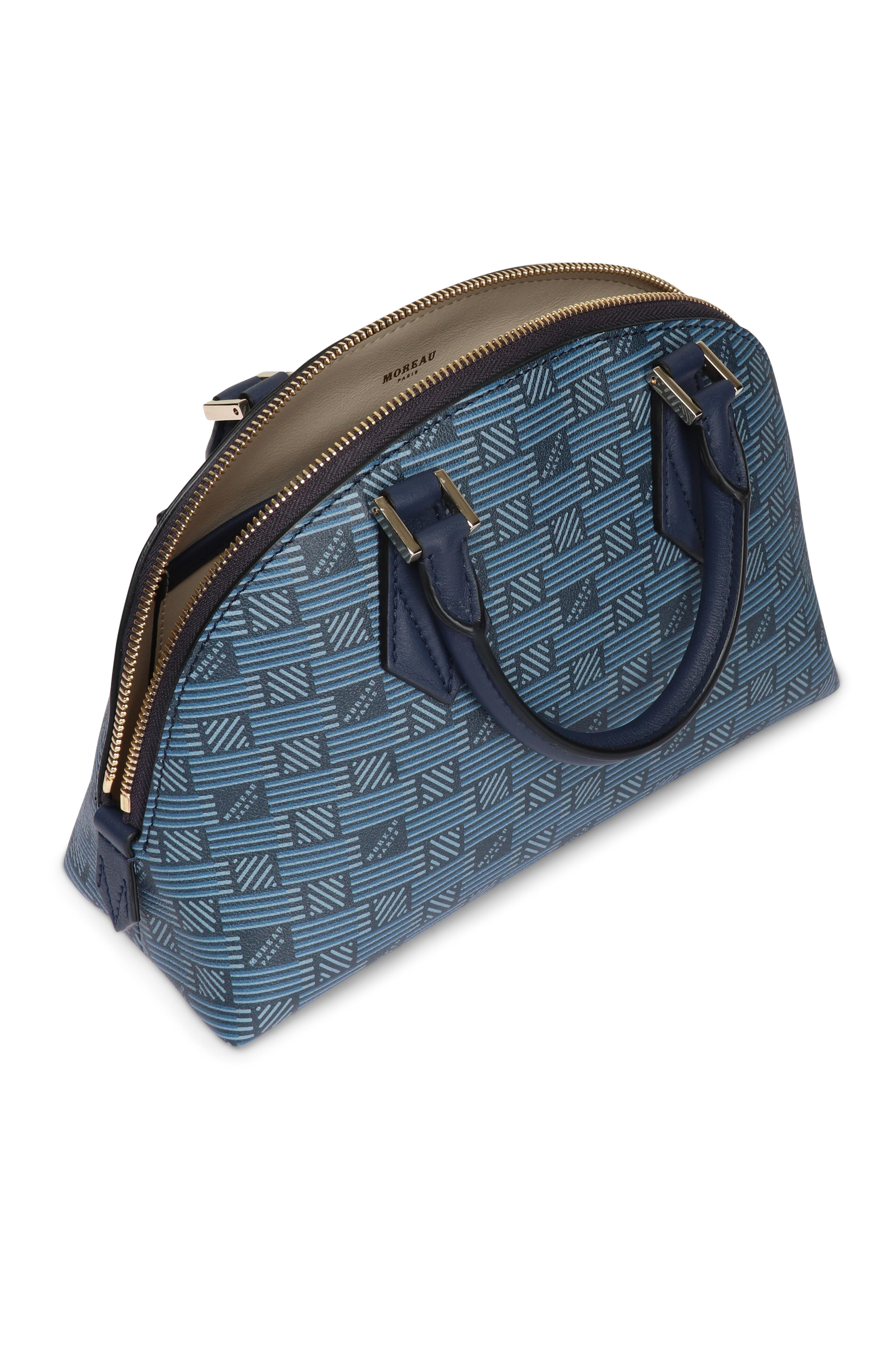 Ecocalf leather outer, handles, and trim. Zip closure. Dual top handles. Adjustable and detachable leather shoulder strap. Leather trim. Gold-tone hardware. Interior slip pocket. Champagne canvas lining. Made in France. 10.6” x 7” x 4”.