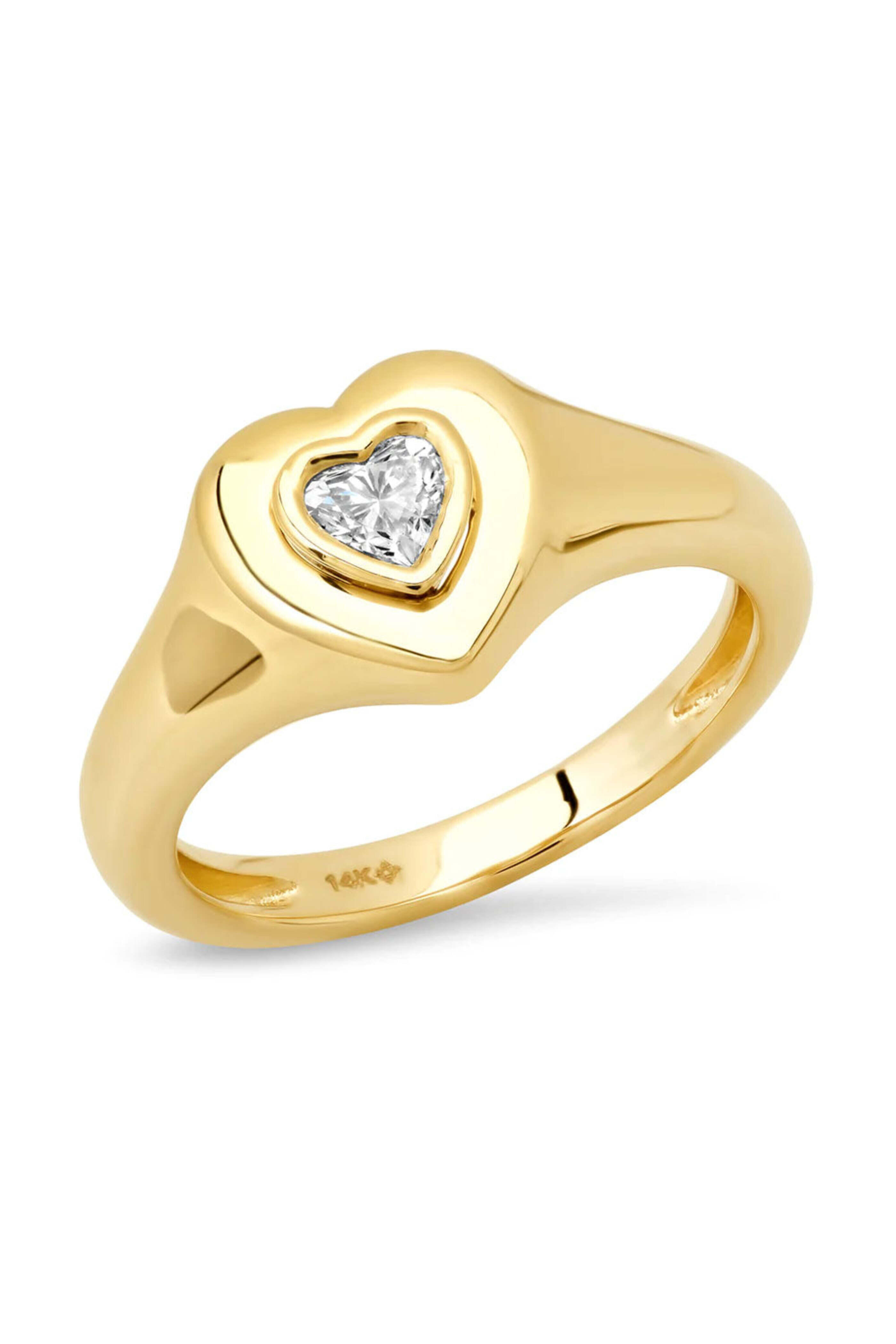 Samira 13 Diamond Heart Signet Ring. 14k yellow gold. Diamond 0.15 total carat weight. Diamond heart. Signet style. Ring size 3.5.