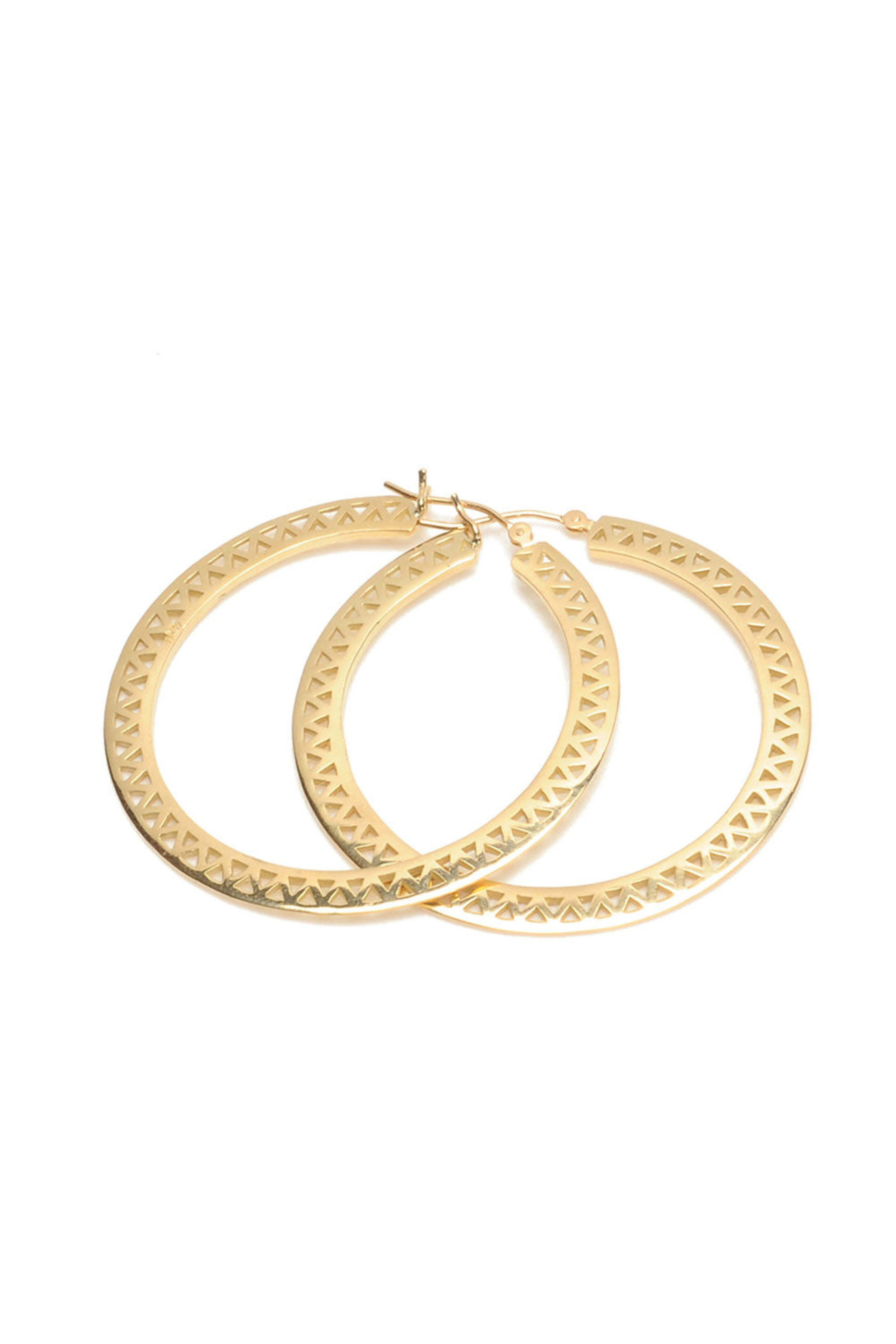 Ray Griffiths Medium Crownwork Hoops. 18k yellow gold. Crownwork hoops. Knife edge. Lightweight. 1.75. Wire back latch clasp.