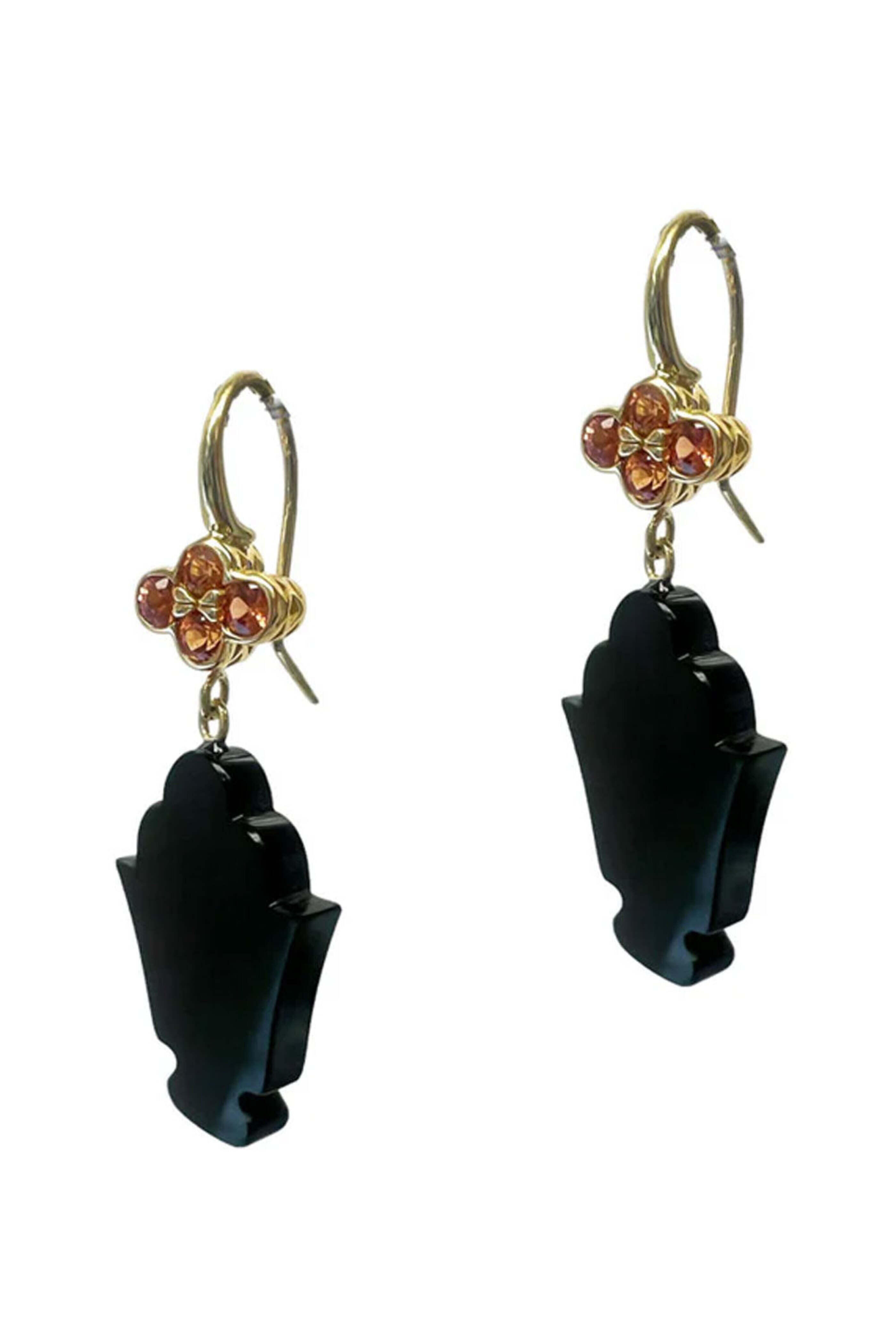 - Ray Griffiths Orange Sapphire and Black Onyx Carved Urn Earrings