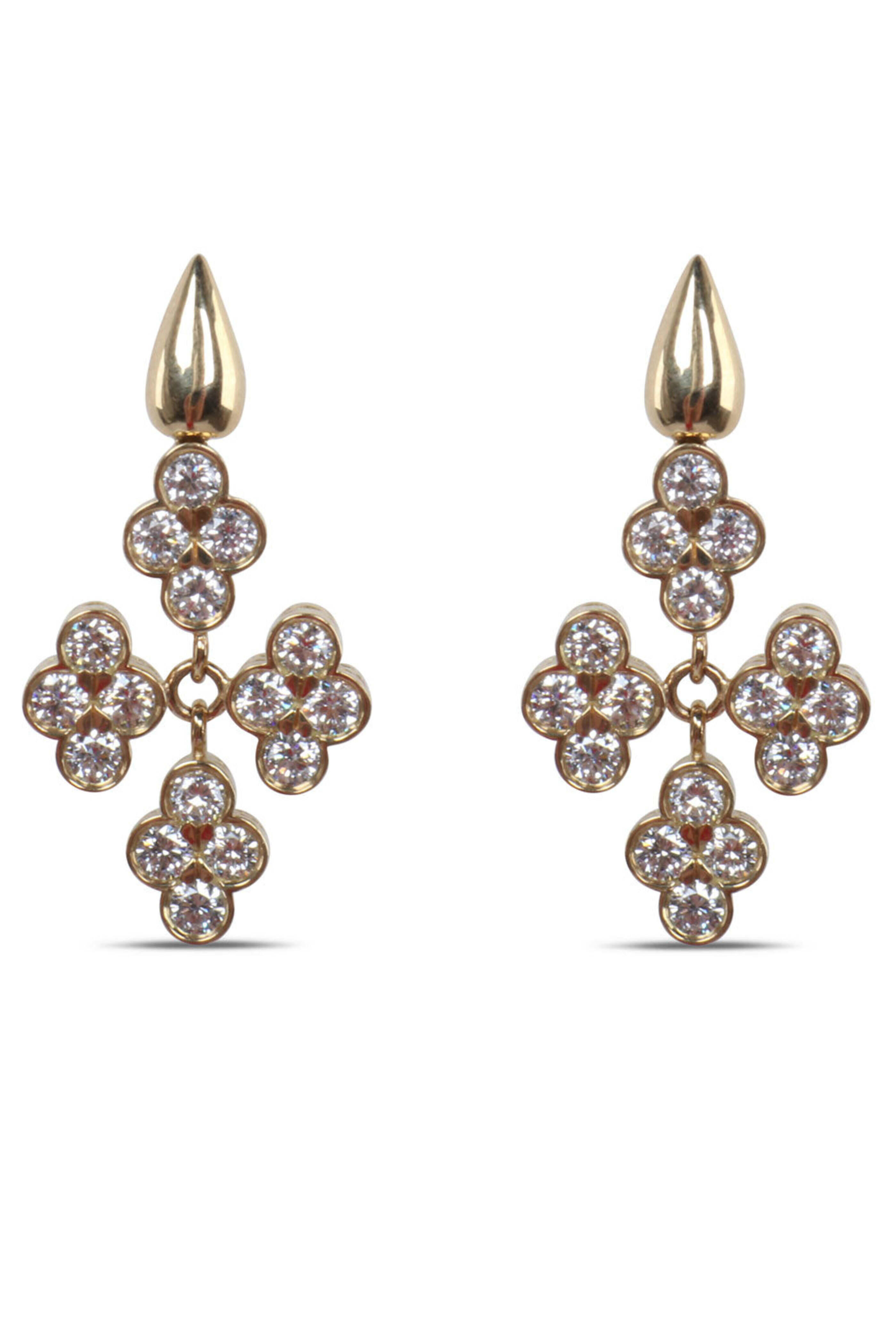Ray Griffiths Diamond Clover Earrings. 18k gold. Diamond 2.61 total carat weight. Clover design. Drop style. Push back post.