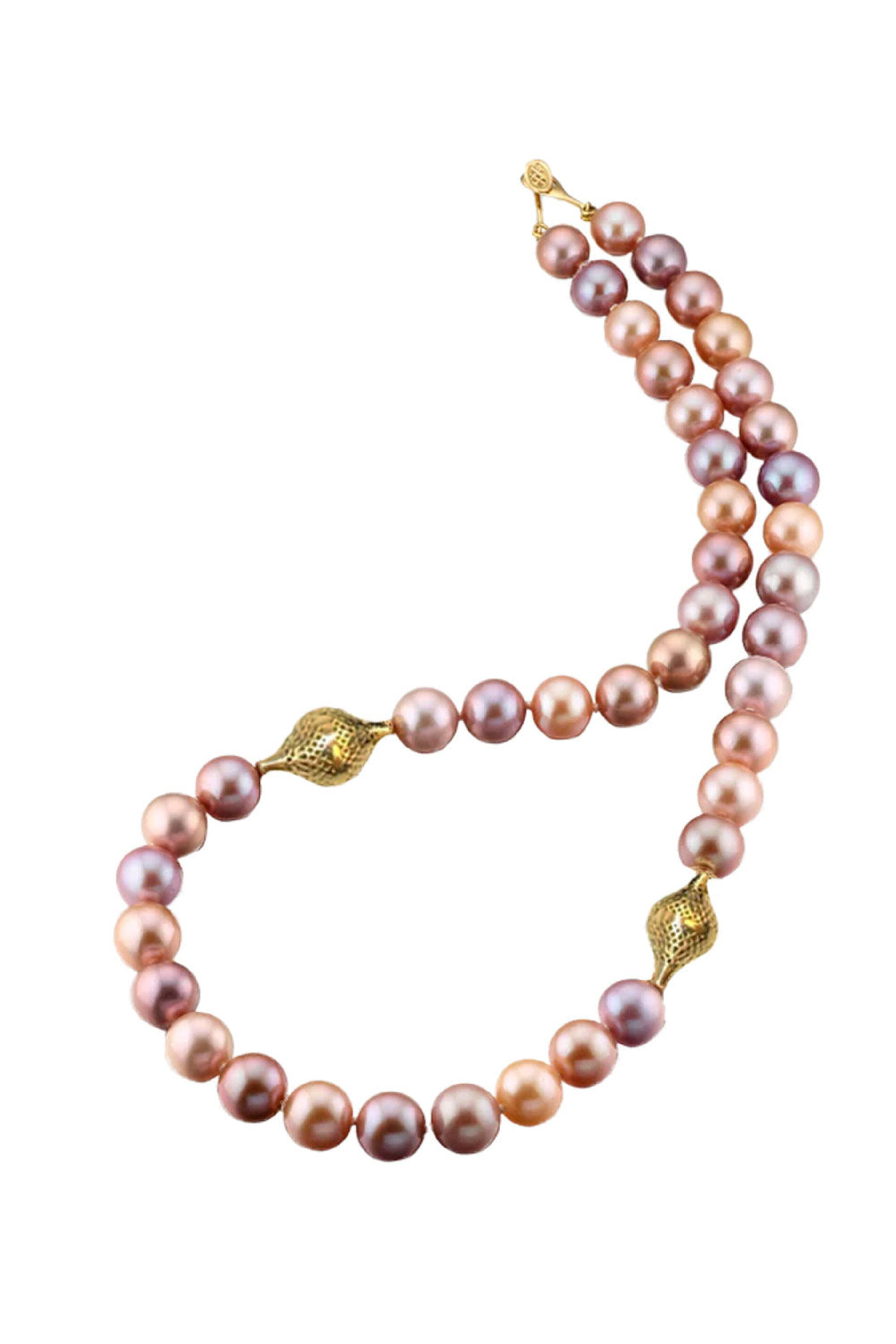 Ray Griffiths Multicolor Freshwater Pearl Necklace. 18k gold. Multicolor freshwater pearl. Two gold crownwork beads. Beaded. 20 L. Toggle clasps.