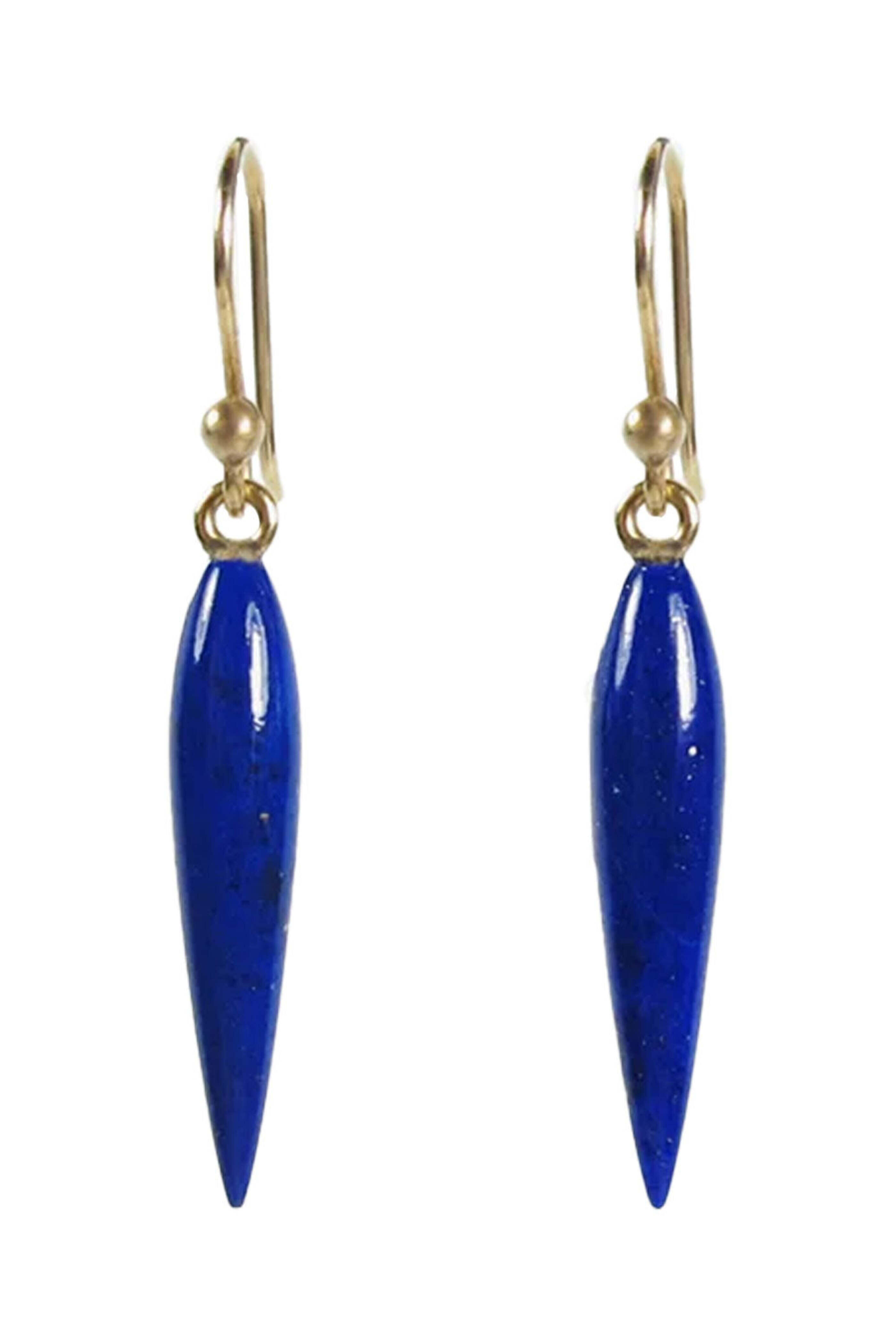 Ted Muehling Blue Lapis Rice Earrings. 14k yellow gold. Lapis lazuli. Rice design. 2.75 L. Wire back.