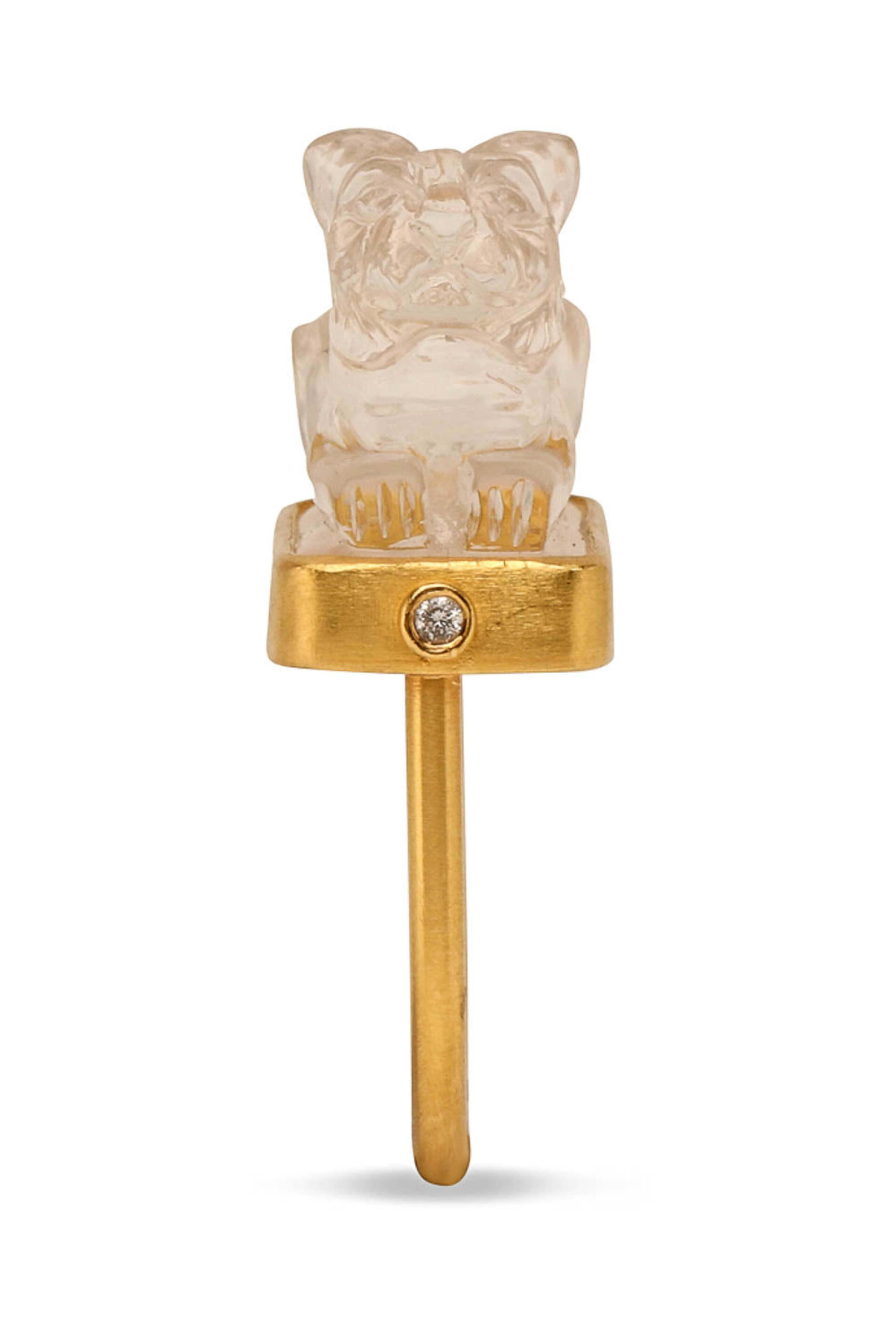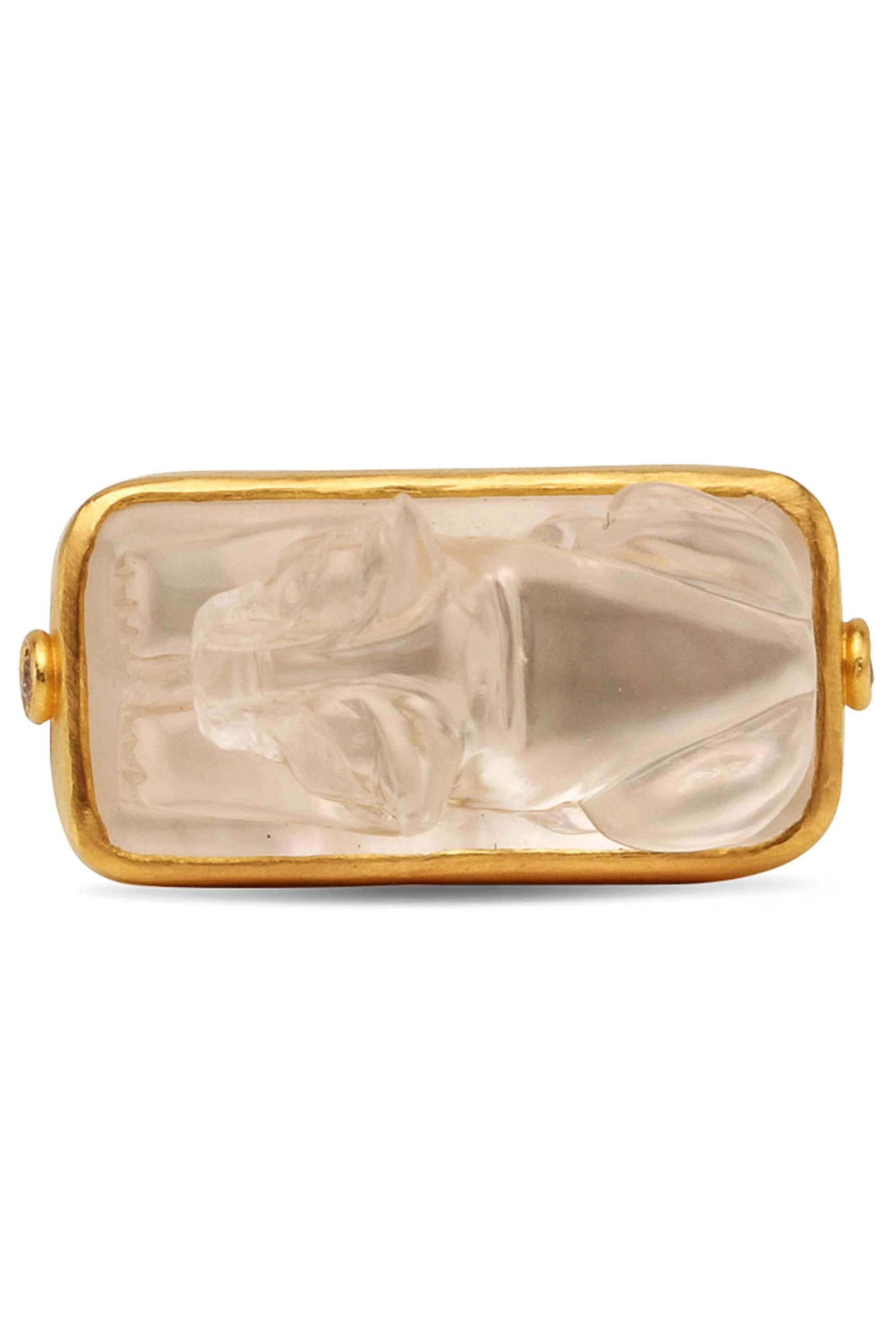 Loren Nicole Carved Crystal Lion Amulet Ring. 22k Yellow Gold. Crystal. Diamond accent stones. Carved lion design. Designed and hand-crafted in Hermosa Beach, CA. To inquire about available sizes, please call (855) 479-9539.