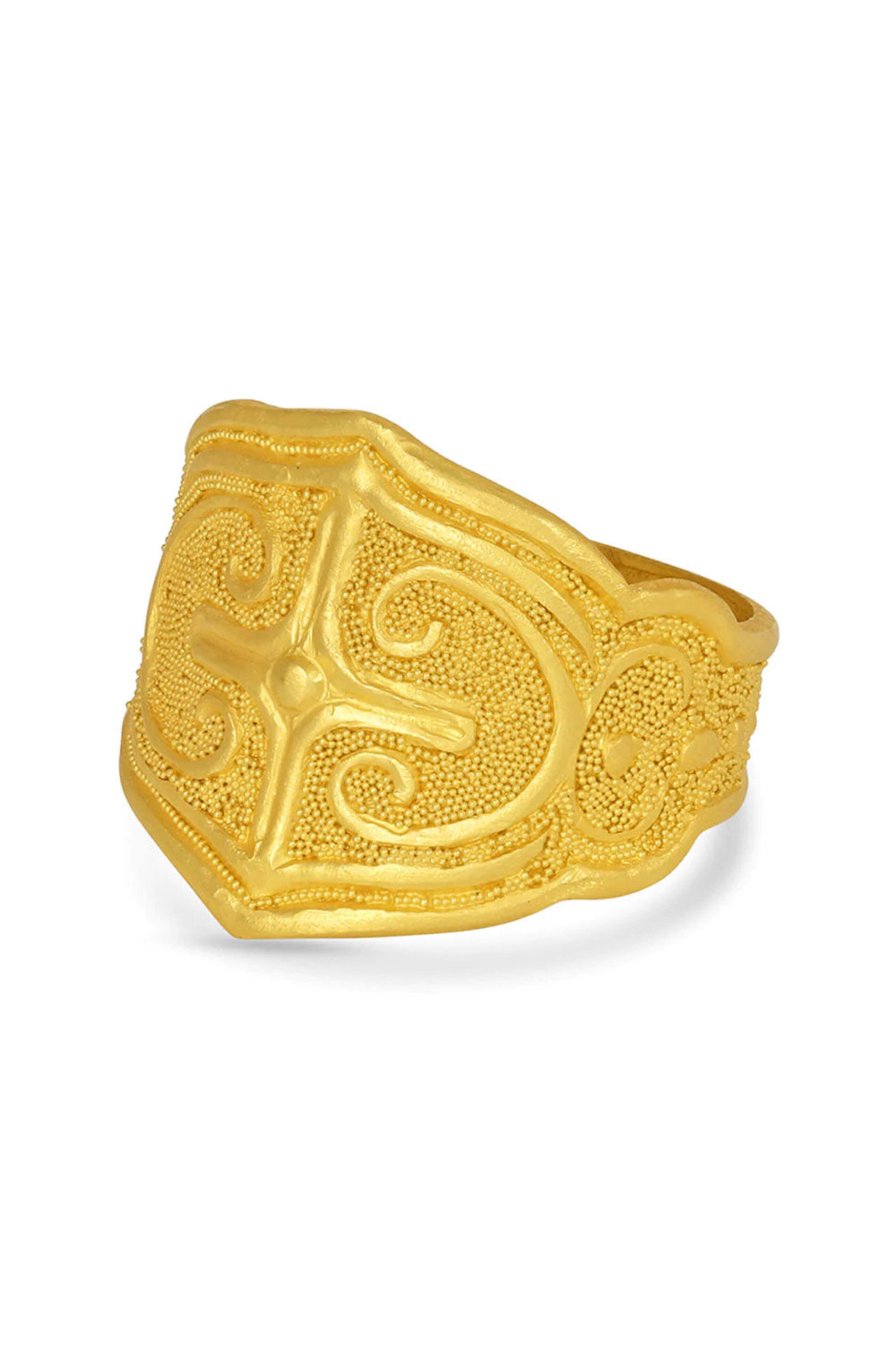 Loren Nicole One of a Kind Viking Buckle Ring. 22k yellow gold. Viking period-inspired buckle ring with chasing and repousse. Band style. One of a Kind. To inquire about available sizes, please call (855) 479-9539.