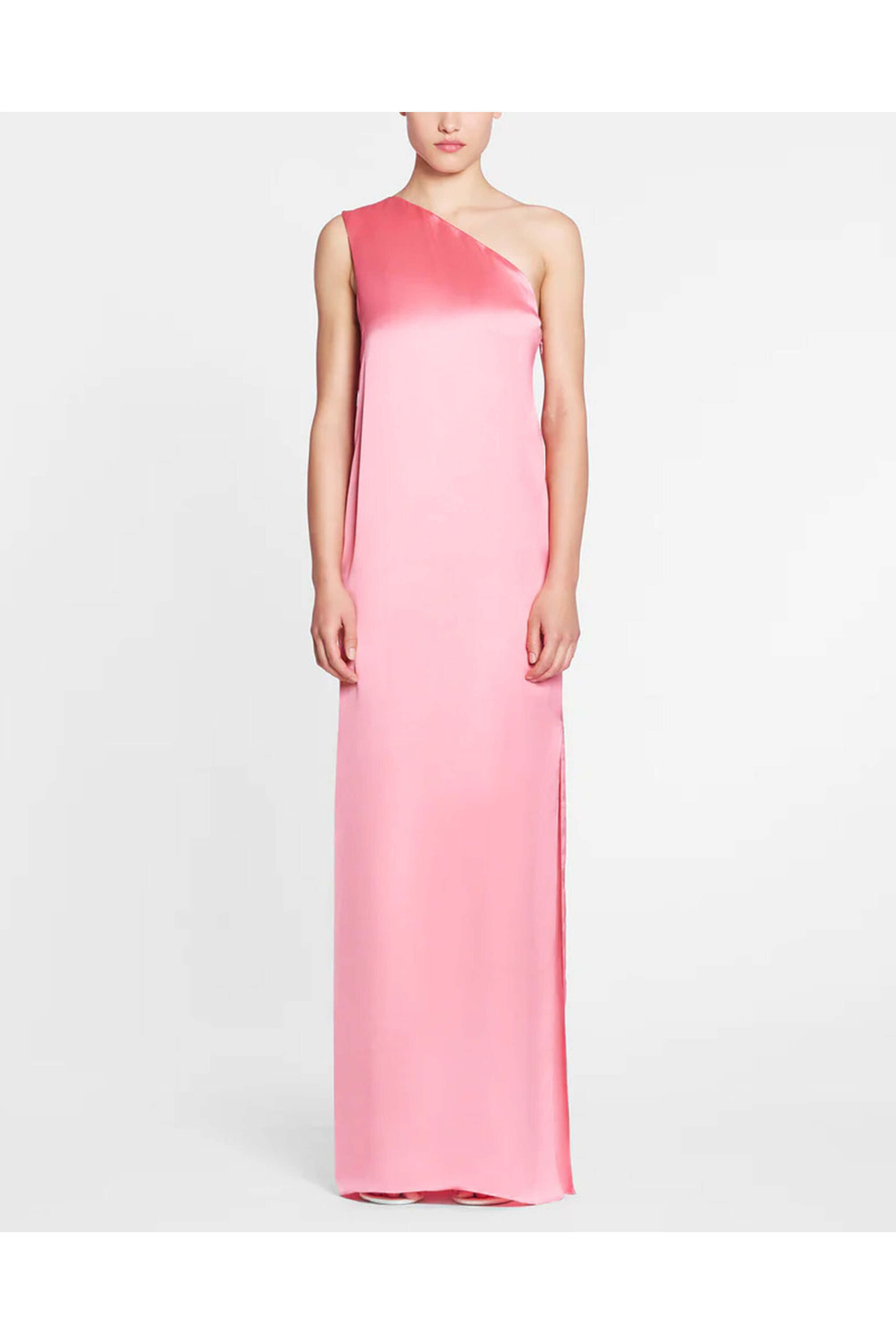 Lanvin Venus Asymmetrical Ruban Gown. Single shoulder neckline. Sleeveless. Open upper back; drape detail. Column silhouette. Relaxed fit. Side hem slit. Maxi length. Made in Italy. 100% viscose.