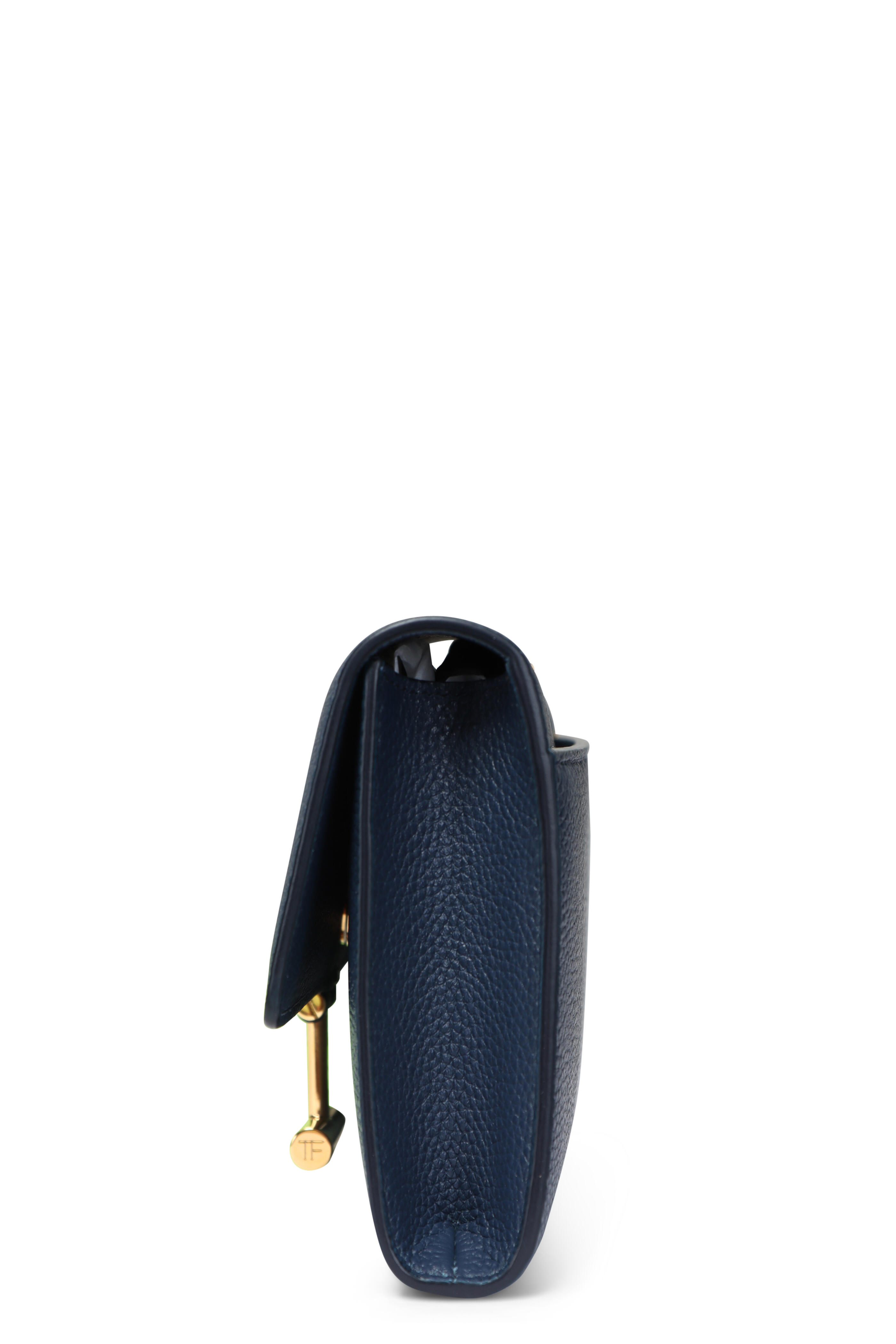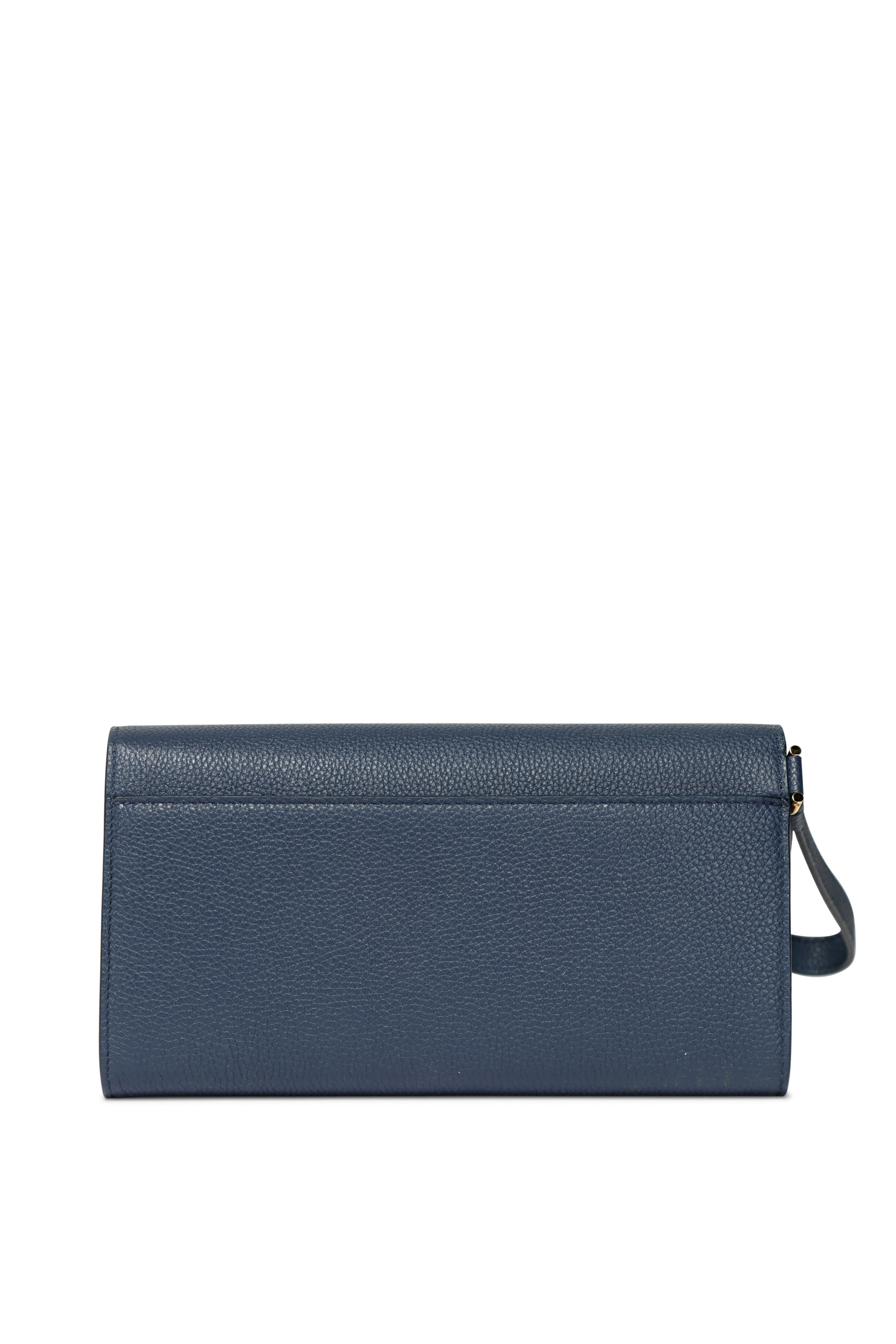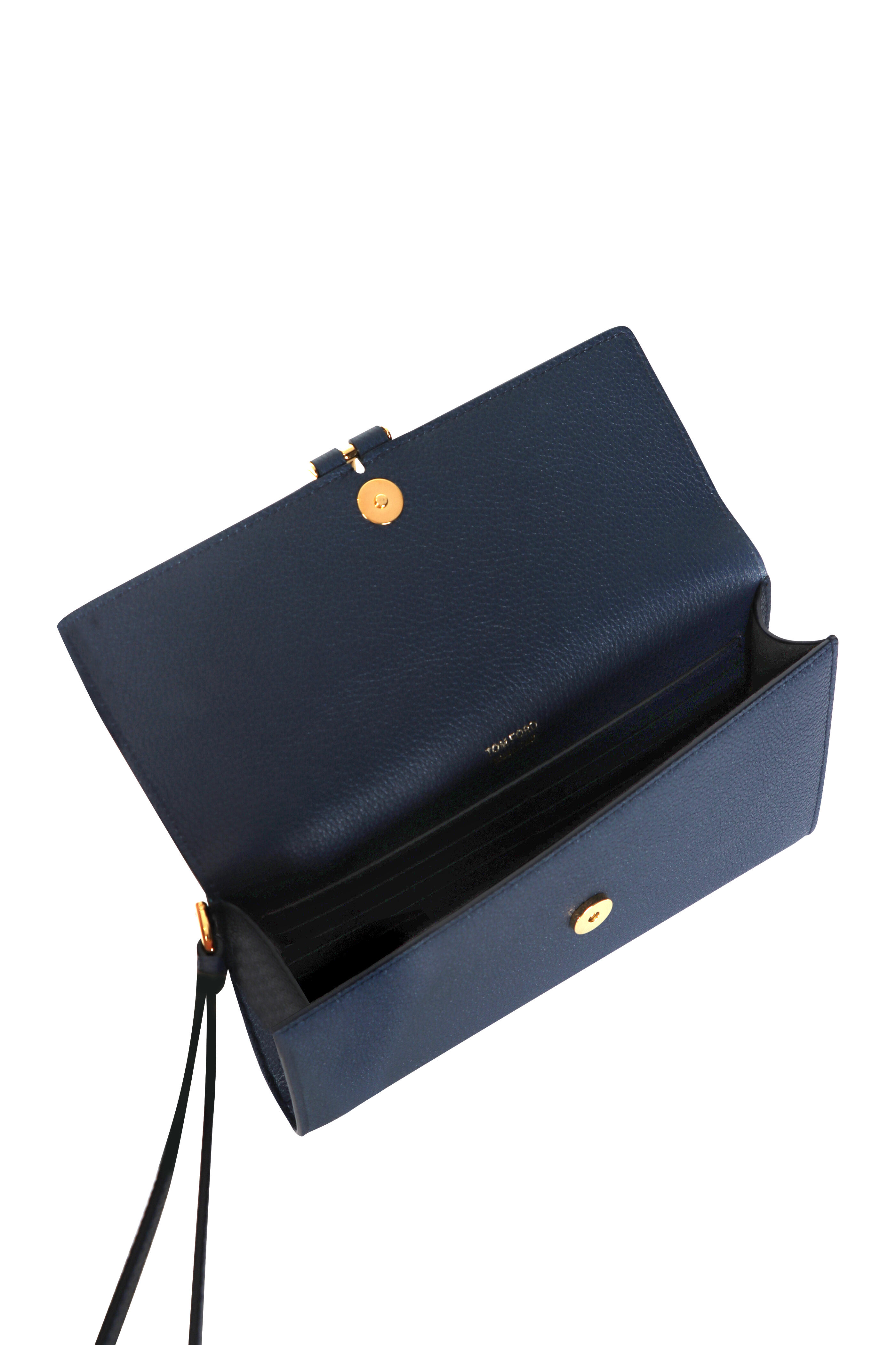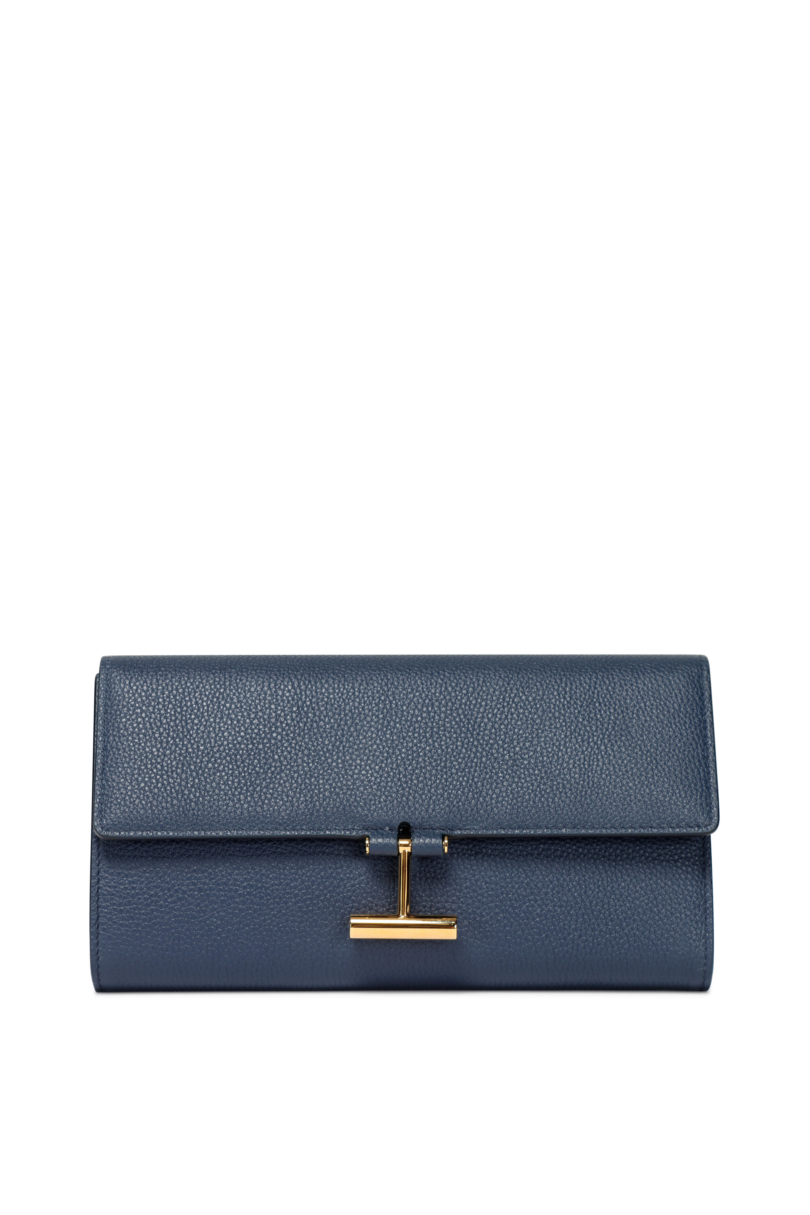 Calfskin leather outer. Fold over clasps. Center T-strap magnetic closure. Wristlet strap. Exterior slip pocket. Interior six card slots. Interior one zipper pocket. Polyurethane lining. Made in Italy. Height: 12 cm | 4.7”. Width: 22 cm | 8.7”.