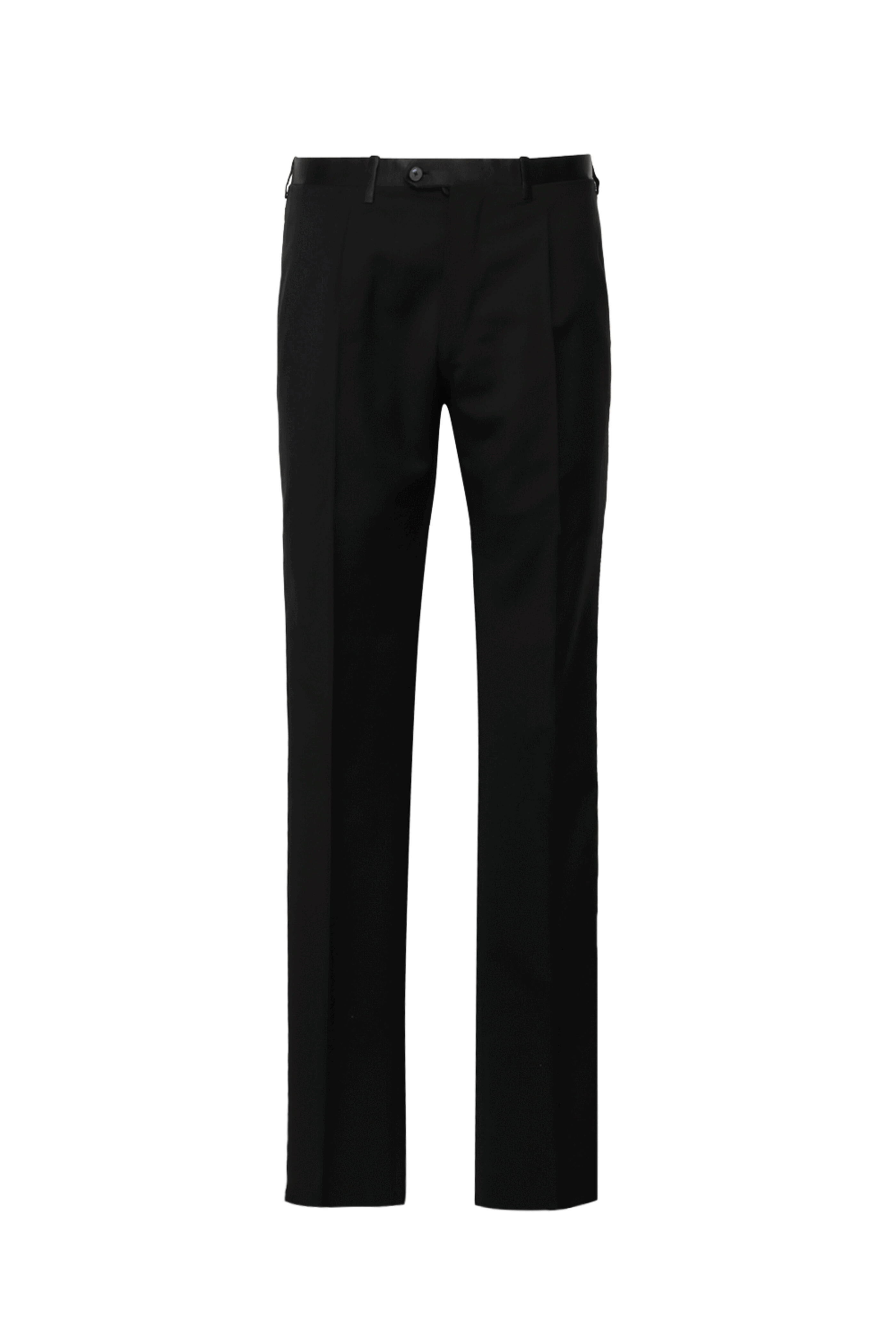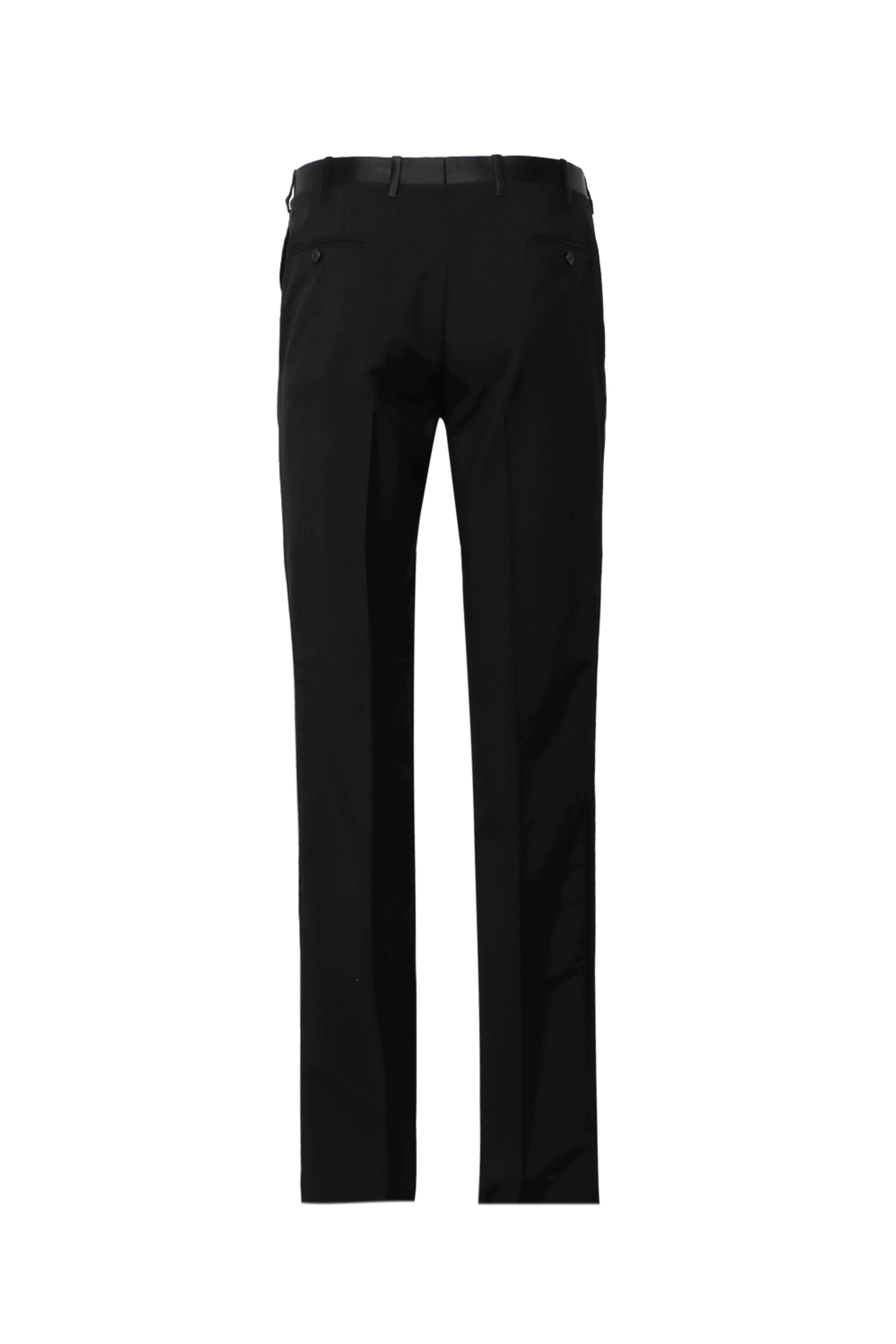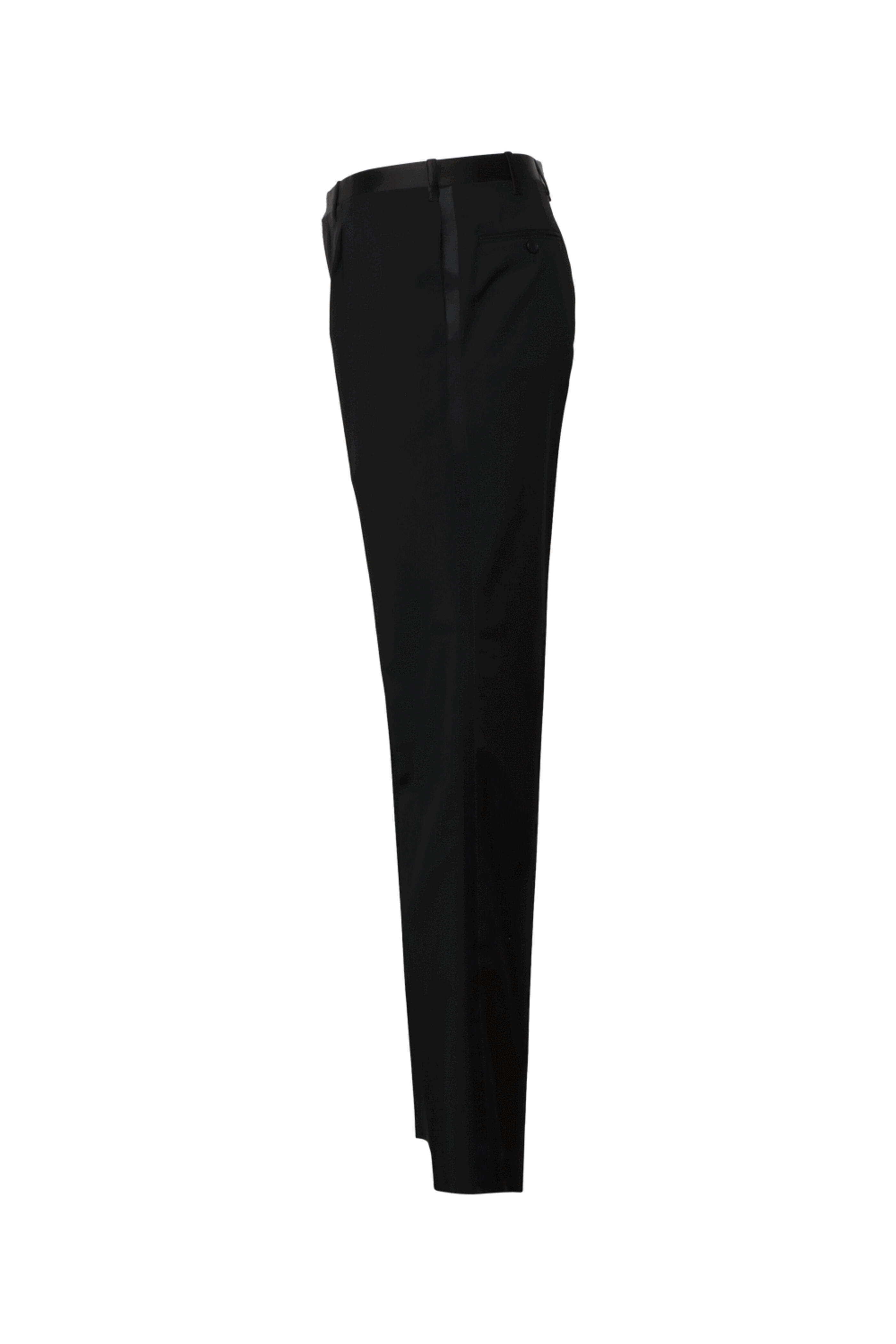 KNT Tuxedo Pant With Grosgrain Trim. Two button closure. Zip fly. Single pleat pant. Belt loops. Back welt pockets with button. Silk lining on side. Made in Italy. 84% virgin wool, 16% mohair.