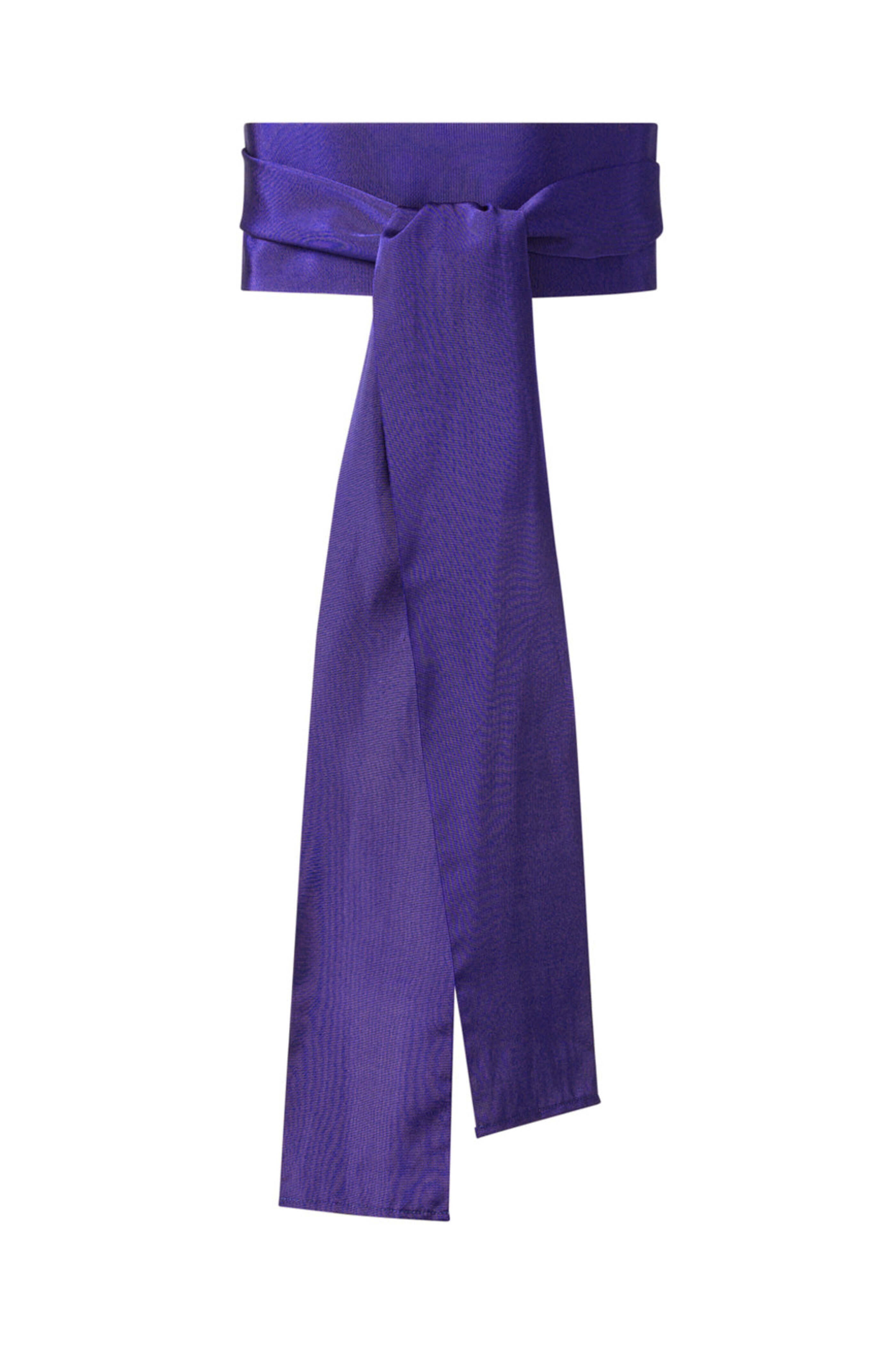Sara Roka Purple Grosgrain Belt. Wide ribbed belt. Grosgrain fabrication. Self-tie. Made in Italy. 60% viscose, 40% cotton.