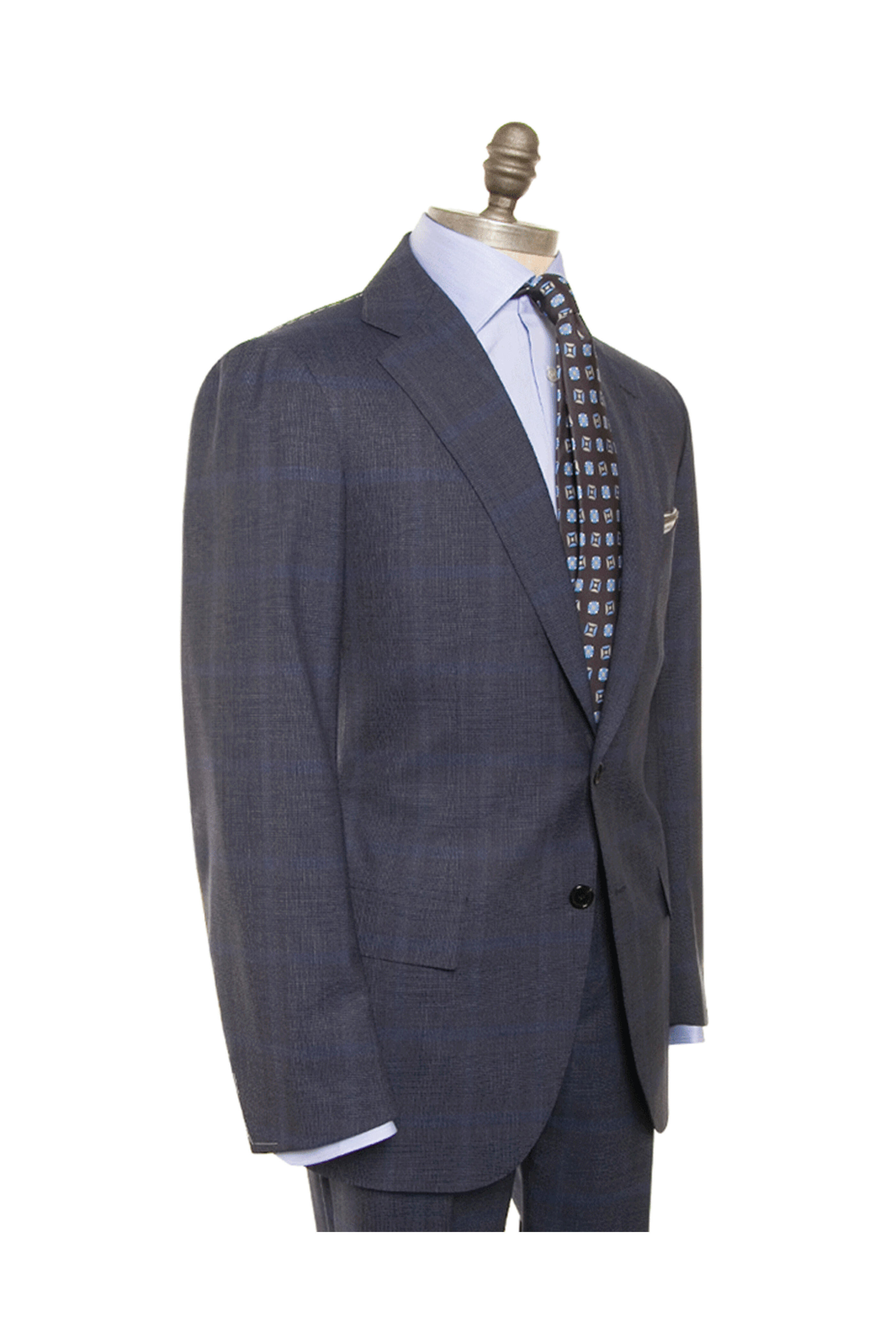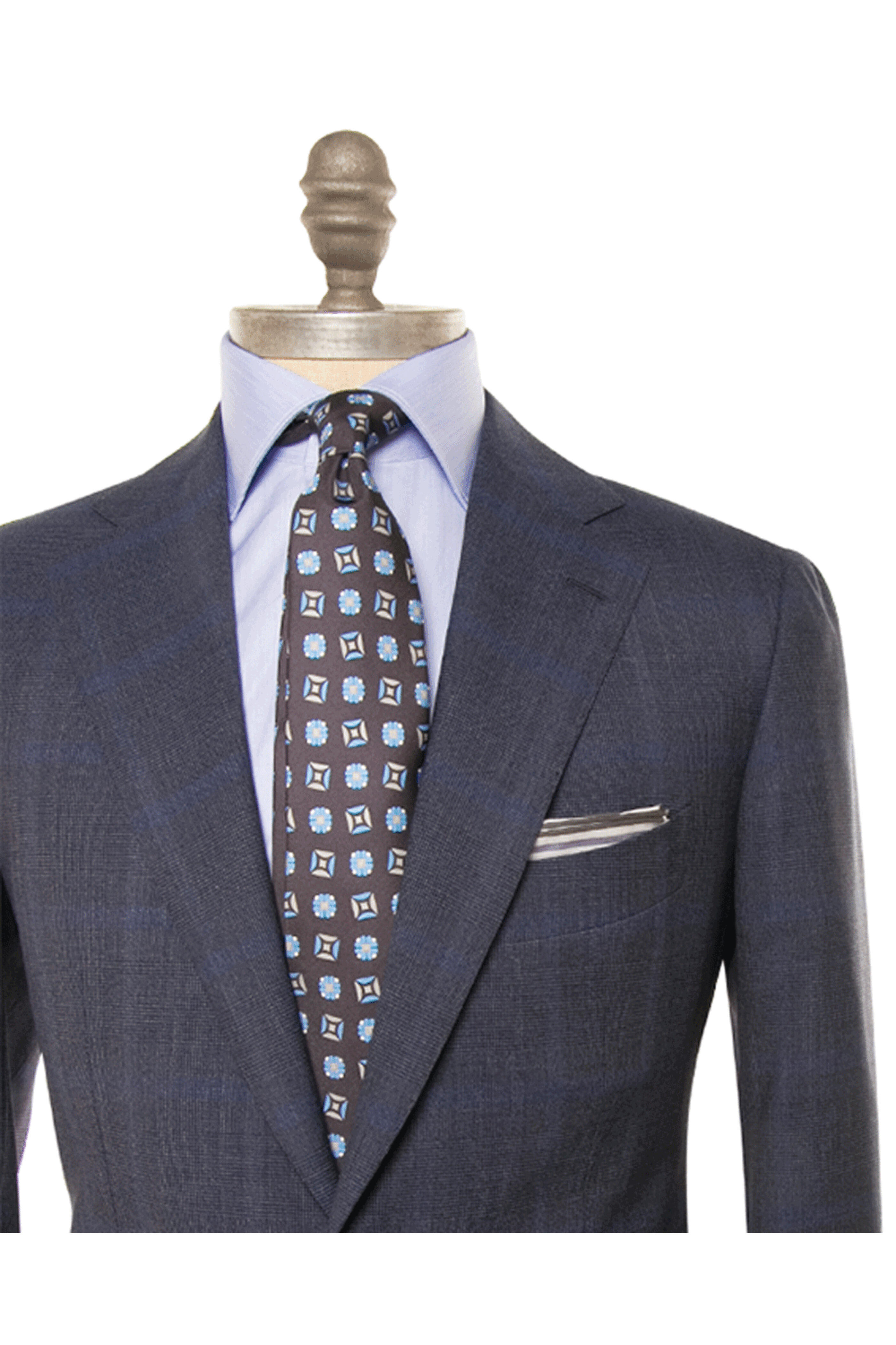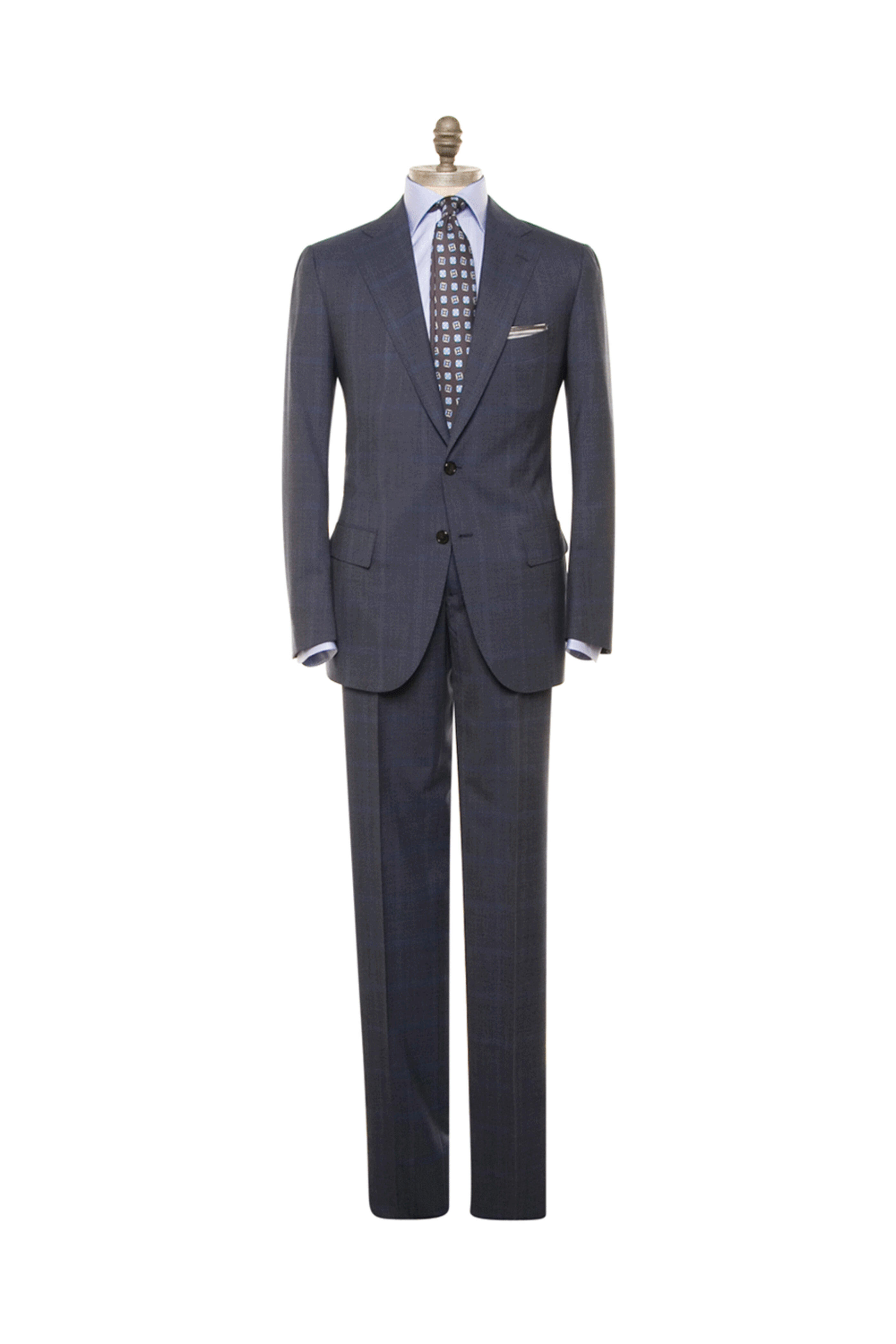 - Cesare Attolini Blue Charcoal Glen Plaid Suit
