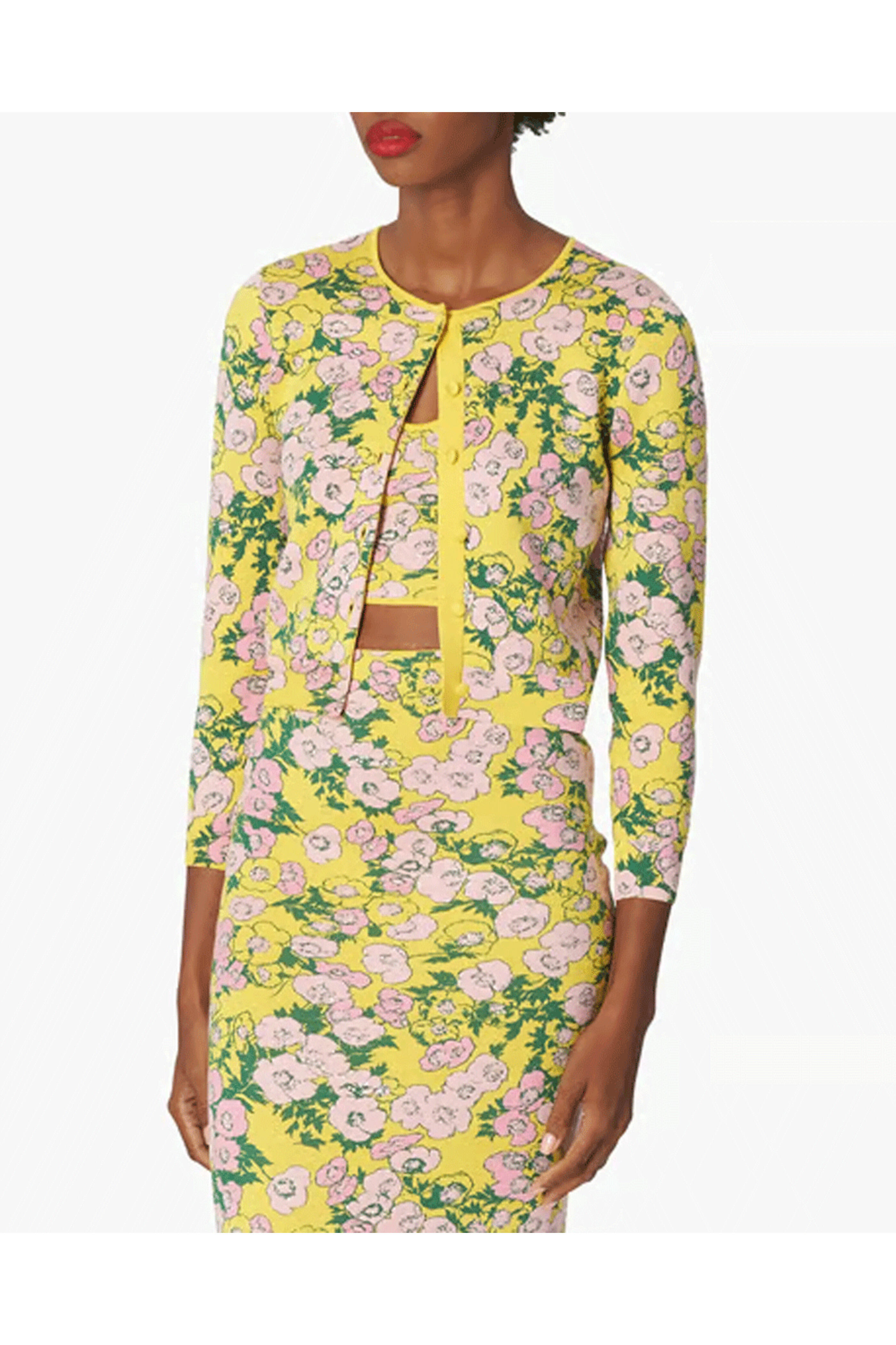 - Carolina Herrera Taxi Cab Floral Jacquard Cropped Cardigan