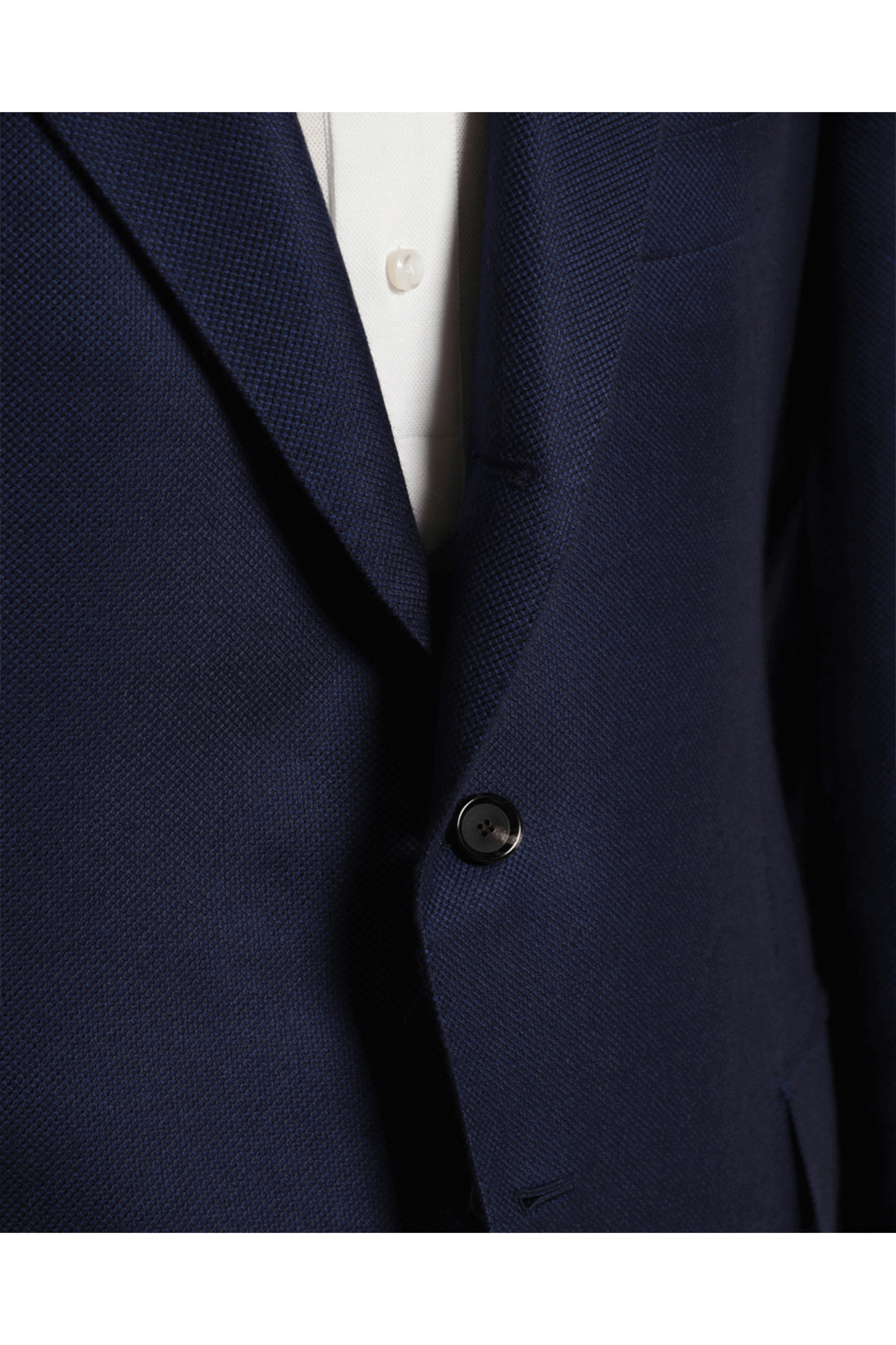 Notch lapels. Three button jacket. Front left chest welt pocket. Waist flap pockets. Double back vents. Unfinished buttonholes. Pick stitch detailing. Drop: 7. Made in Italy. 93% cashmere 7% silk; partially lined.