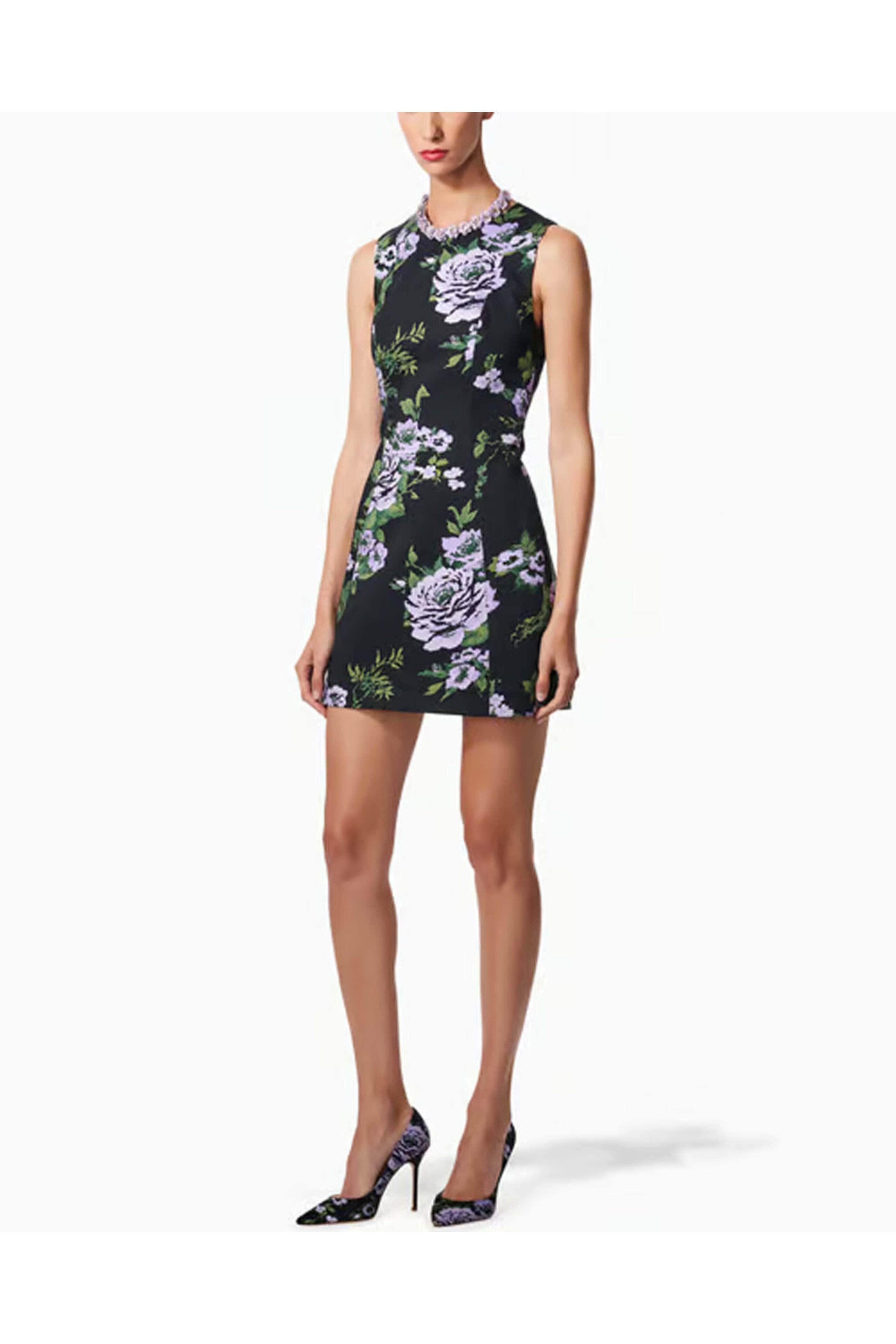 - Carolina Herrera Black Floral Print Sleeveless Mini Dress