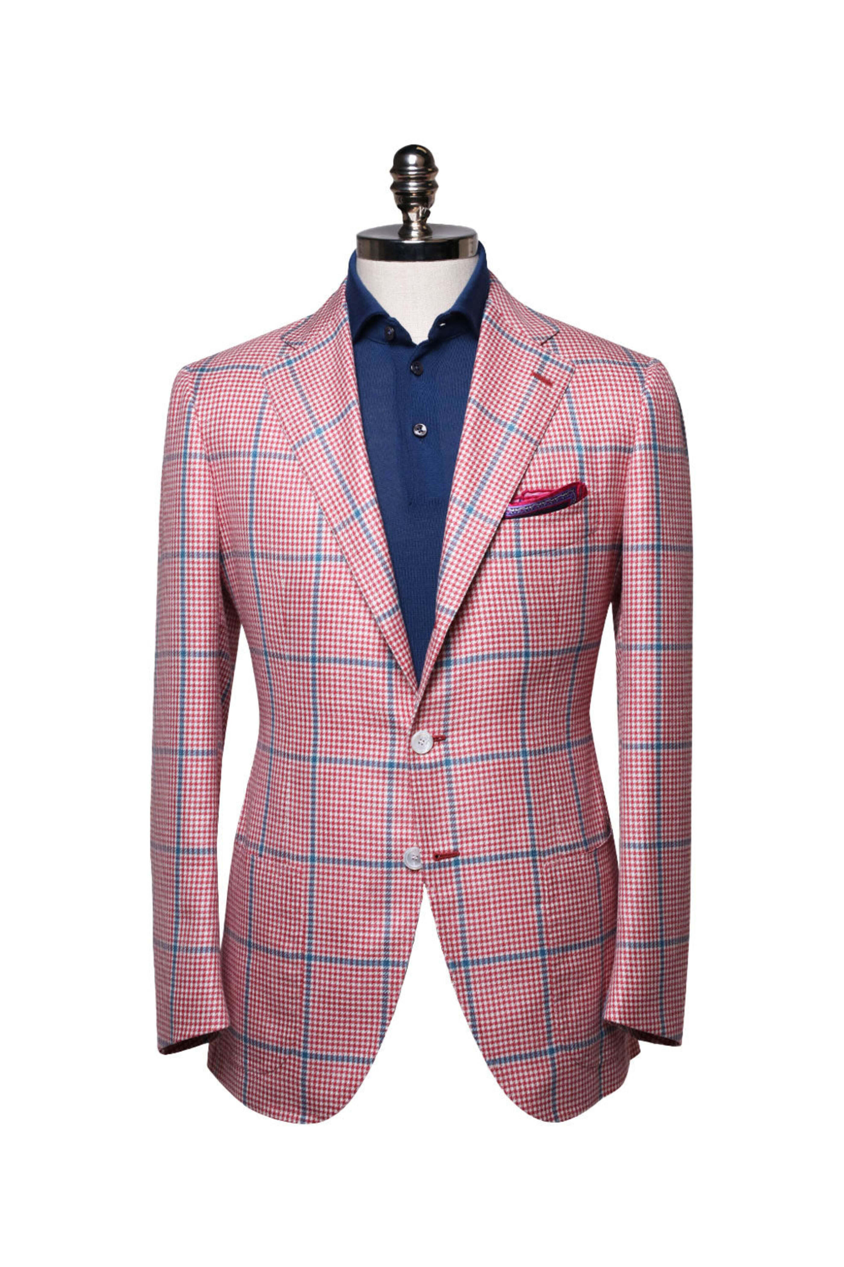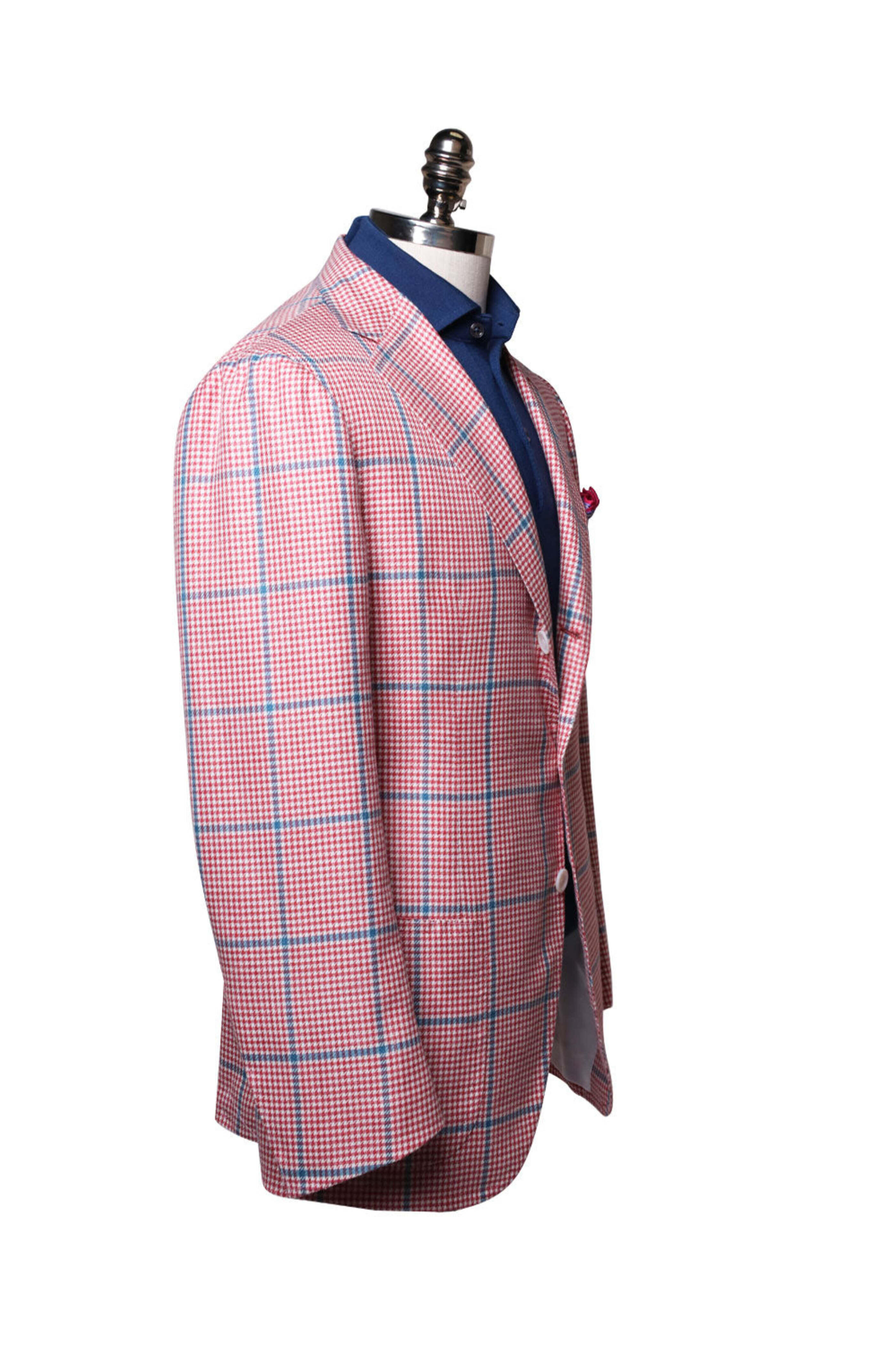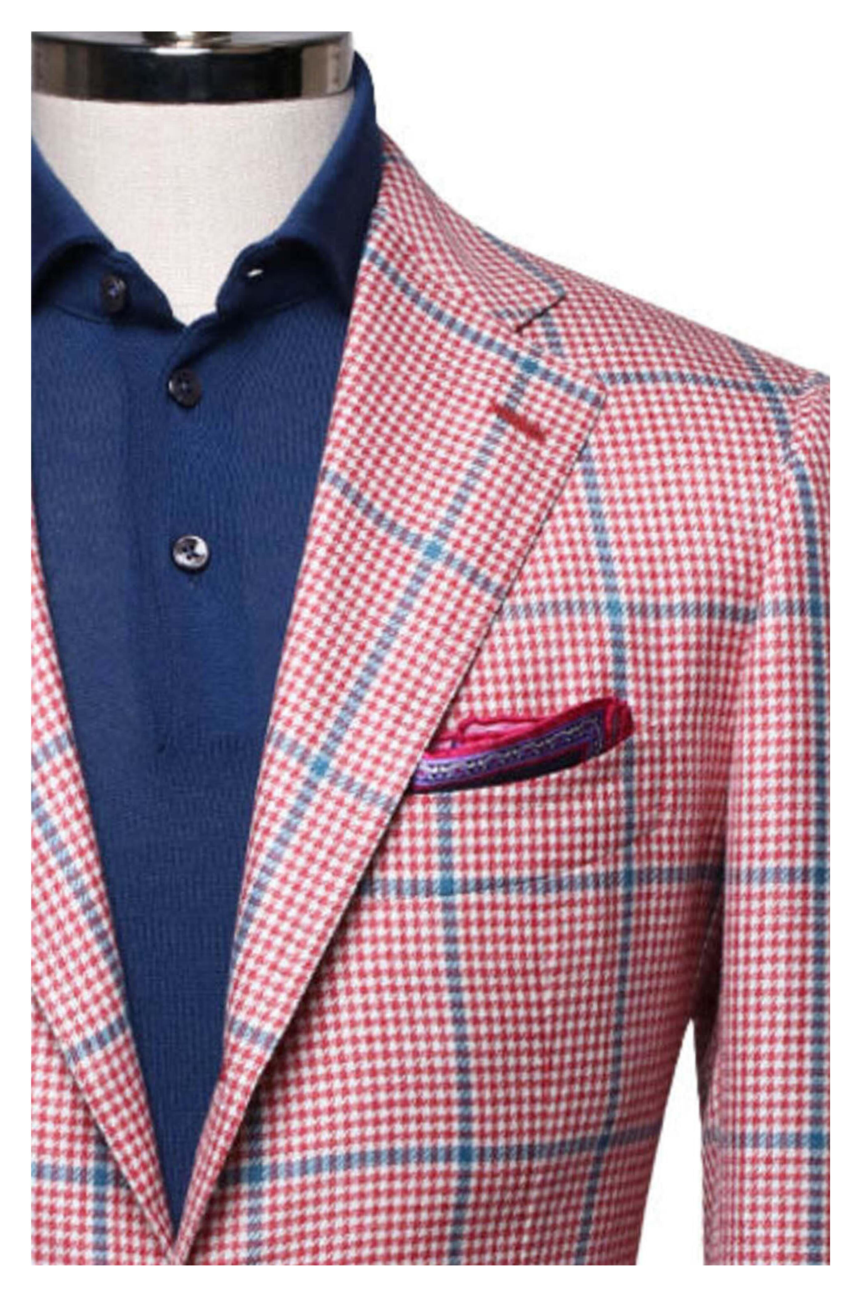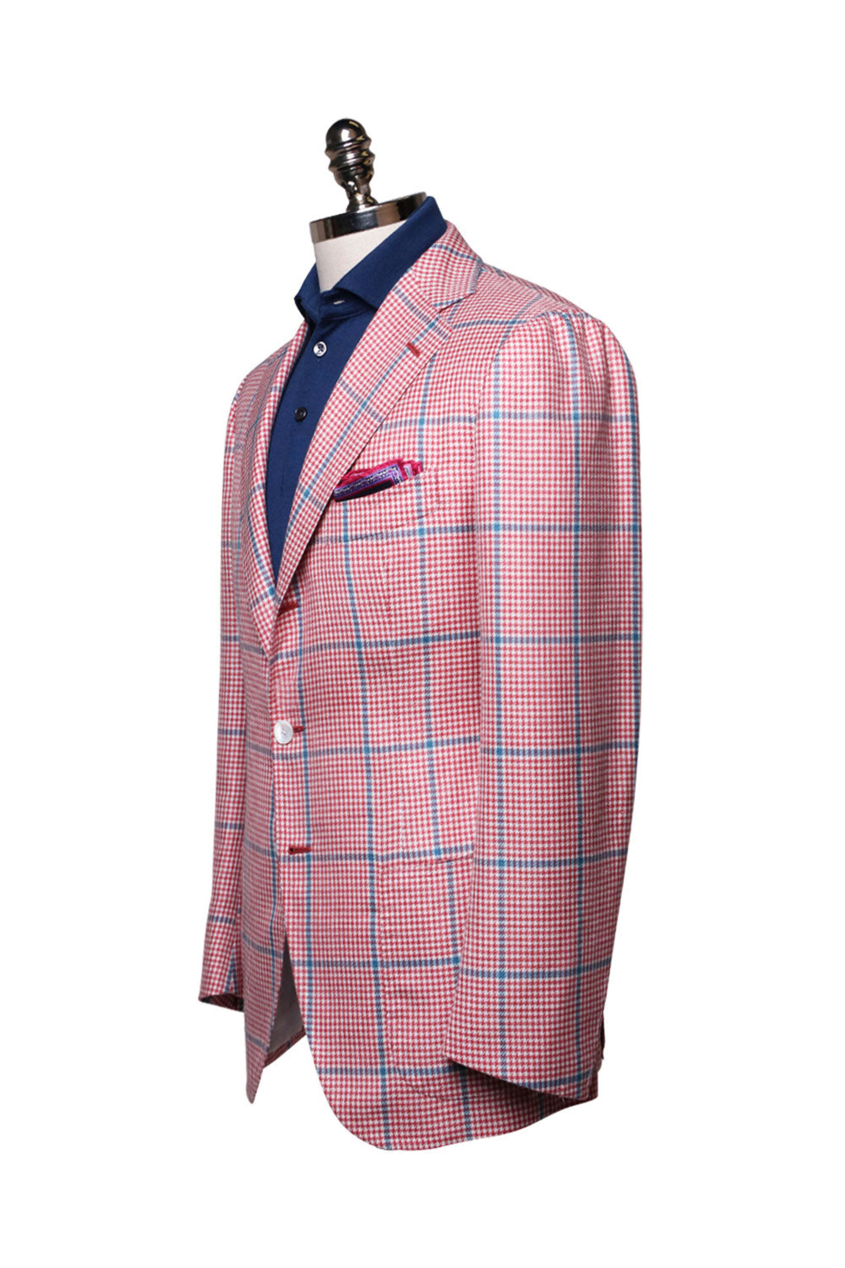 - Cesare Attolini White and Red Windowpane Houndstooth Sportcoat