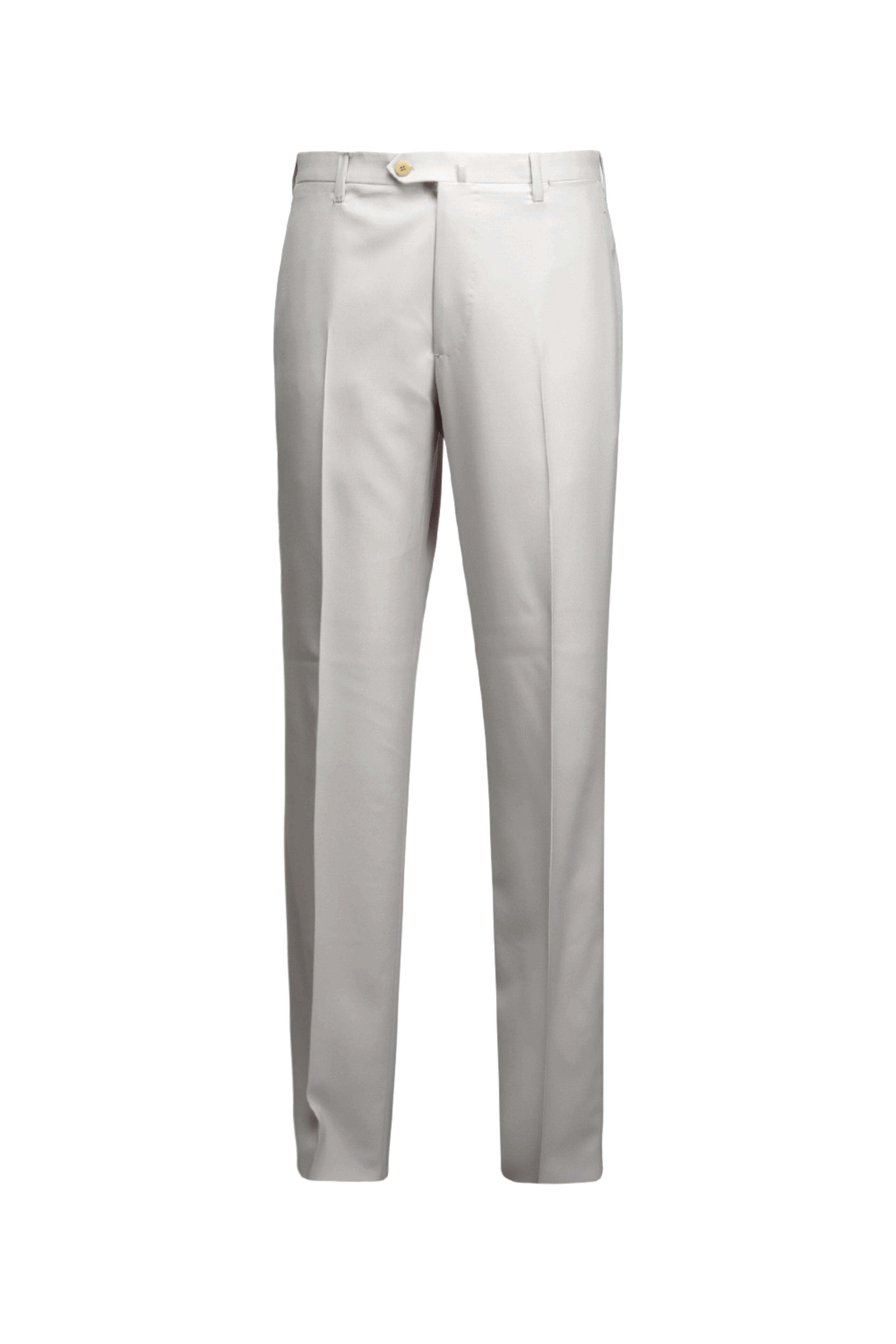 Cesare Attolini Stone Beige Dress Trouser. Flat front. Zip fly with extended button closure. Side slip pockets. High rise. Full length . Straight legs. Made in Italy . 100% wool.