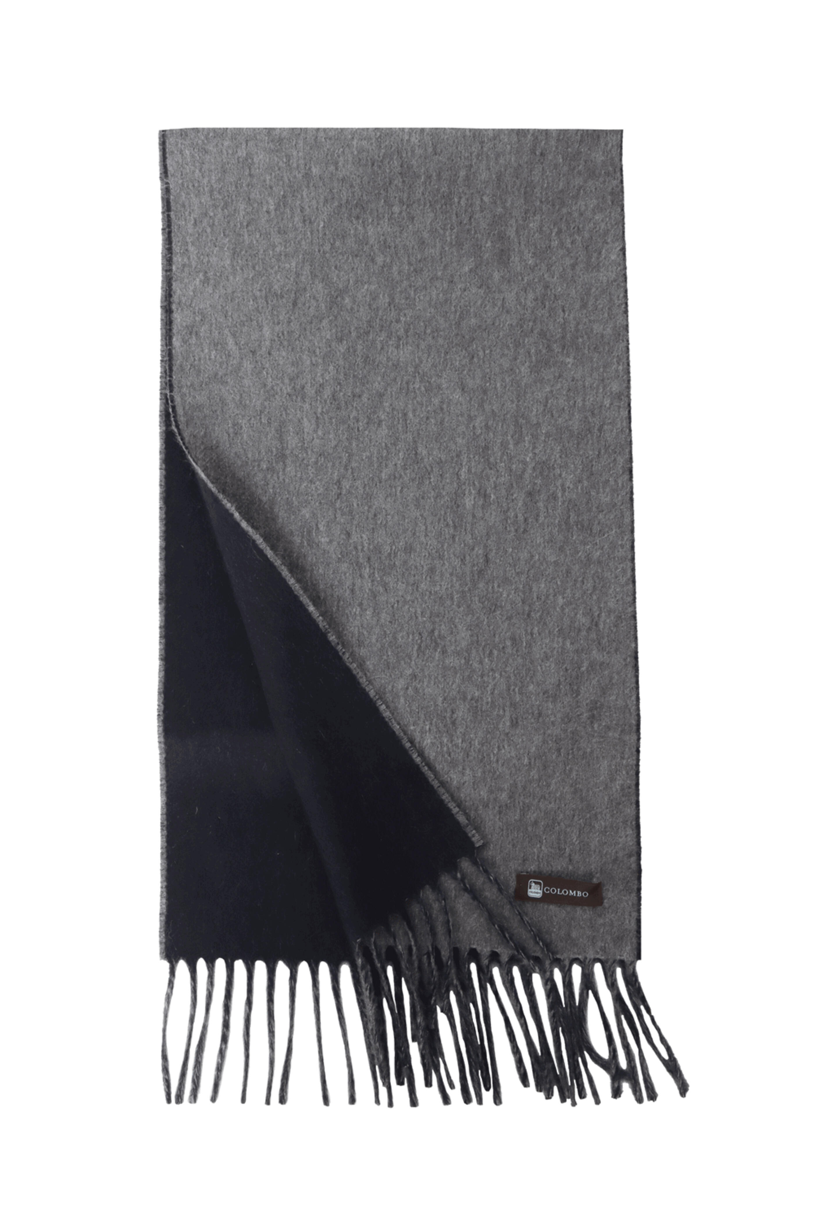 Colombo Blue and Grey Reversible Scarf. Reversible. Eyelash fringe. Made in Italy. 100% cashmere.