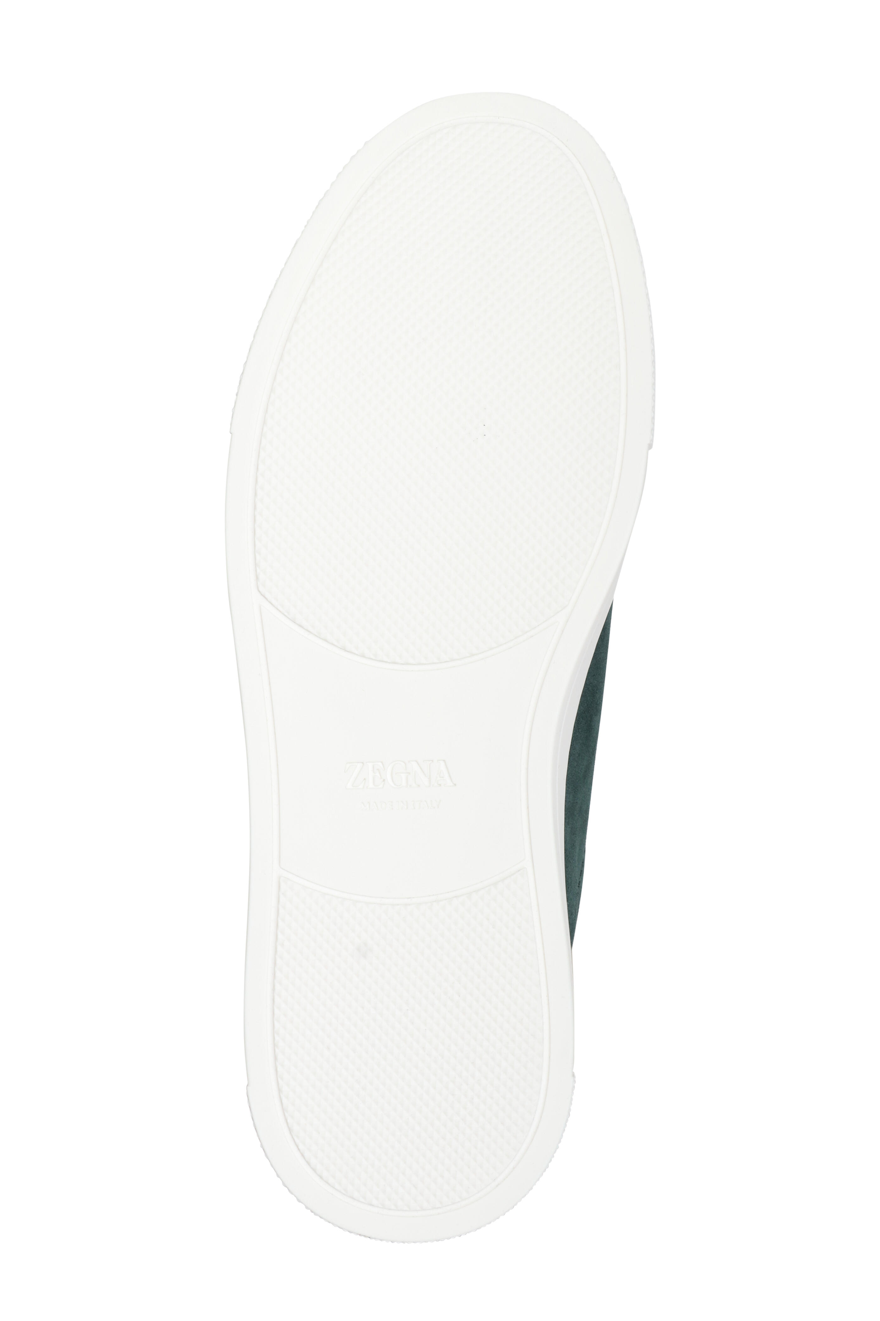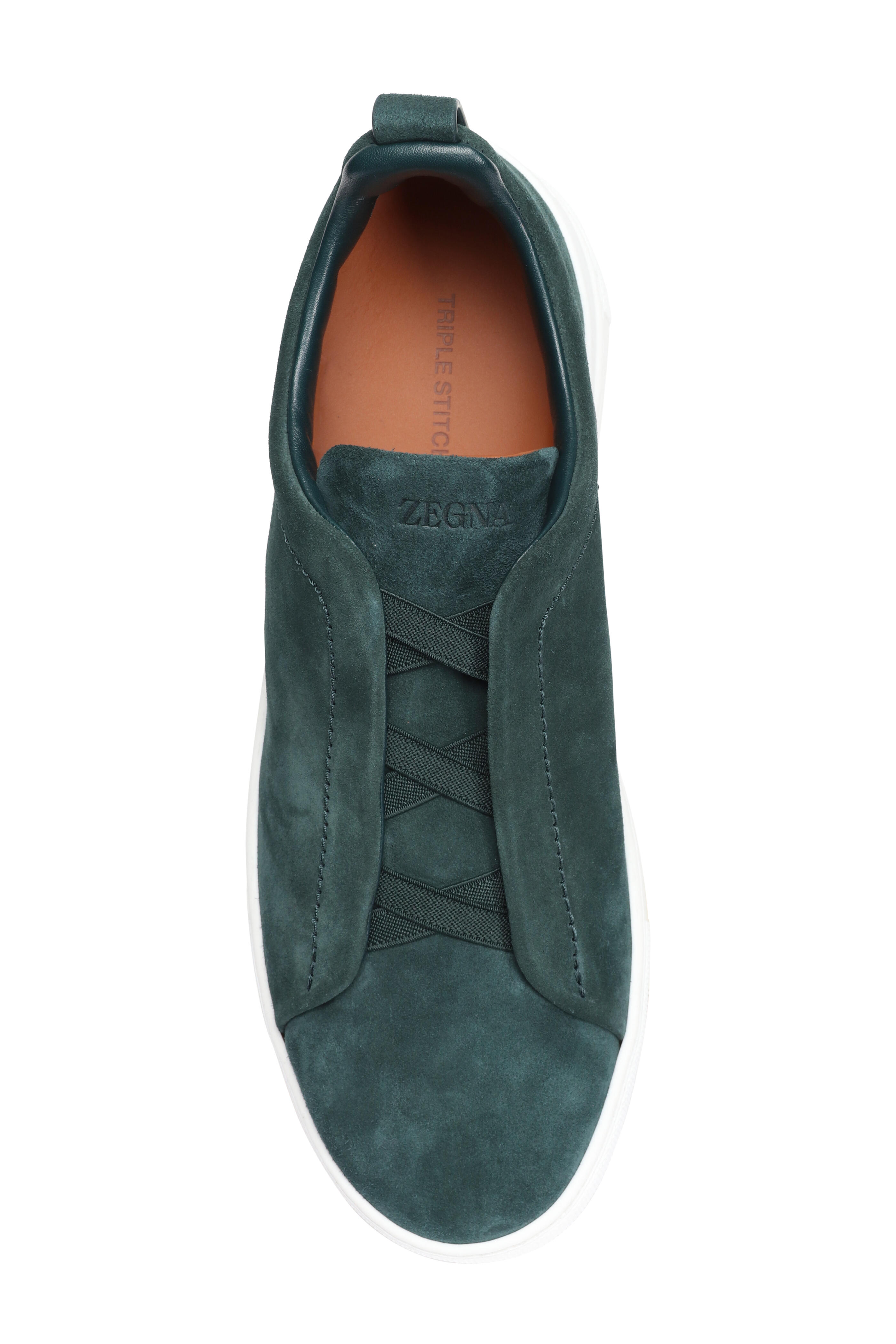 Suede upper. Leather lining. Rubber sole. Round toe. Elasticized lace-up vamp. Slip-on. Pull tab at heel. Made in Italy. All sizes listed are in US measurements.