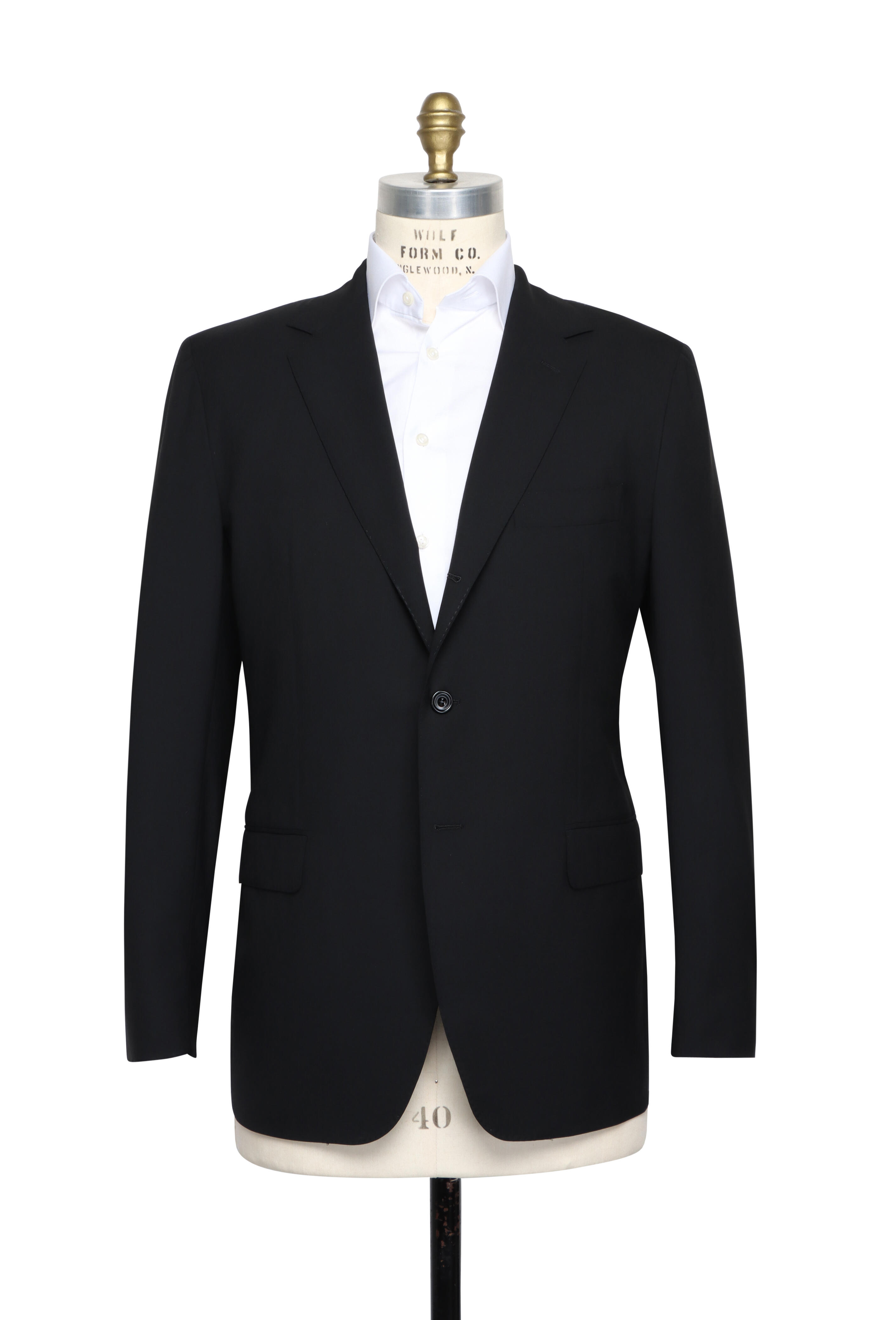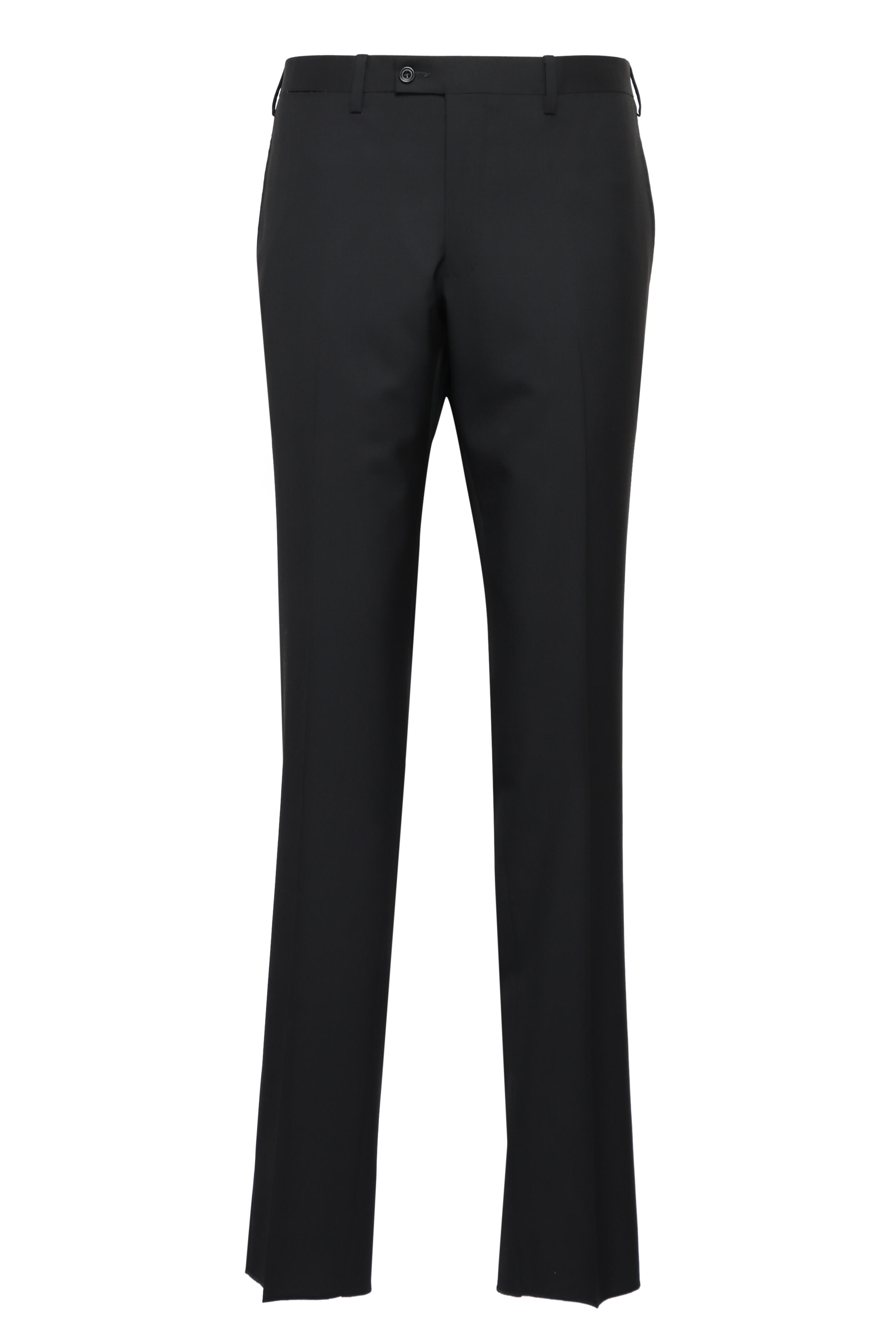 Made in Italy. Jacket: Fully lined. Notch lapels. Front two button closure. Chest welt pocket; lower flap pockets; interior slip pockets. No buttons attached. Double back vents. Pant: Banded waist; belt loops. Front slip pockets; back besom pockets. Unfinished hem. 100% Wool. Dry clean.