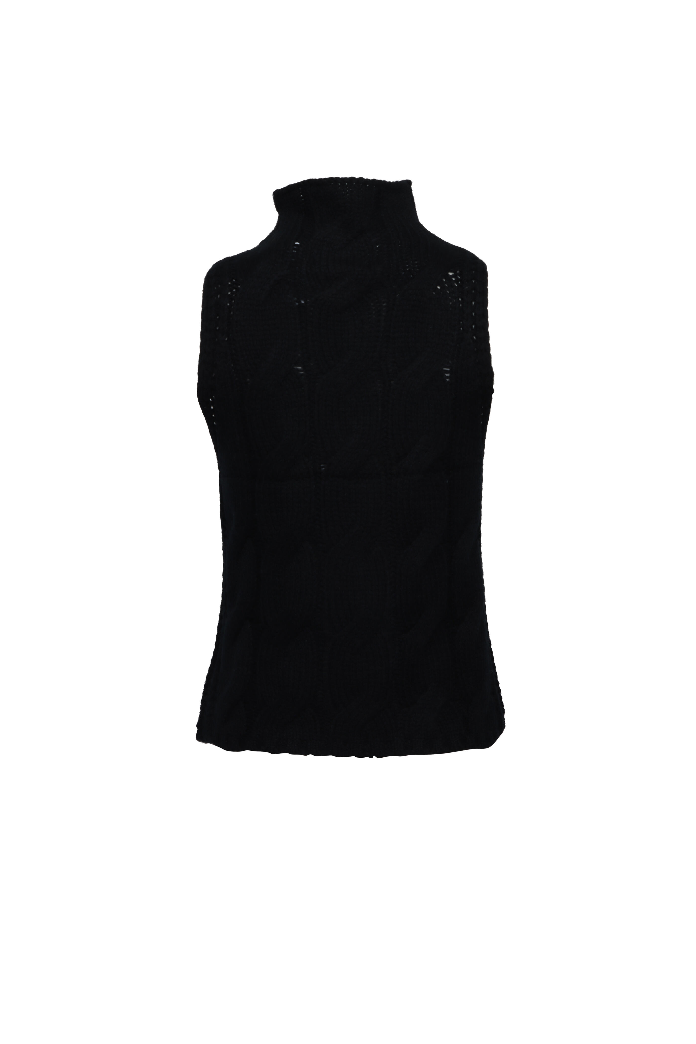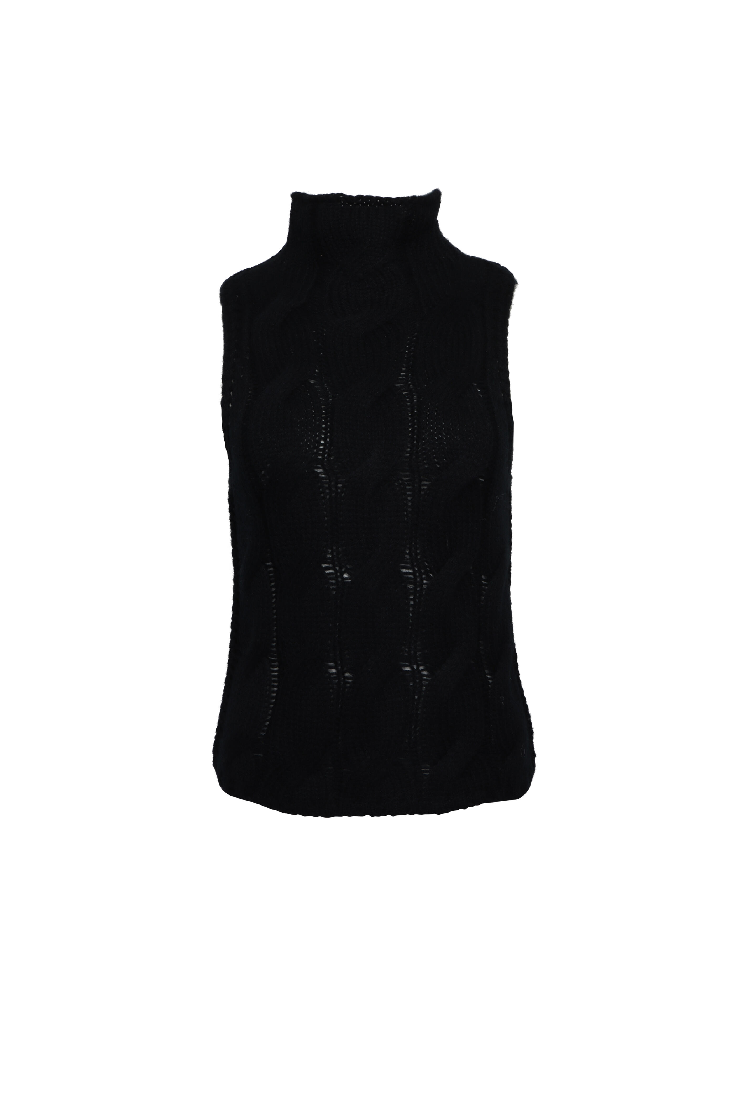 Turtleneck. Sleeveless. Straight hem. Cableknit fabrication. Imported. Bust 34” (Size S). Length 21.3” (Size S). 100% cashmere. Dry clean.
