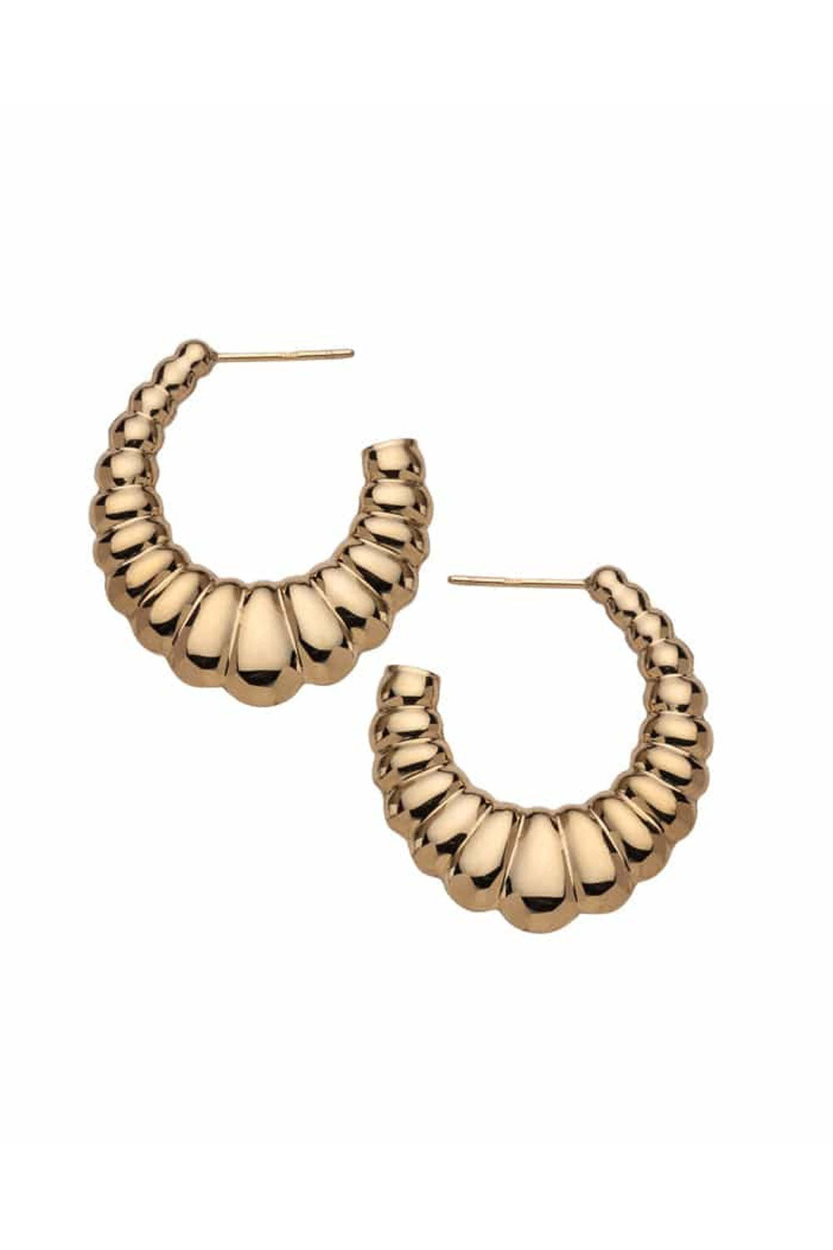18k yellow gold. Croissant-inspired design. Push back post. 1.25" D.