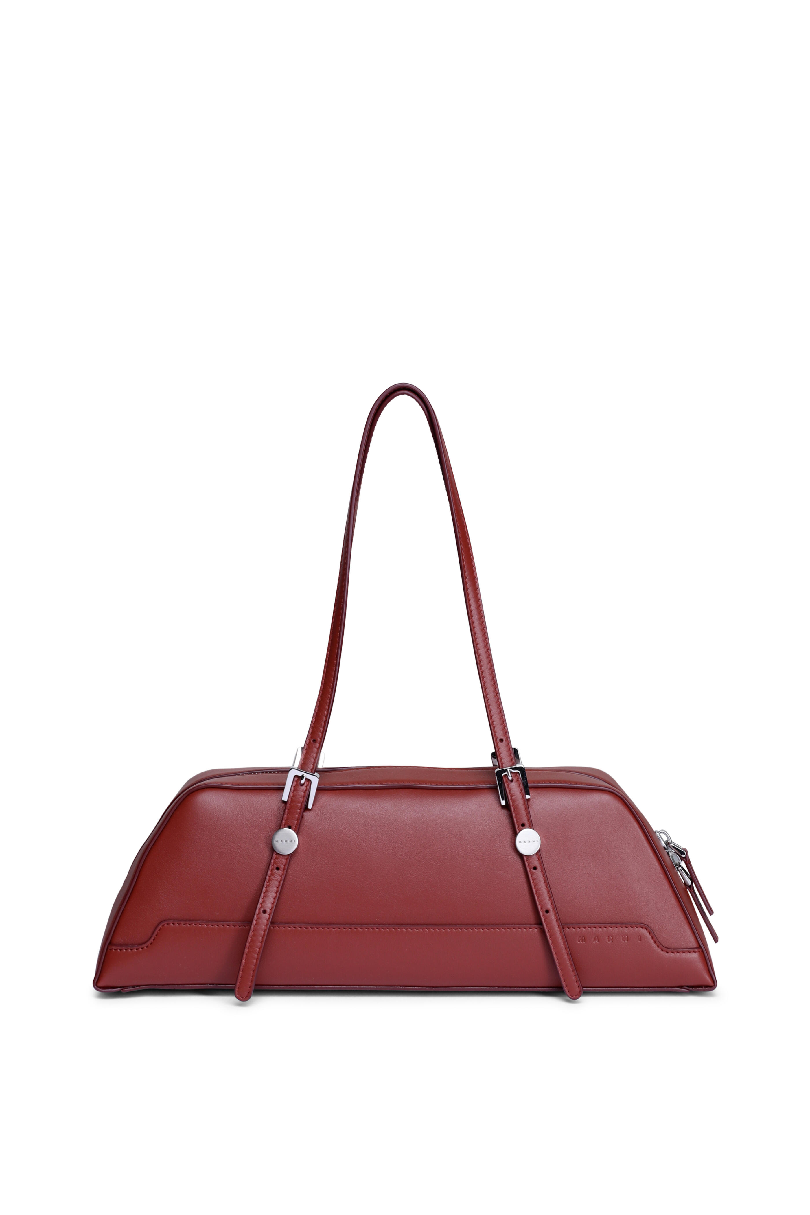 Dot Wild Cherry Leather Long Duffle Shoulder Bag