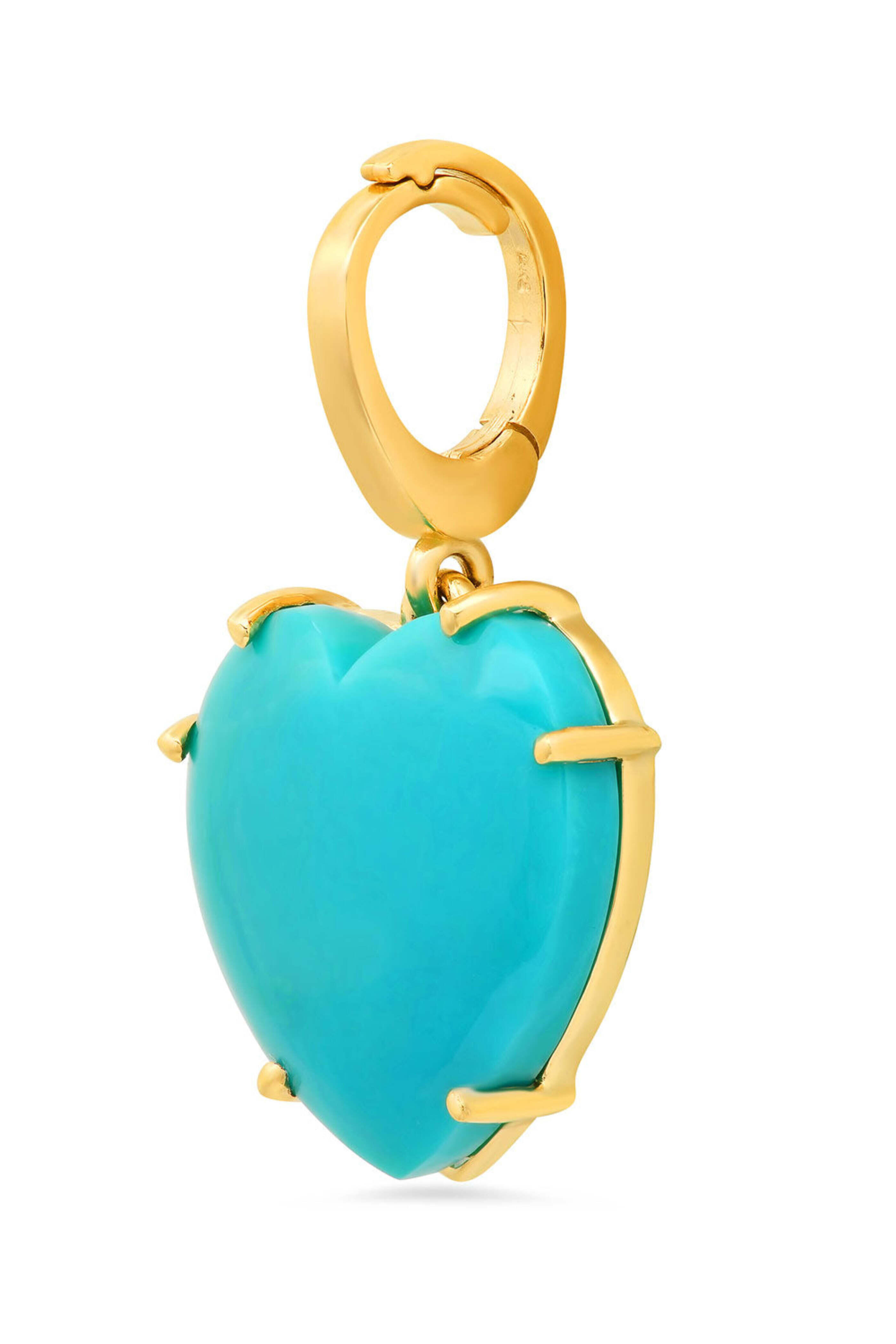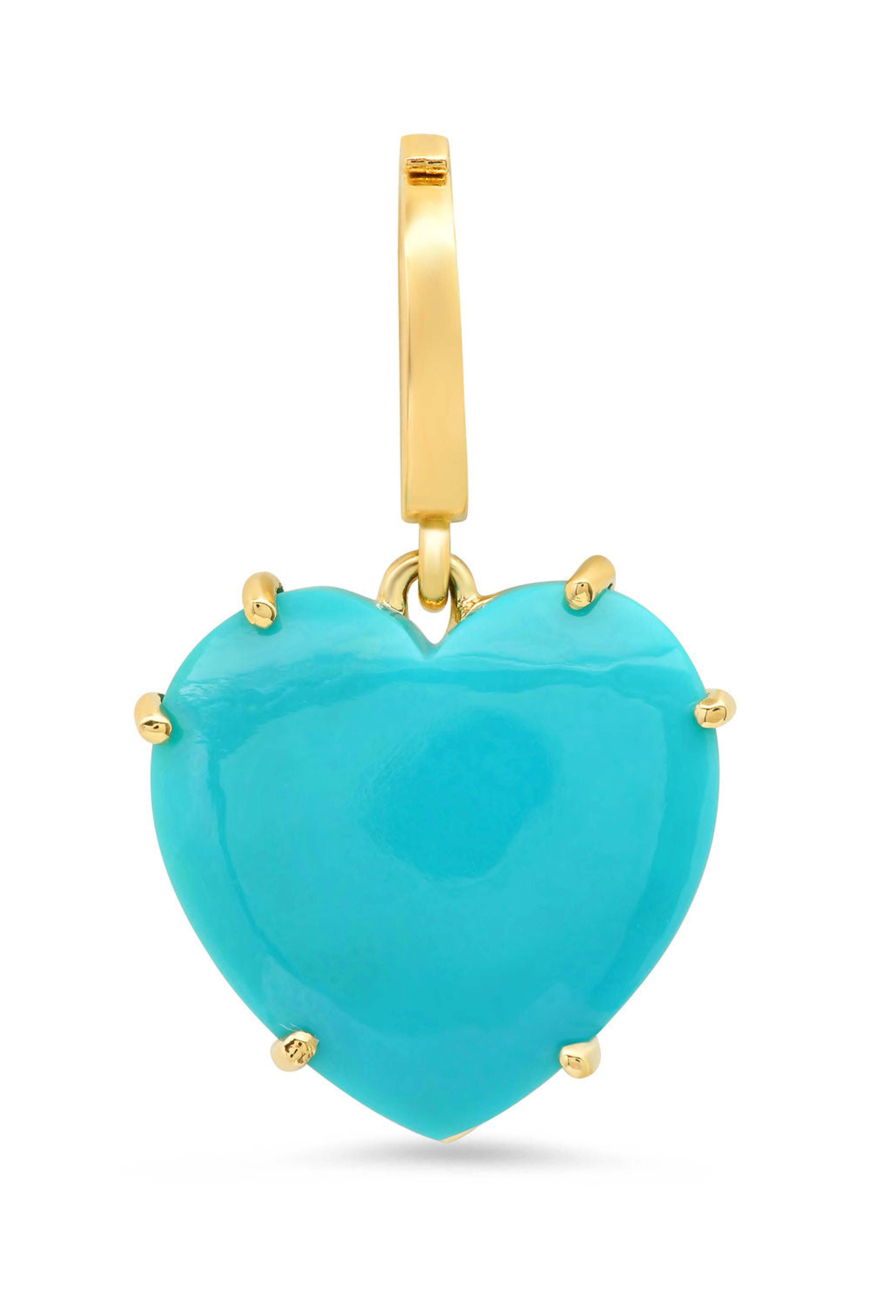 - Shylee Rose Yellow Gold Turquoise Heart Charm 14k yellow gold Hand-cut turquoise Heart design 15mm x 15mm Latch clasp closure