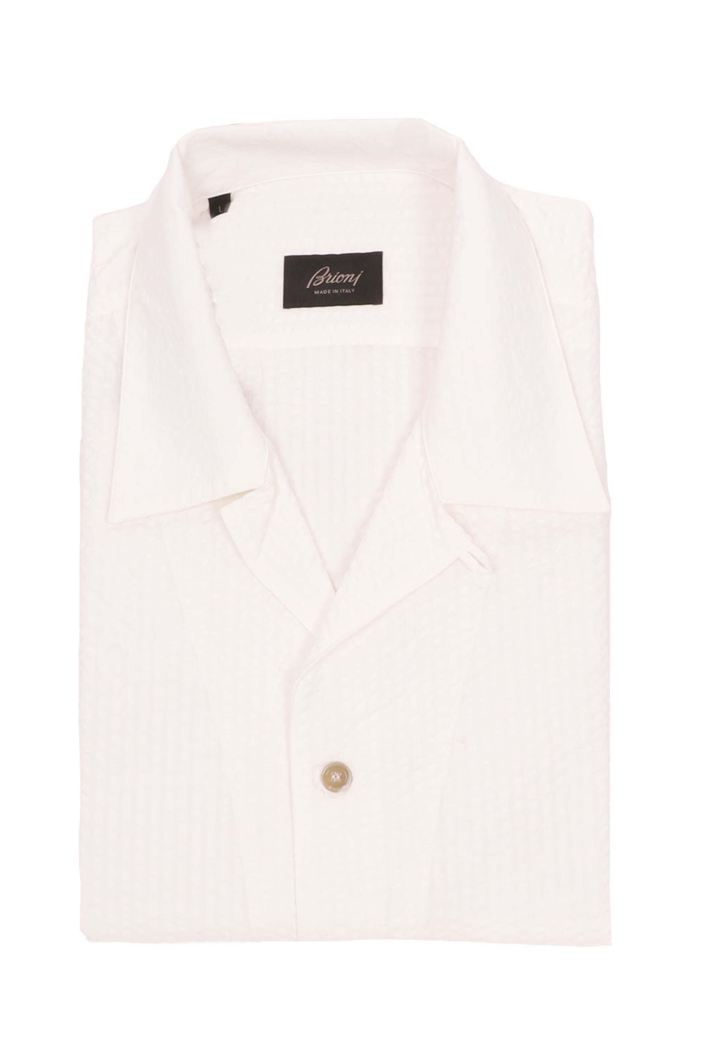 - Brioni White Seersucker Cuban Sportshirt