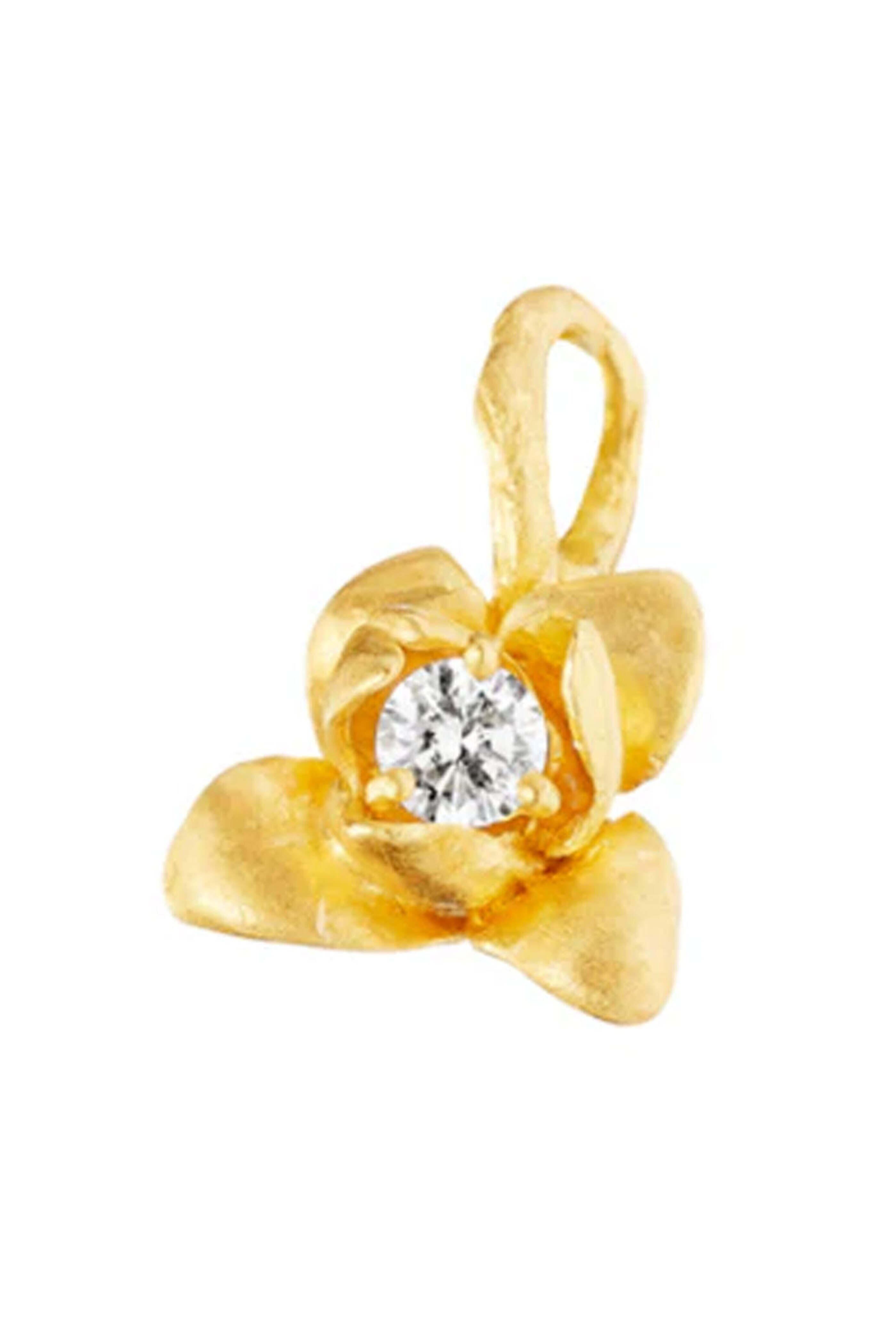 Susan Gordon Diamond Flower Bud Charm. 22k gold. Diamond 0.08 total carat weight. One diamond in the center of the flower. Flower design. Gold branch design bail. One of a kind. Handmade.