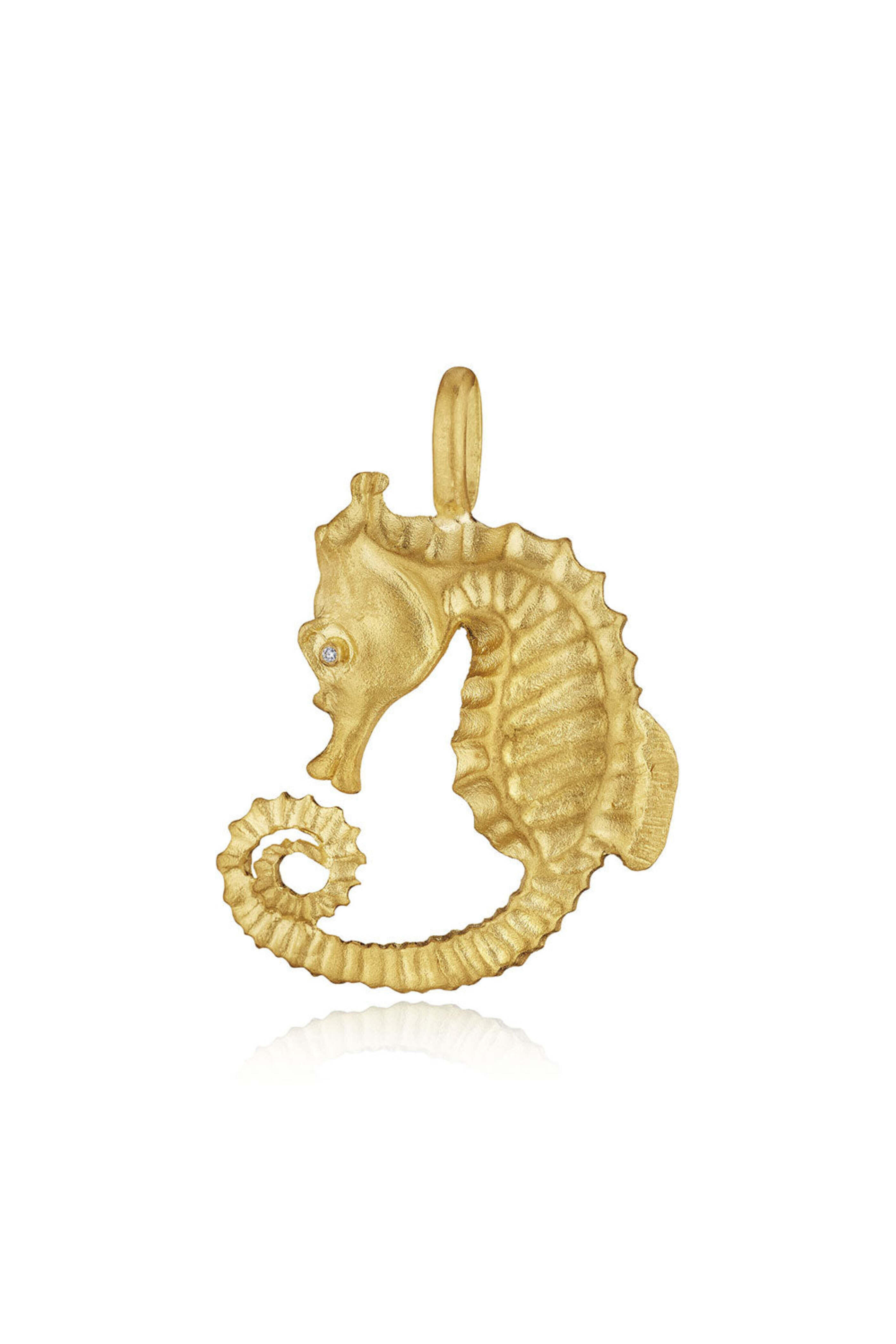 Susan Gordon Baby Seahorse Charm. 22k gold. Diamond 0.10 total carat weight. Seahorse with diamond eyes. 1.02 x 0.67. Bail cannot be removed.