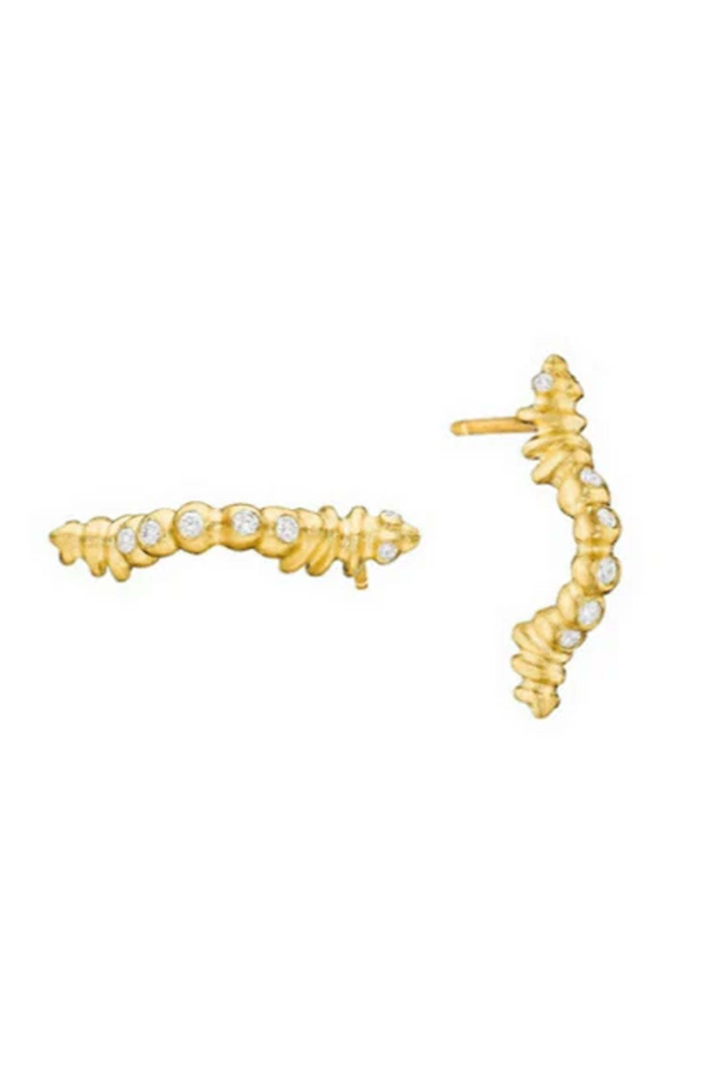 Susan Gordon Caterpillar Stud Earrings. 22k gold. Diamond 0.10 total carat weight. Caterpillar design. Diamond detailing. Stud style. Push back post. One of a kind. Handmade.