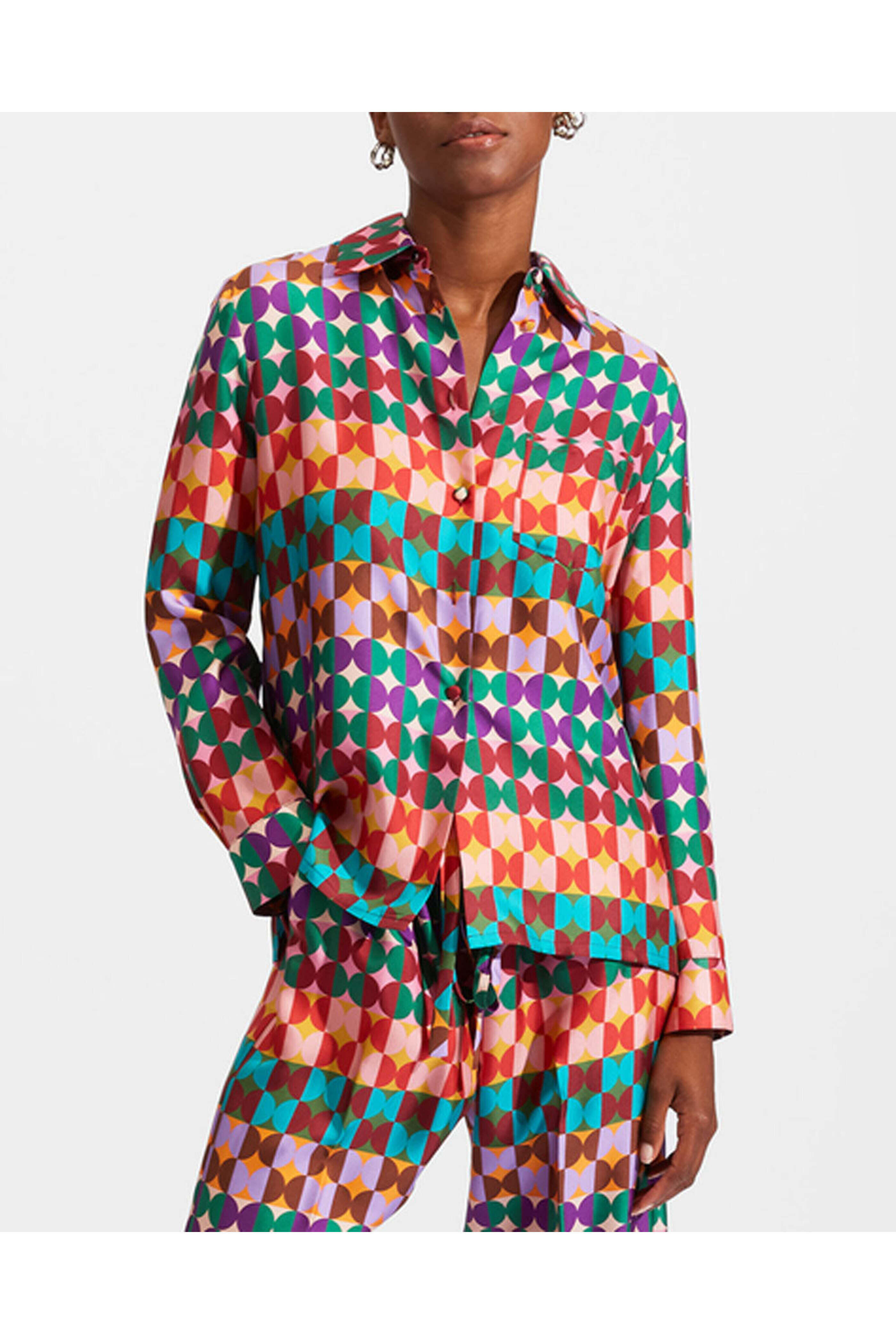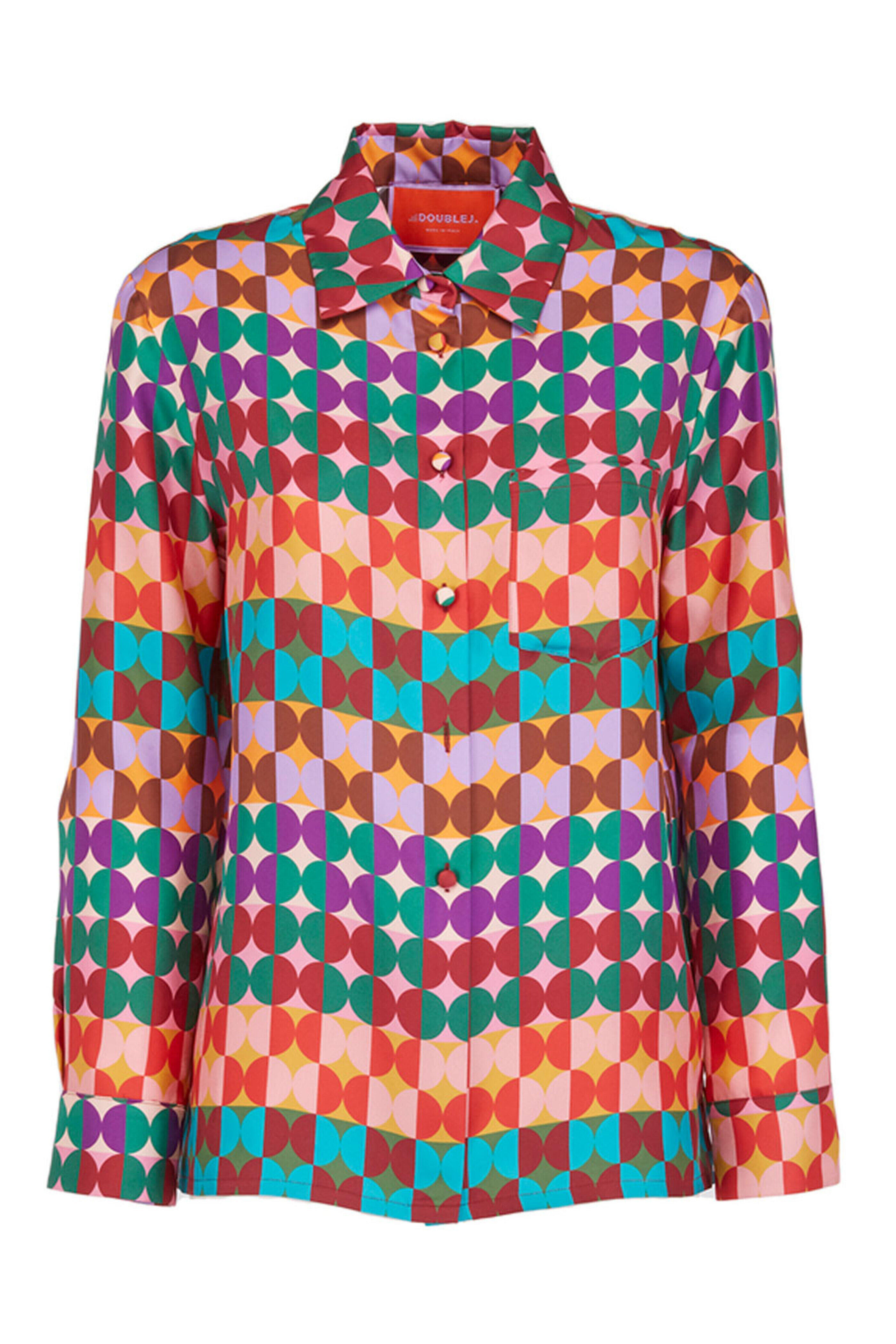 La DoubleJ Rainbow Mezzaluna Boy Shirt. Collar. Long sleeves; button cuffs. Button down front closure. Single chest patch pocket. Relaxed fit. Straight hem. Silk fabrication. Made in Italy. 100% silk.