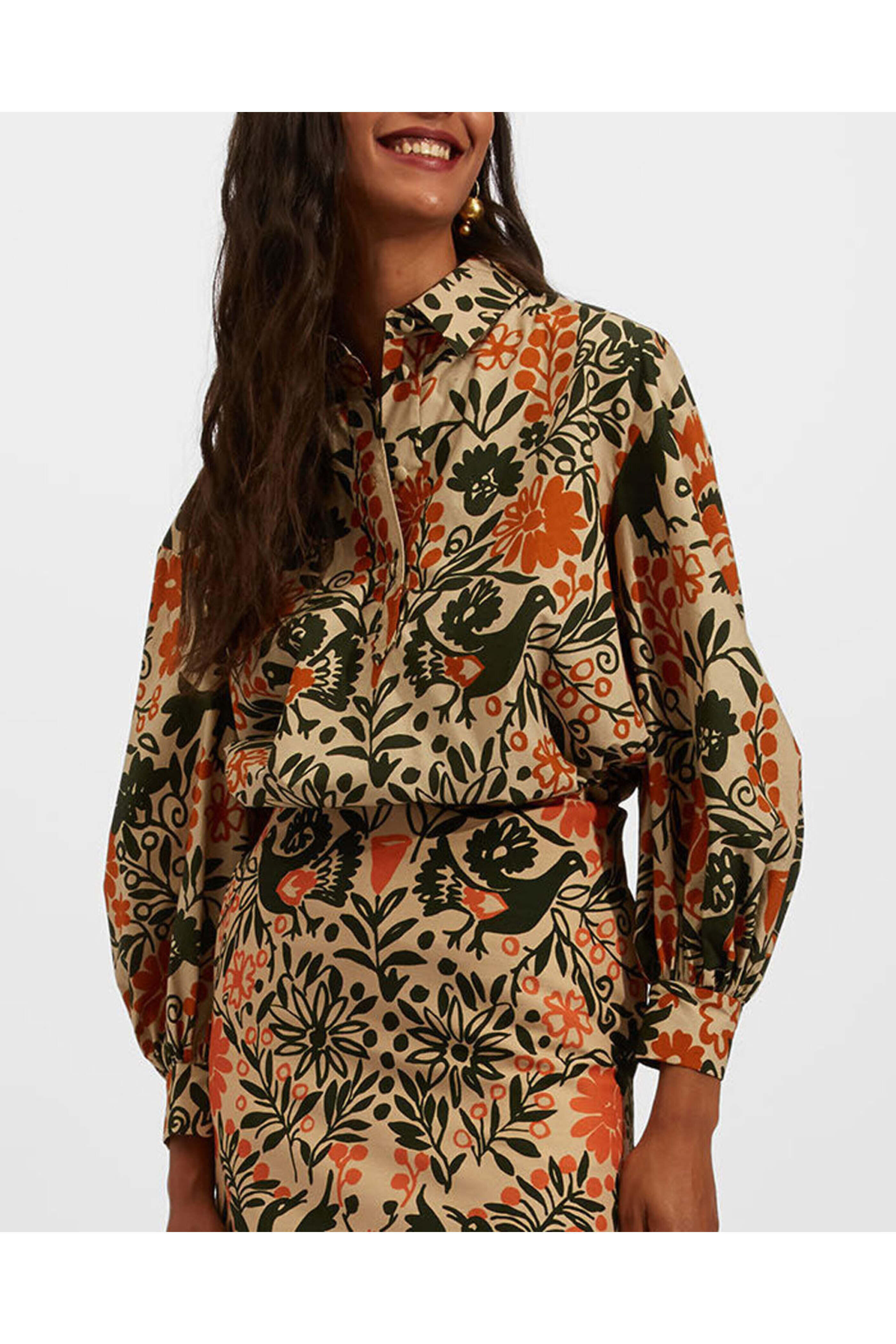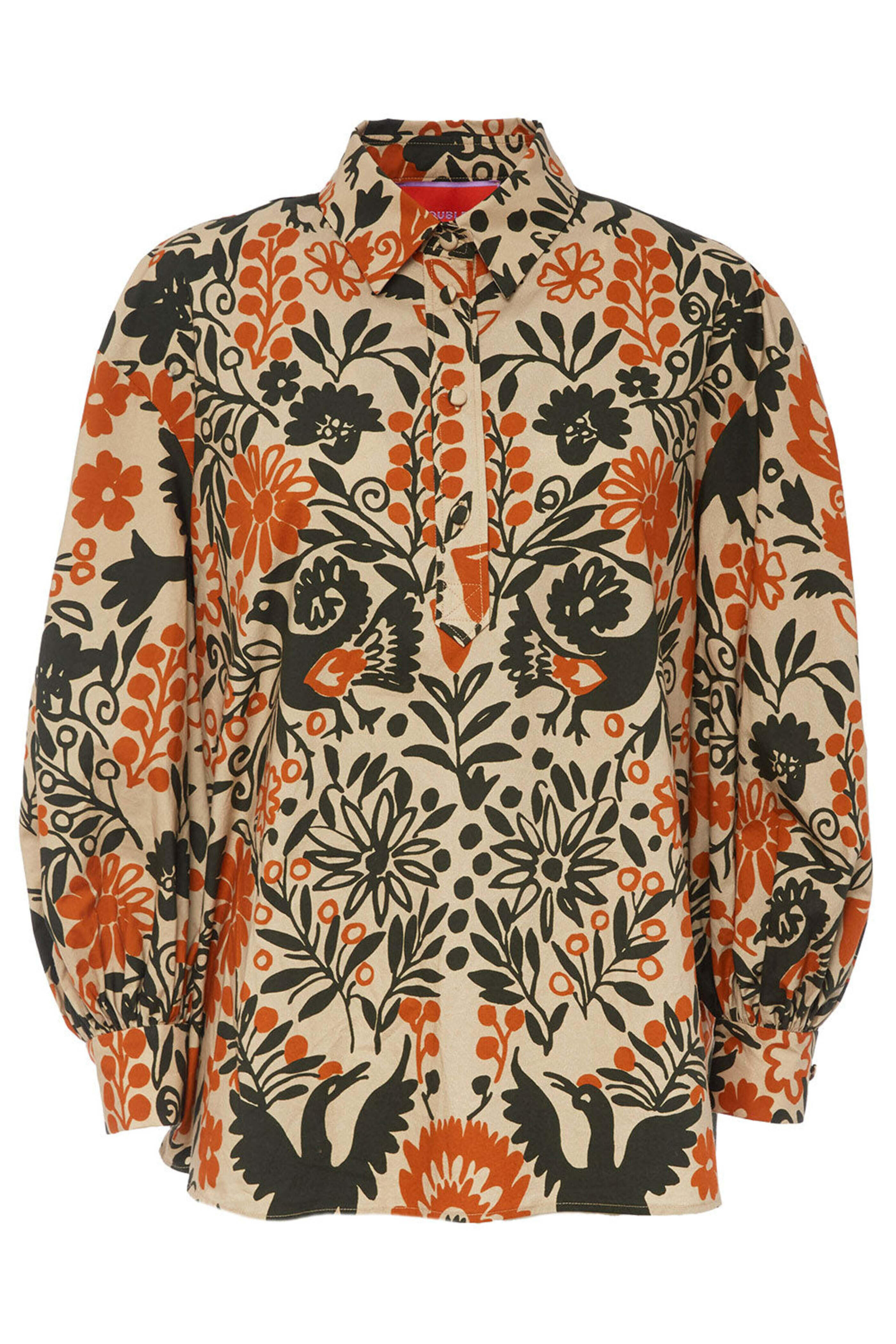 La DoubleJ Forest Poet Shirt. Collar. Long puff sleeves ; button cuffs. Quarter button front placket. Relaxed fit. Cotton poplin fabrication. Made in Italy. 100% cotton.