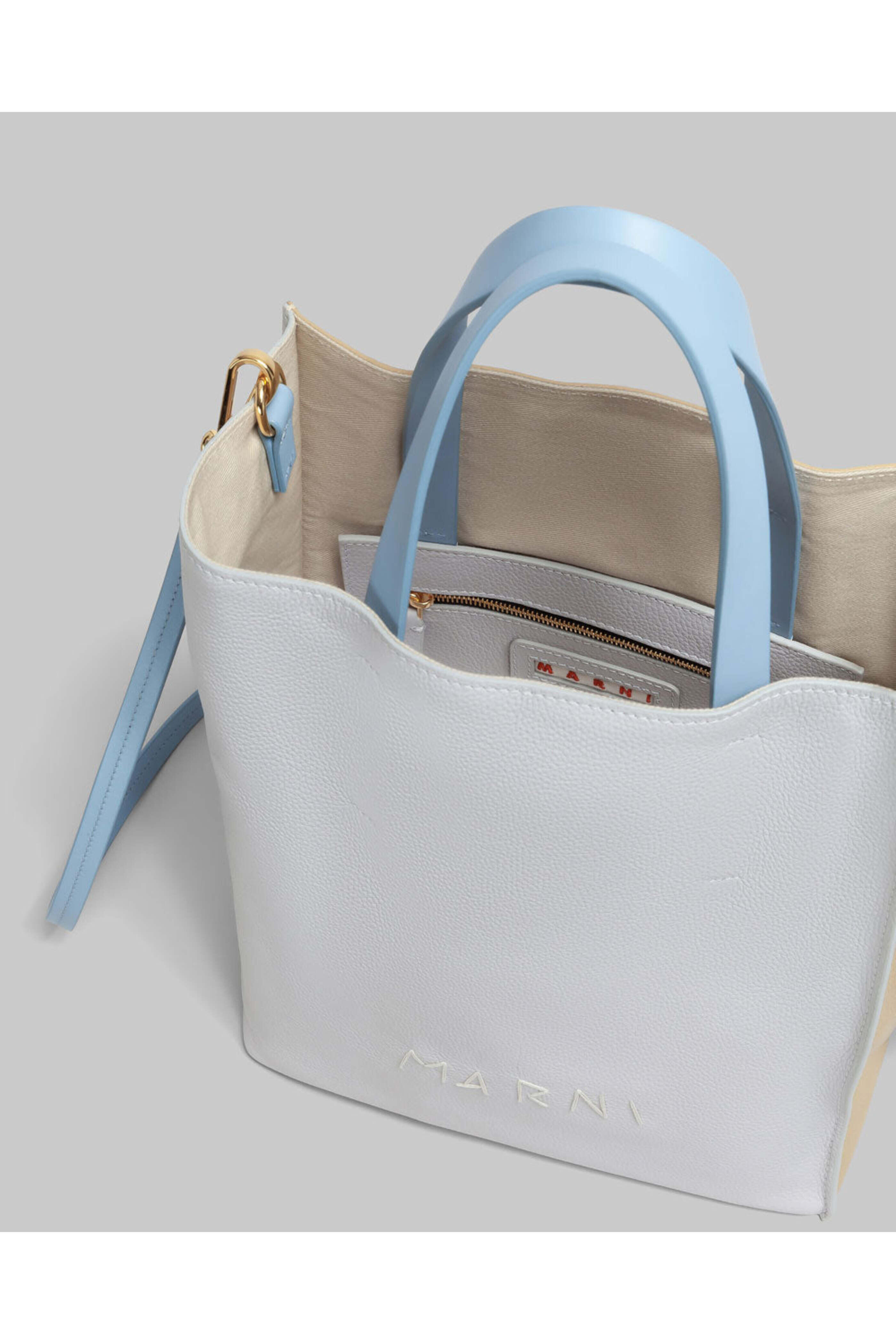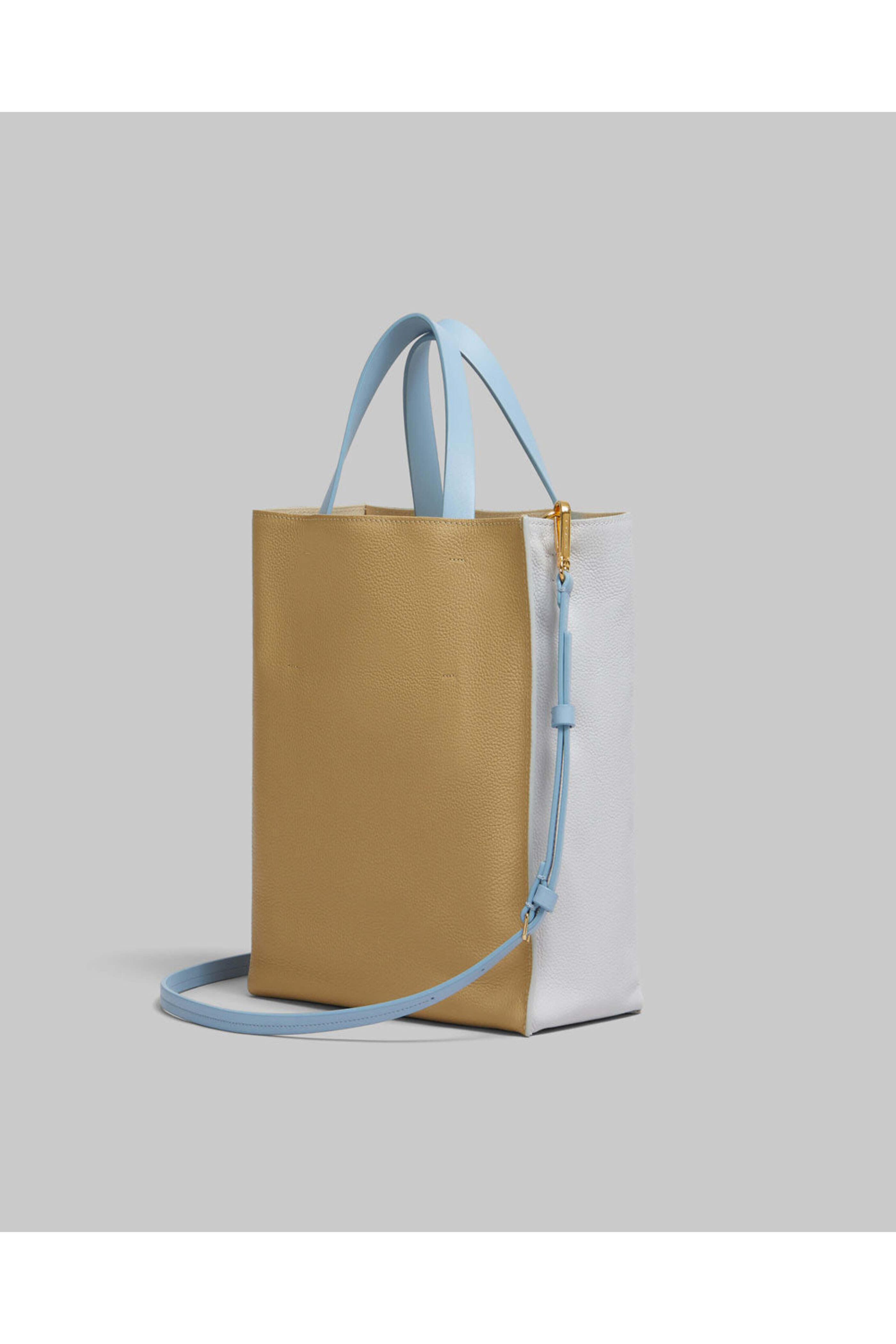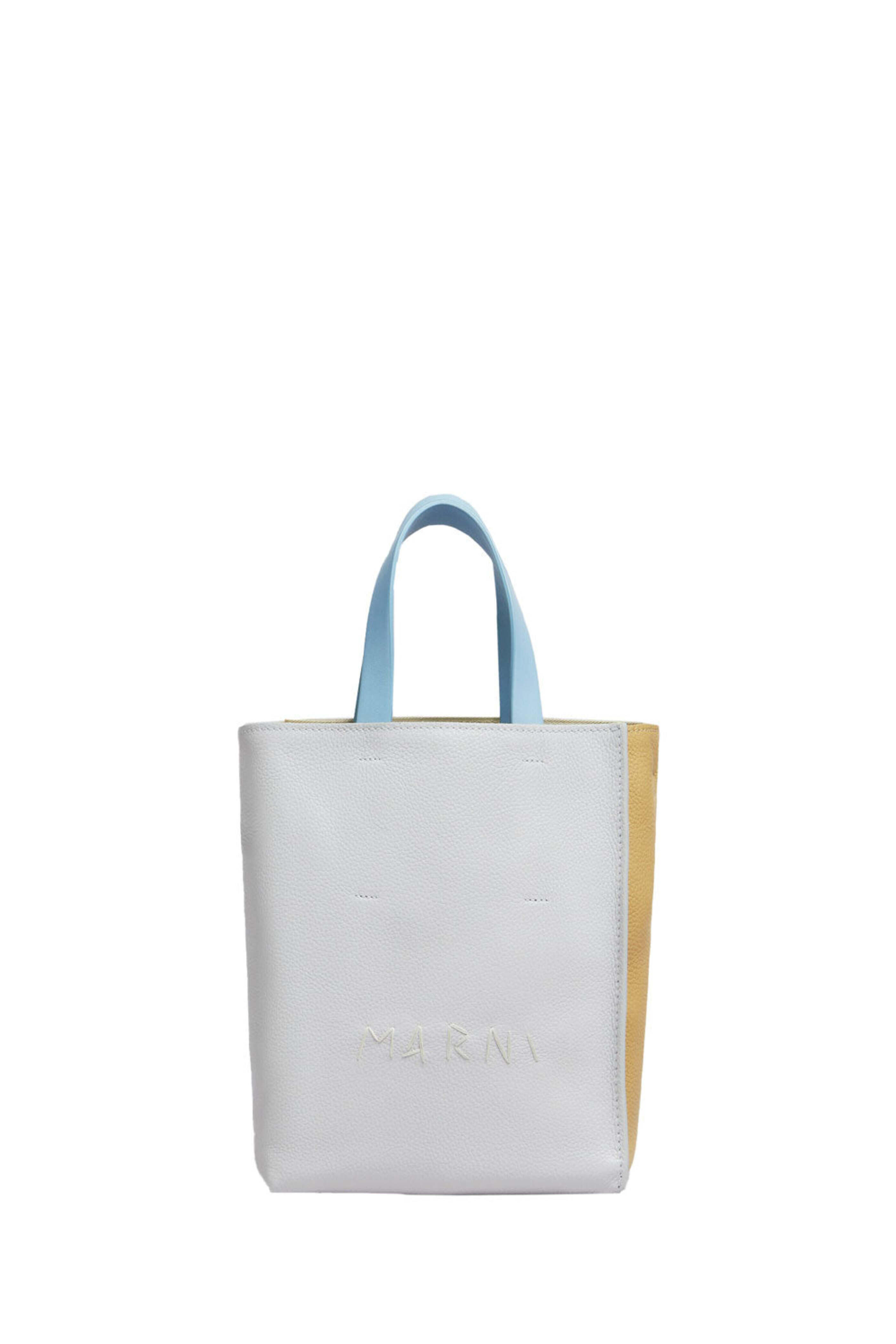Leather outer and lining. Open top. Dual top handles. Detachable and adjustable shoulder strap. Interior zip pocket. Hand-stitched Marni logo. Made in Italy. 7.9W x 8.7H x 3.9D. 44.1 strap drop.