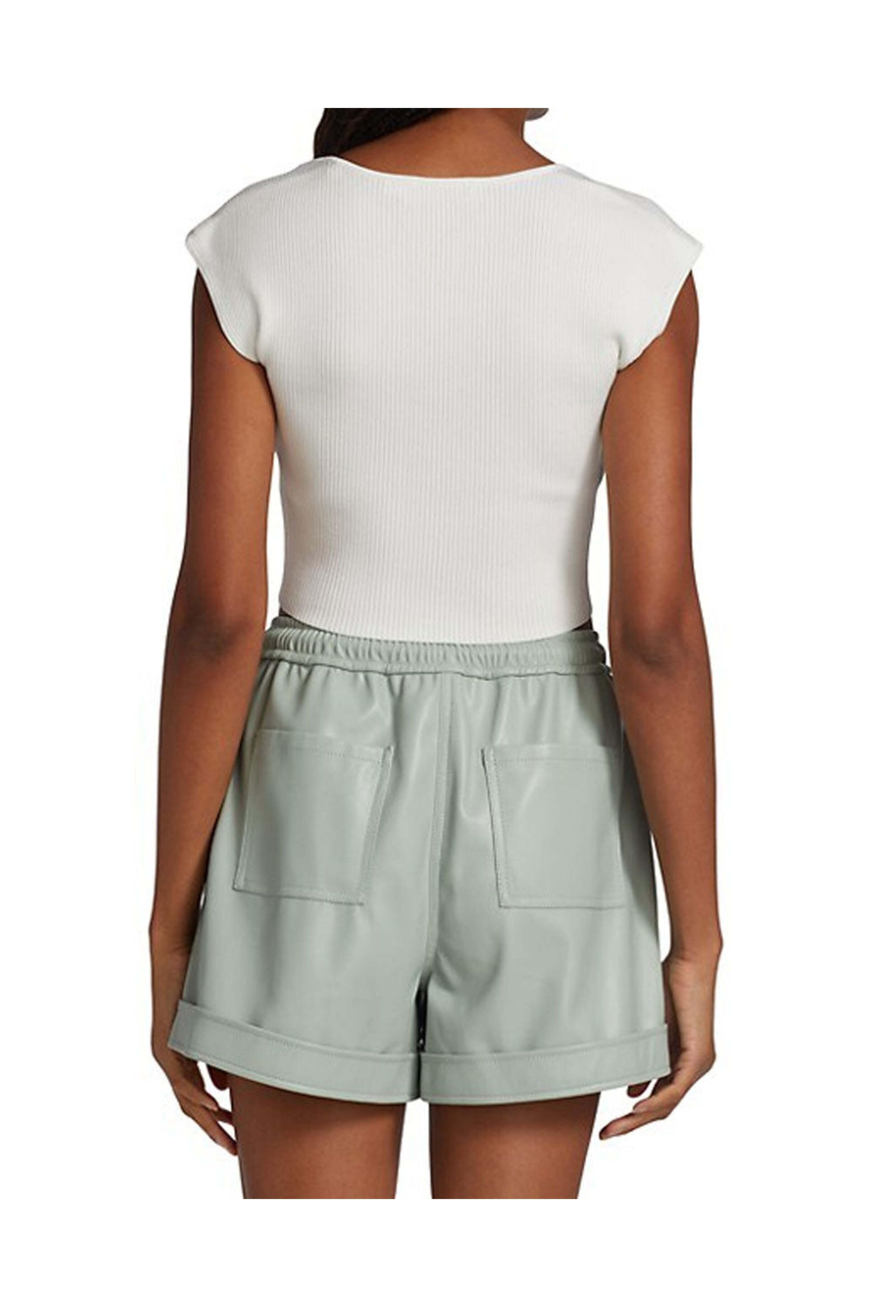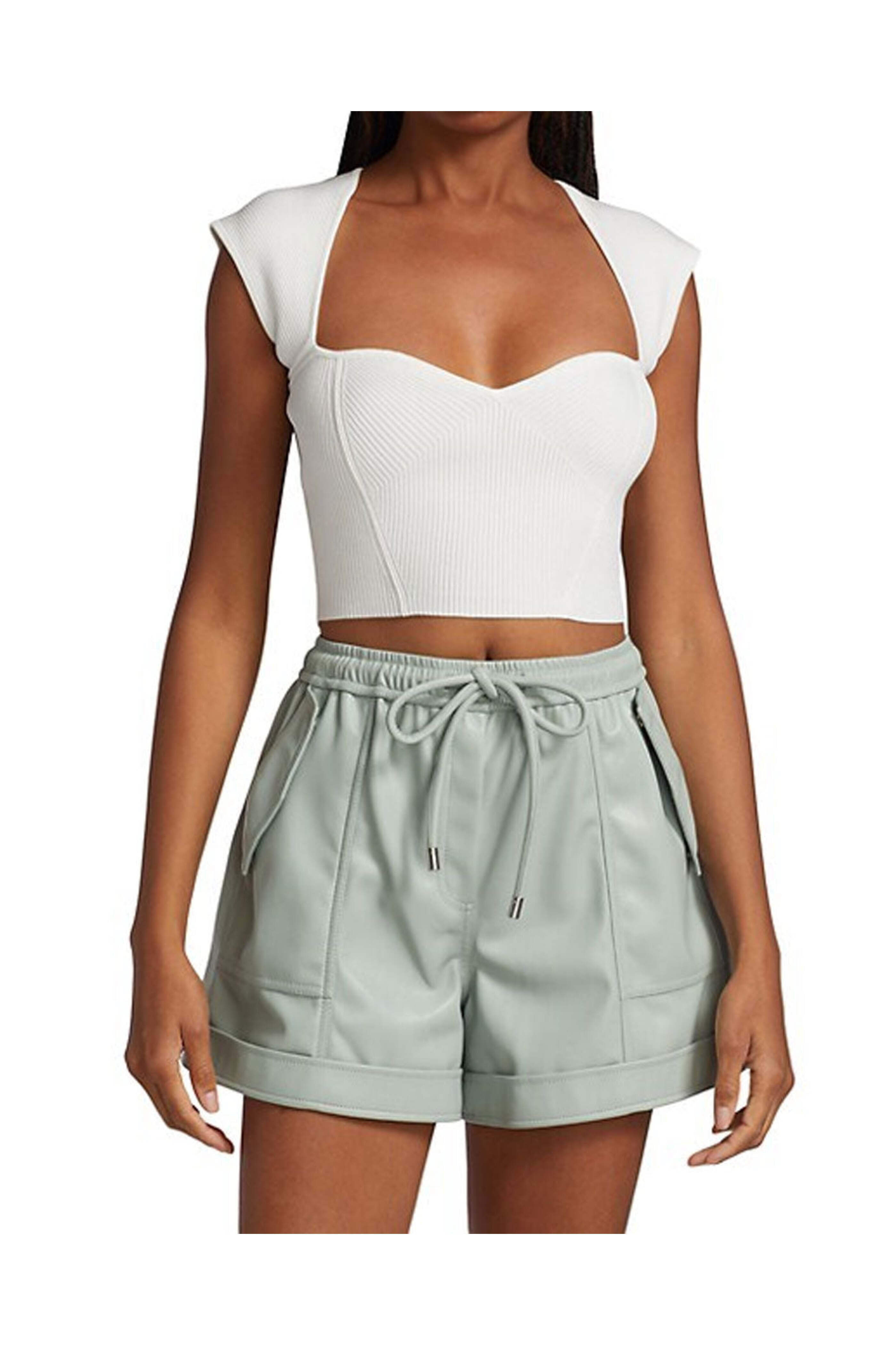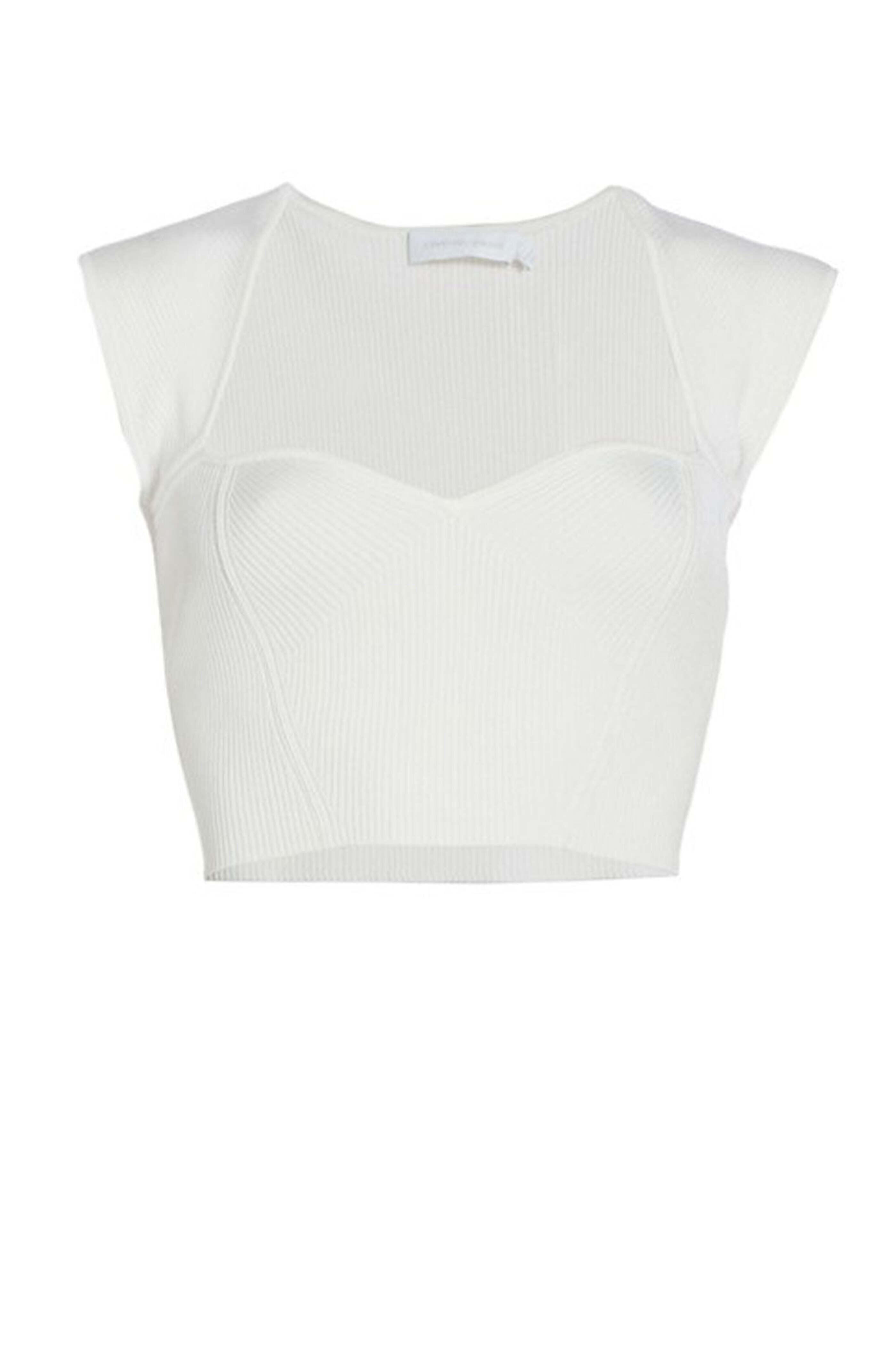 Simkhai White Abia Cropped Tee. Sweetheart neck. Cap sleeves. Cropped hem . Slim fit. 80% rayon 20% nylon.