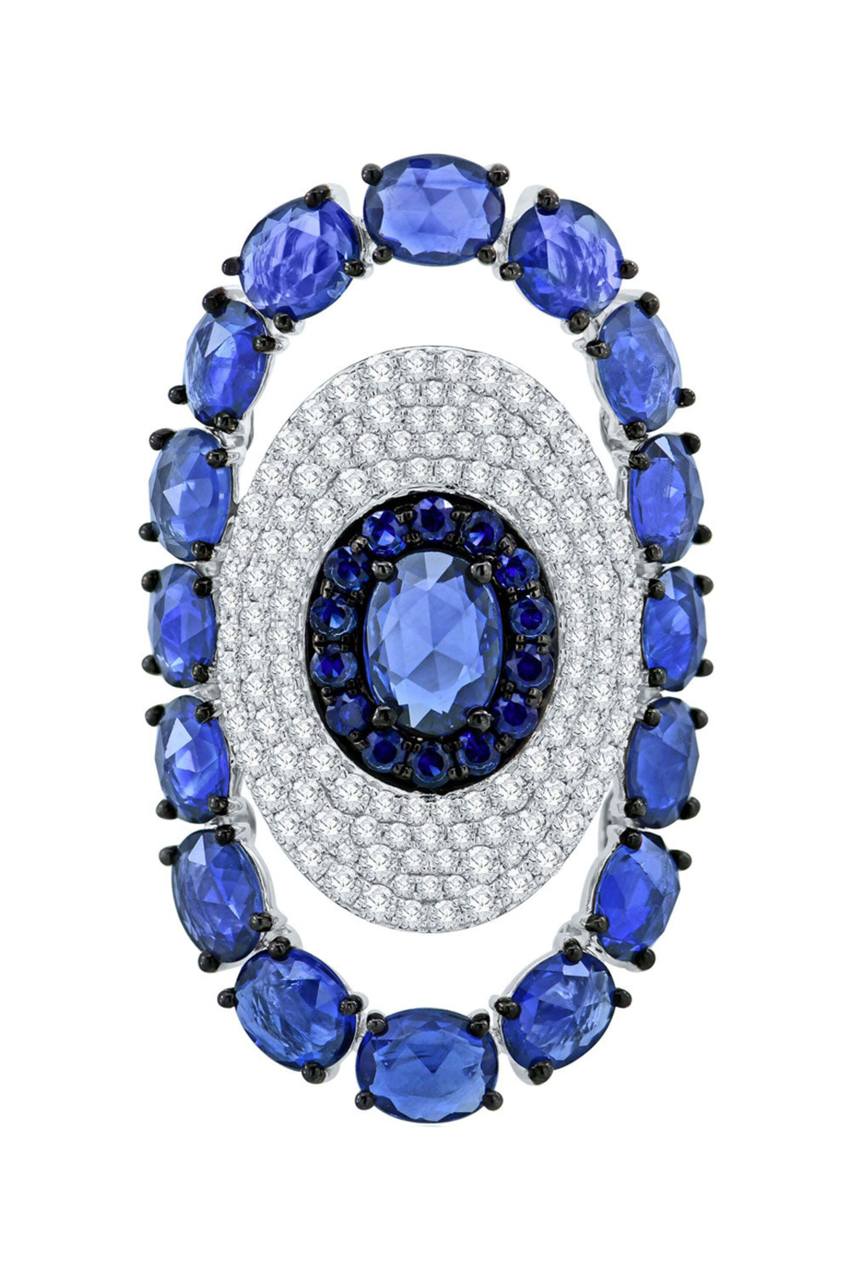- Sutra Jewels Blue Sapphire and Diamond Oval Ring