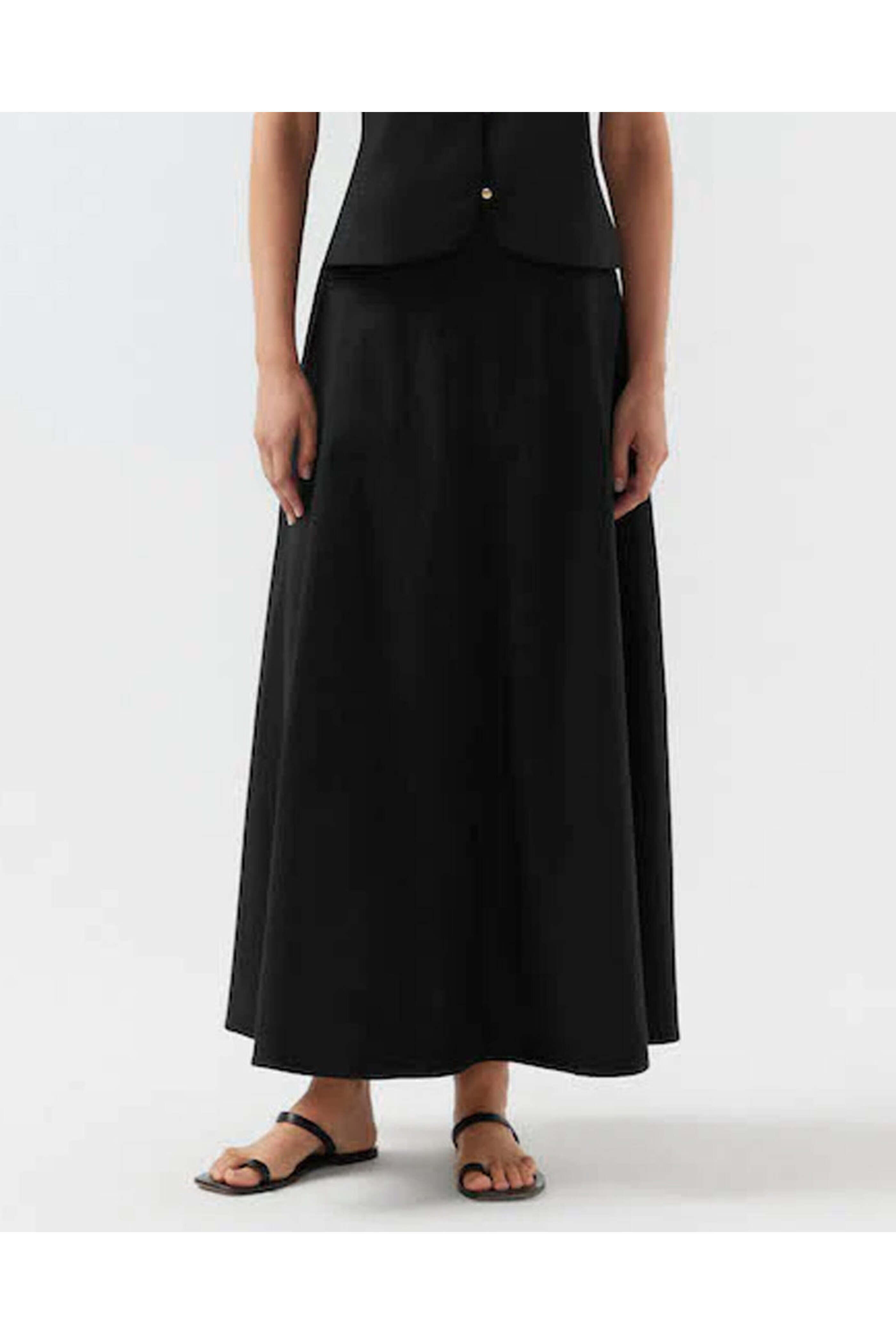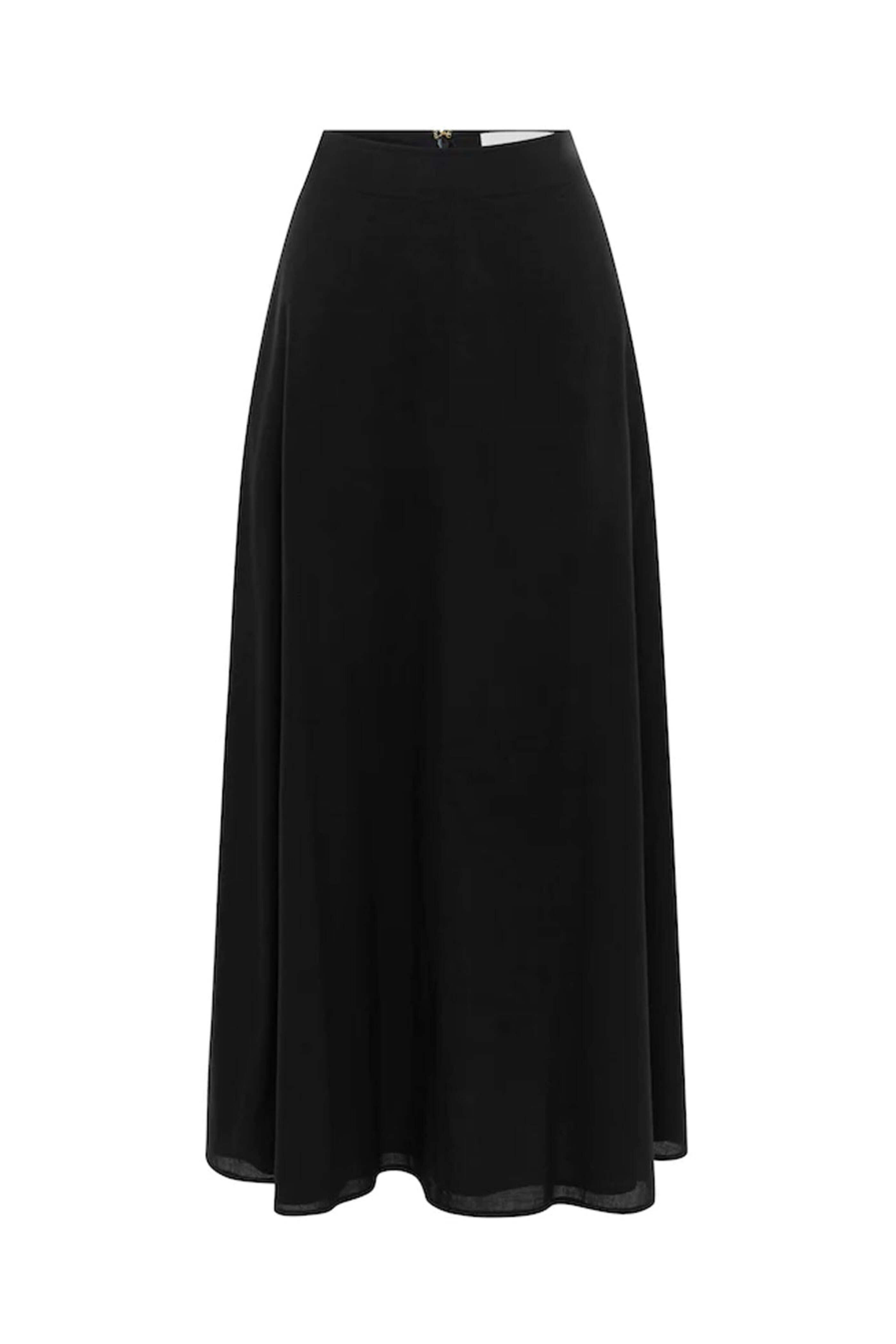 Bird & Knoll Black Story Skirt. High rise. Concealed zip closure. Aline silhouette. Midi length. Lined. 100% cotton outer and lining.