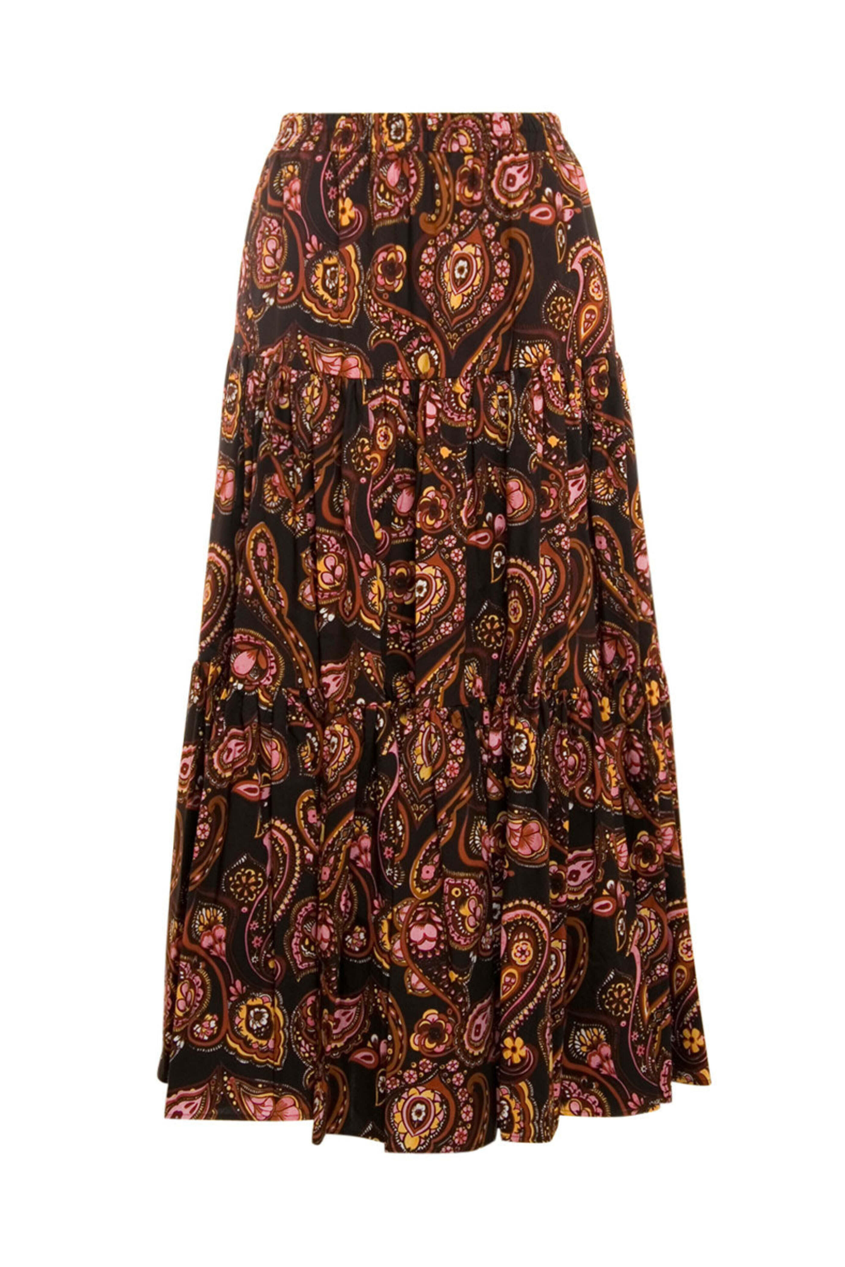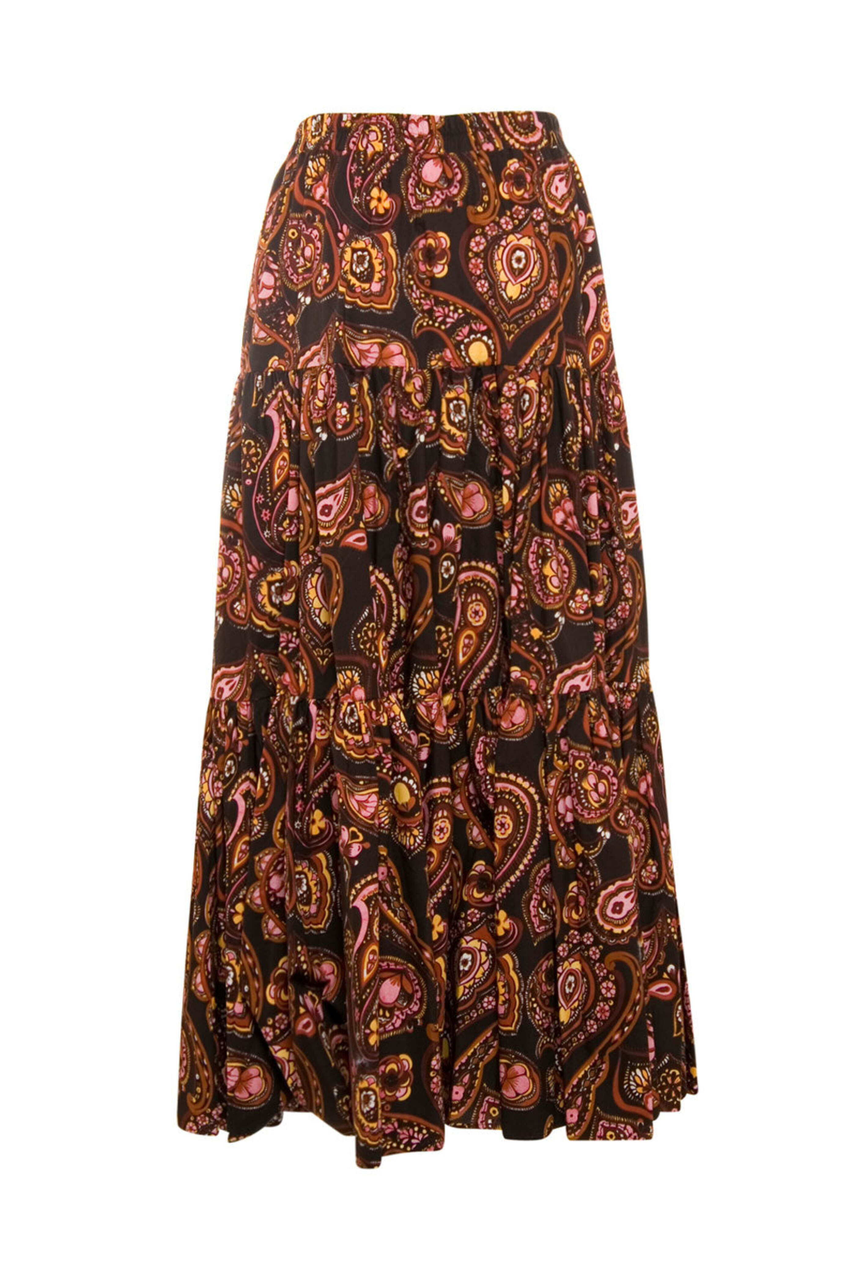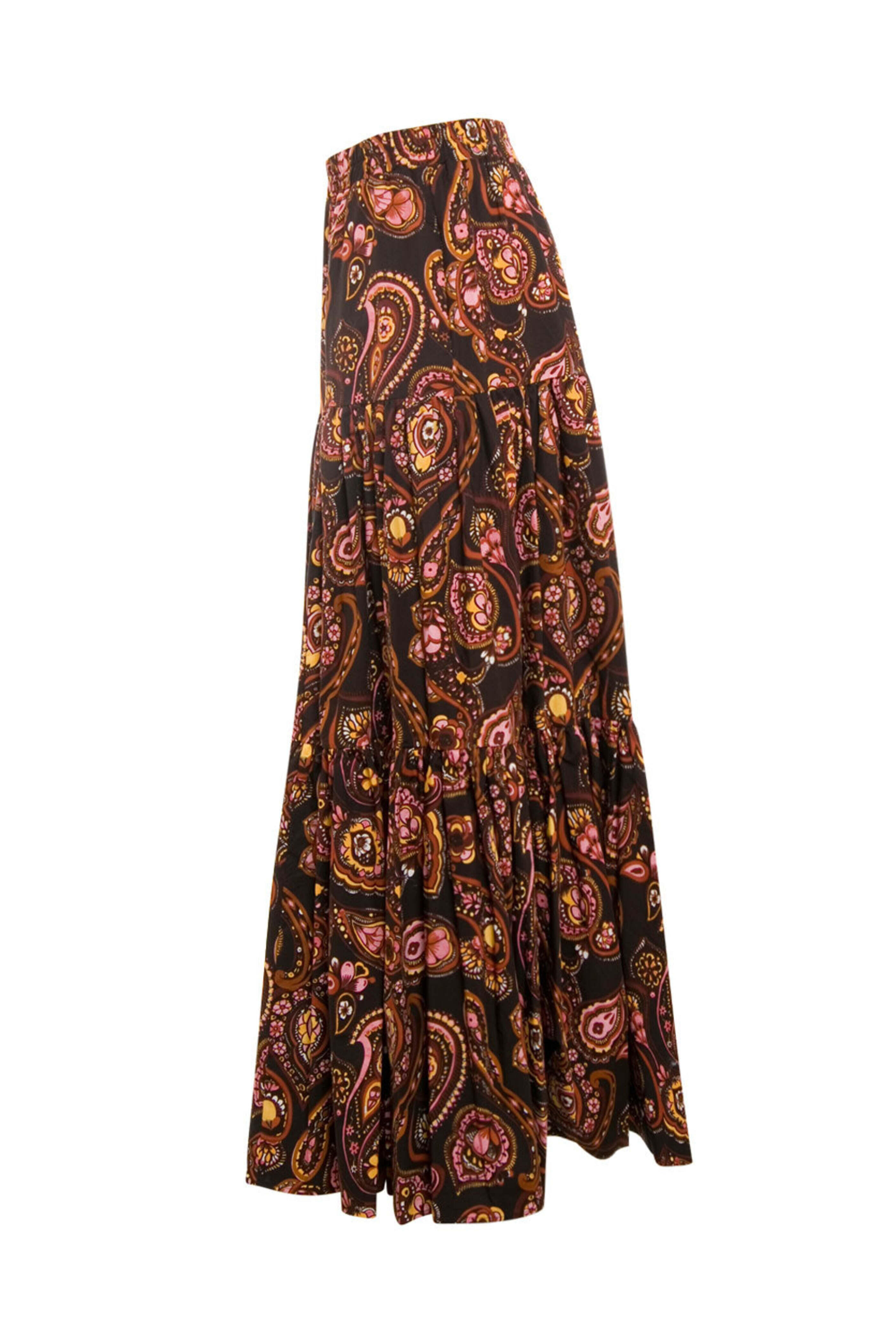 La DoubleJ Paisley Big Skirt. Mid rise. Elastic waist. Side slip pockets. Teired silhouette. Maxi length. Made in Italy. 100% cotton.
