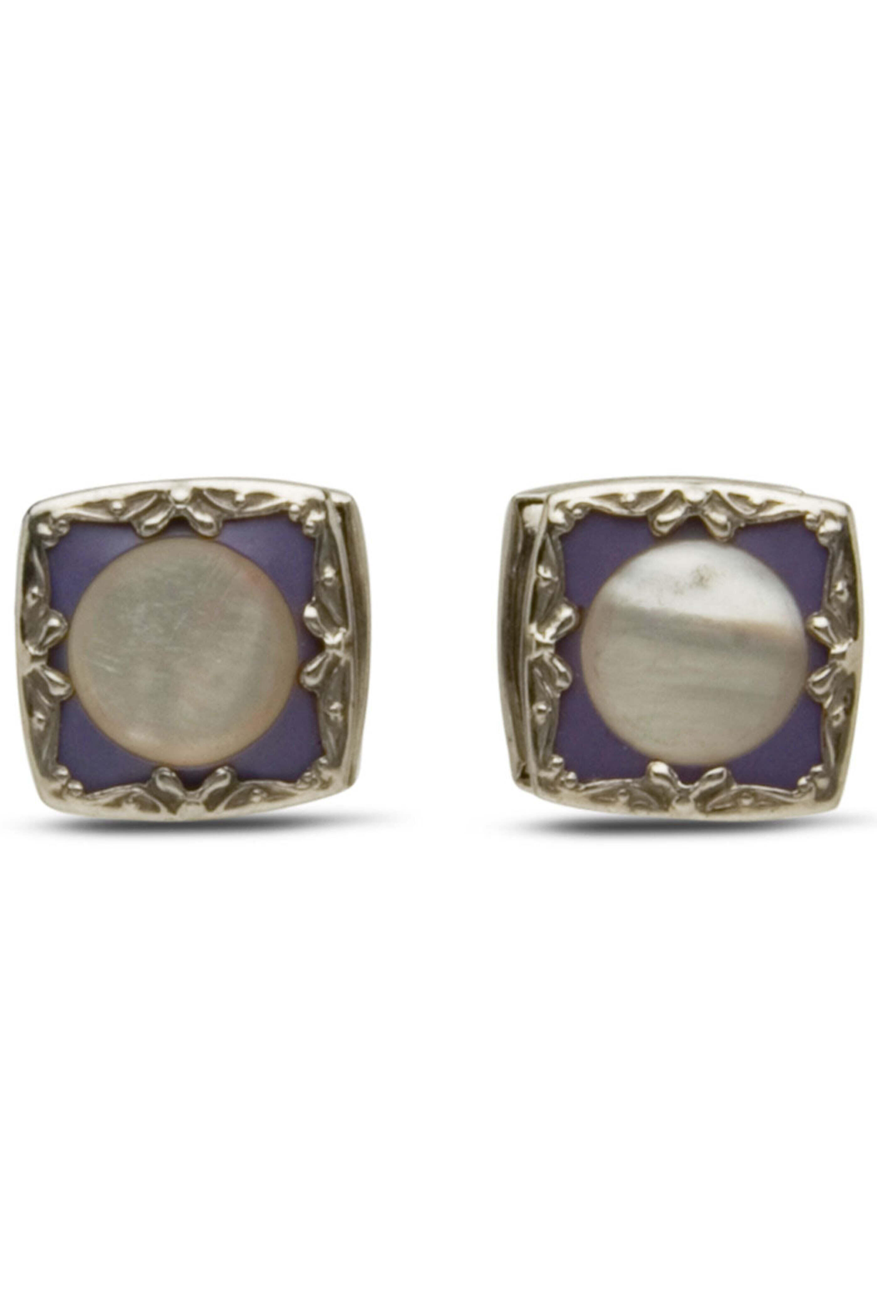 Spivey Lilac Mother of Pearl Cufflinks. Lilac celluloid. Mother of pearl. Snap closure.
