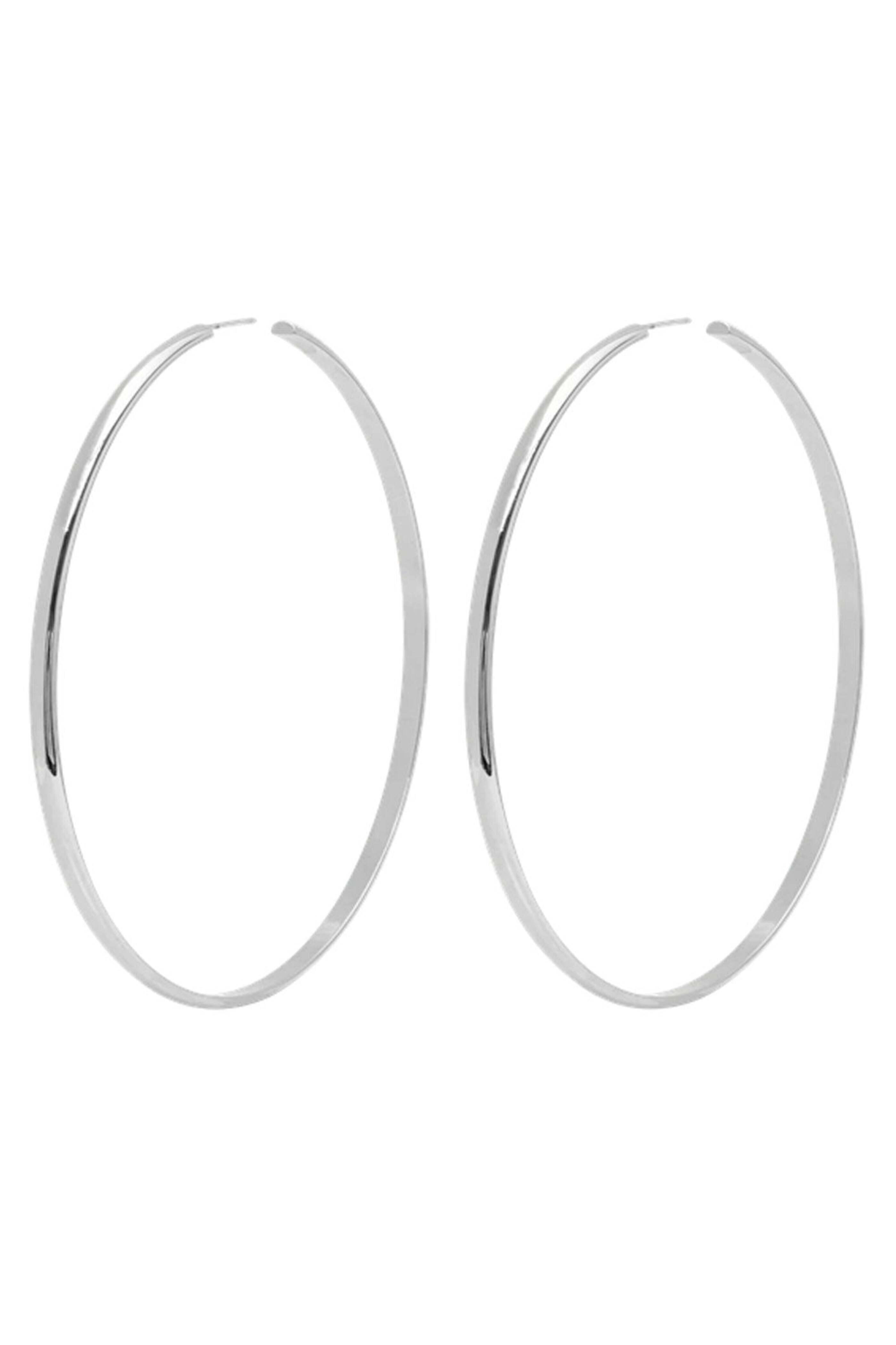 Svelte Metals Audrey Hoop Earrings. Rhodium plated. Brass. Sleek and lightweight. 3. Hypoallergenic steel posts. Handmade in the USA.