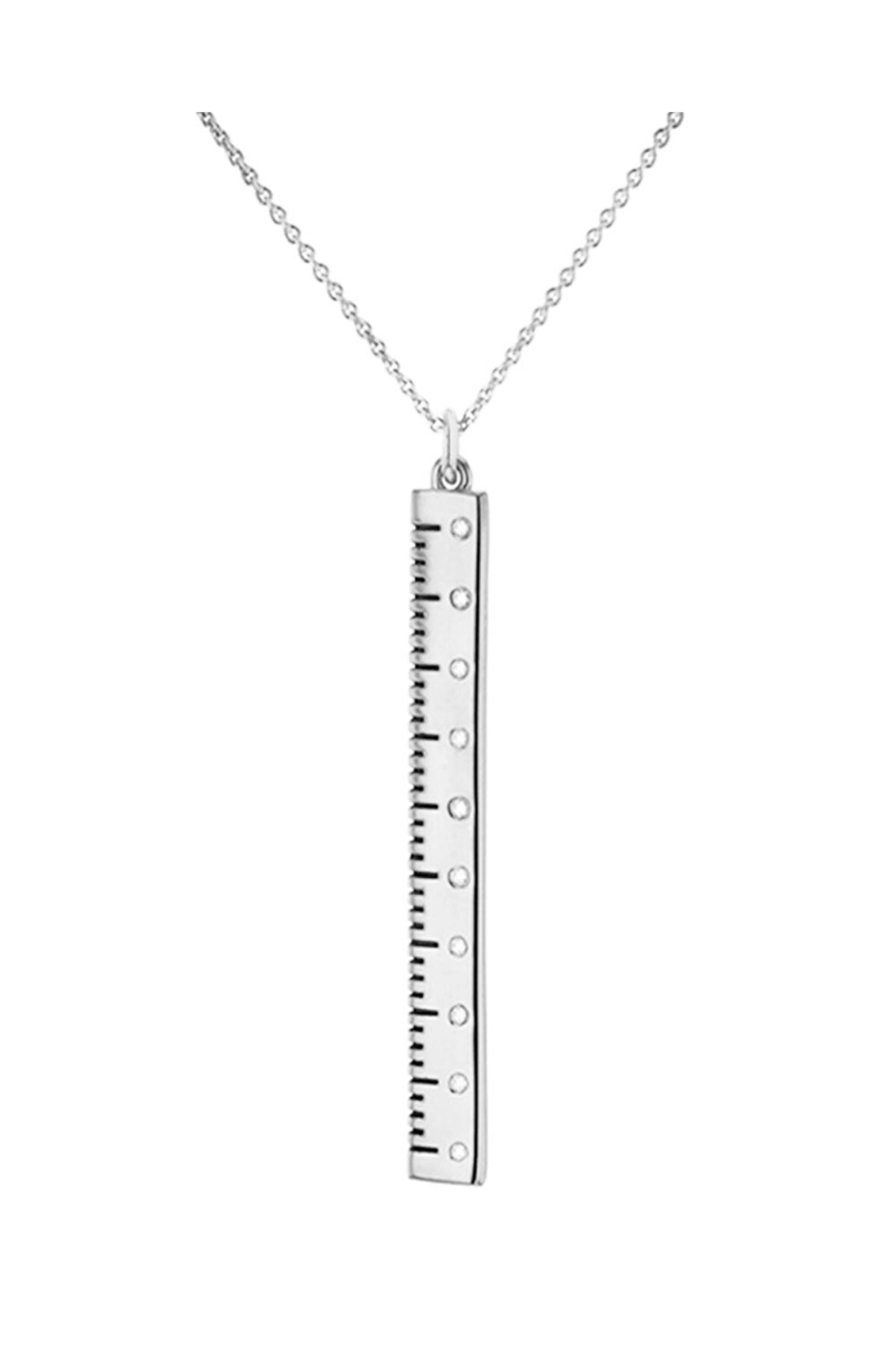 Sterling silver. 0.05 total diamond carat weight. Ruler: 39mm x 5mm. Adjustable chain up to 20" L. Lobster claw clasp.