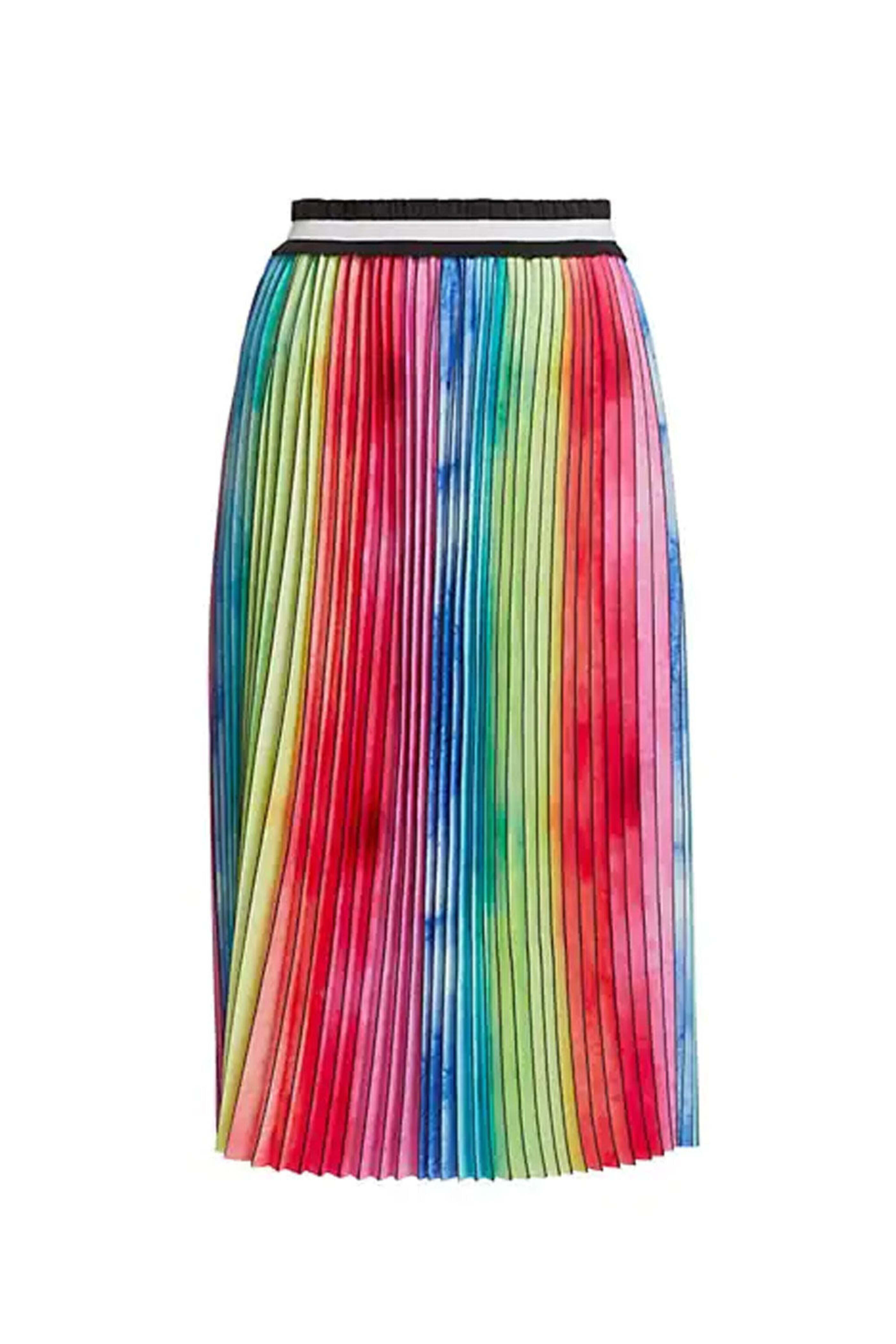 Le Superbe Watercolor Rainbow Pleated Skirt Elasticized waistband Pleated Polyester Midi Length.