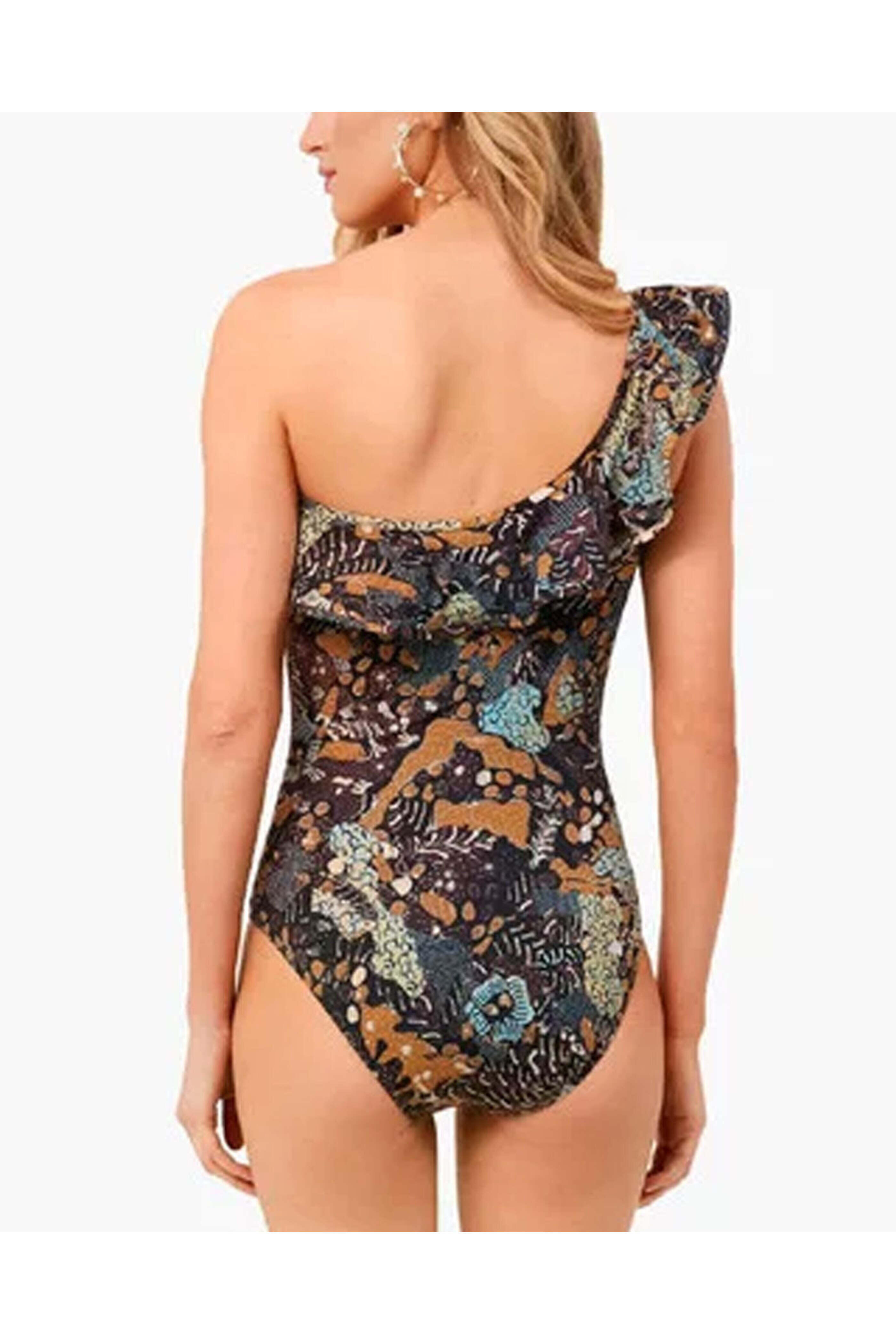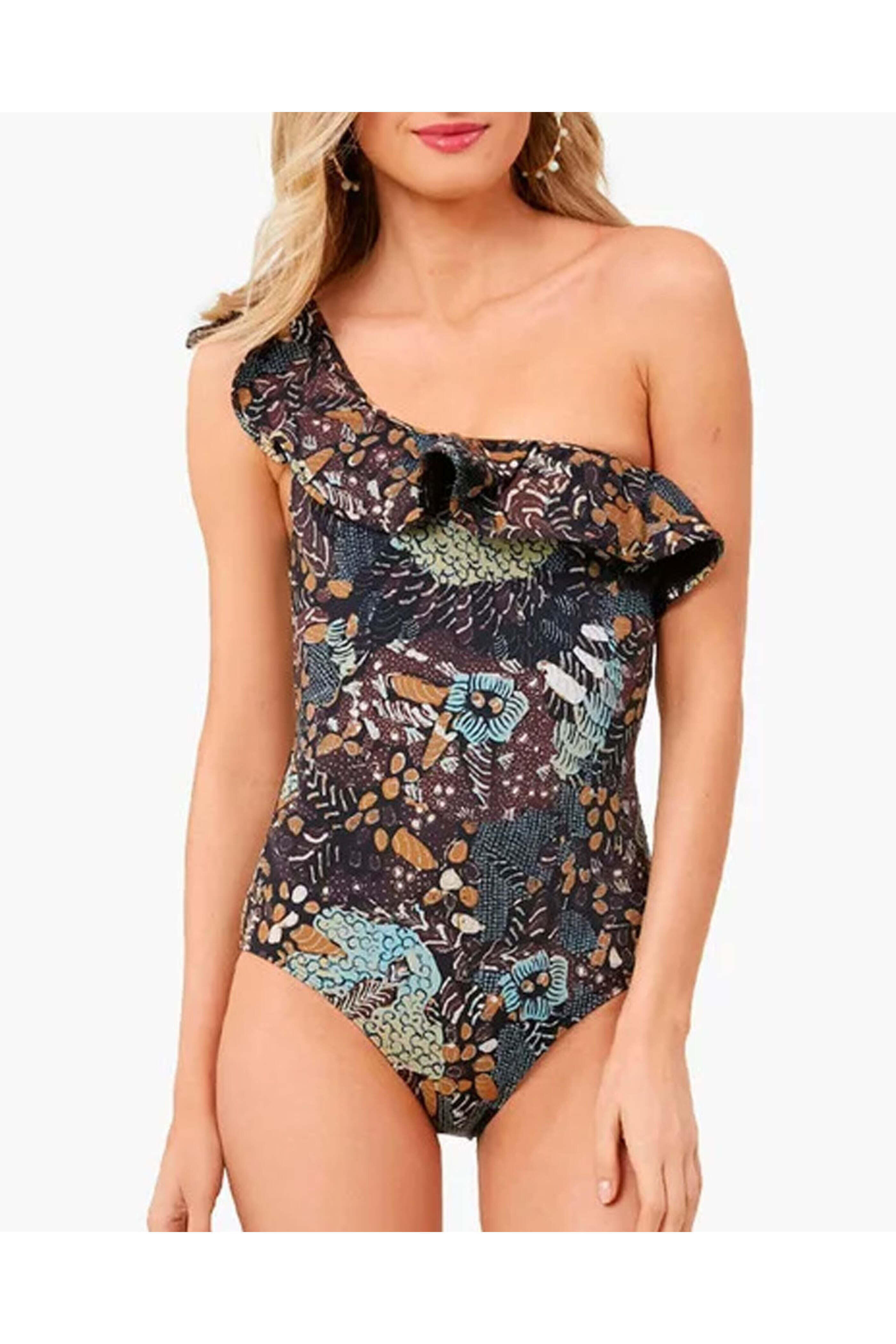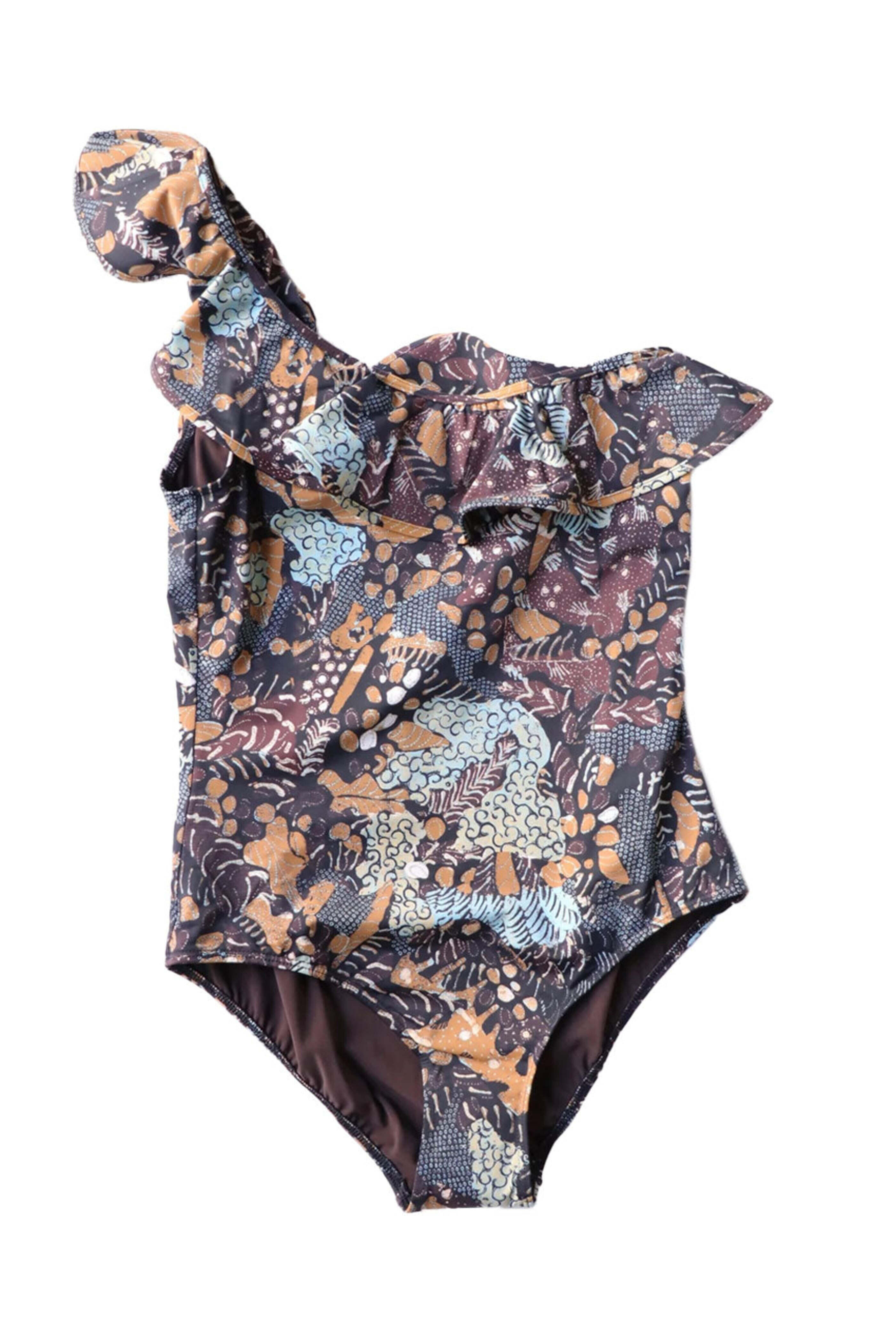 Ulla Johnson Martina Maillot One Piece in Batik. One shoulder. Oversized ruffle. Unpadded. One piece. Regular fit. Lined. Made in Europe. Self: 80% polyamide, 20% elastane. Lining: 72% polyamide, 28% elastane.