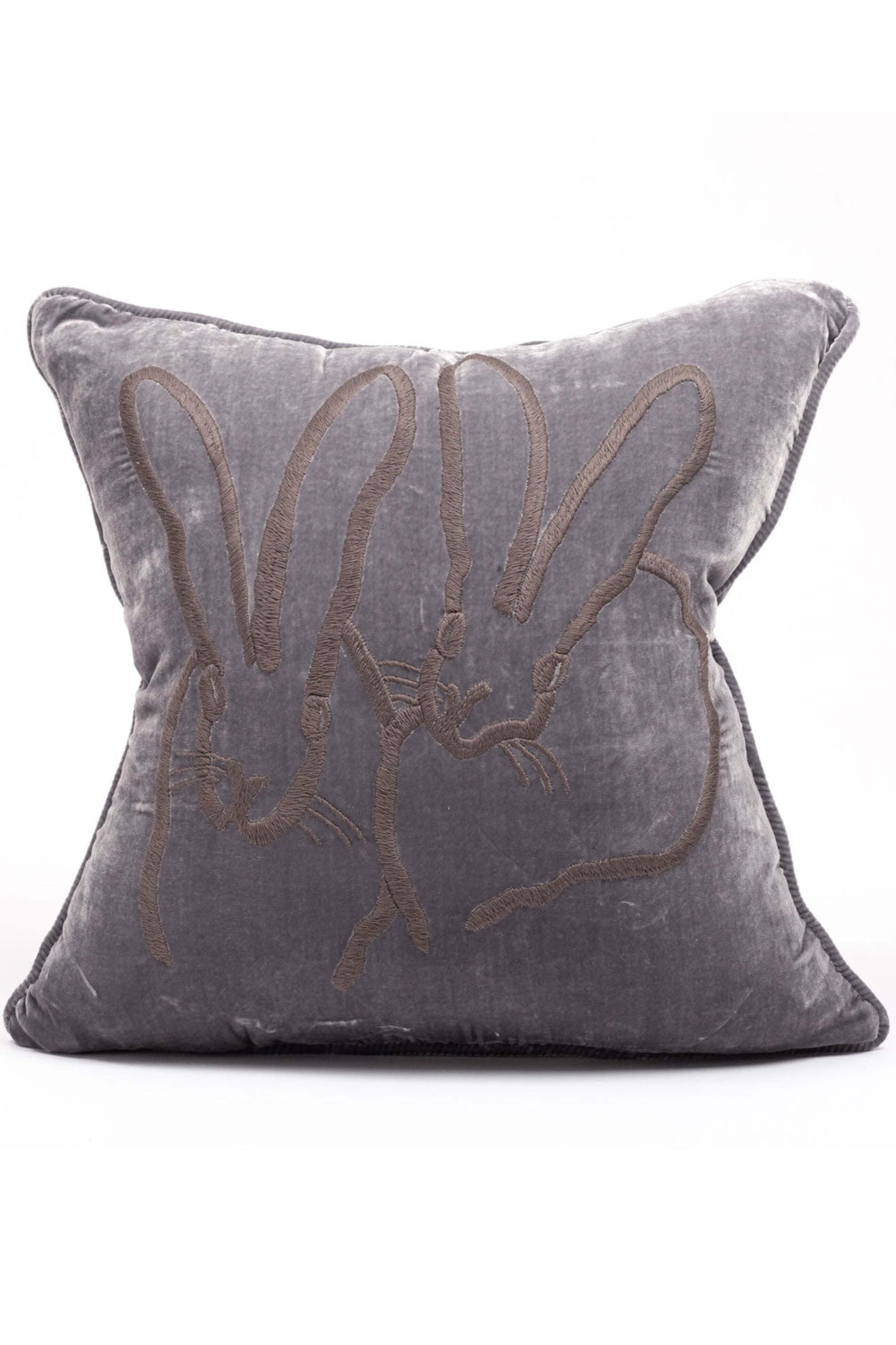 - Hunt Slonem Grey Velvet Bunny Pillow Hand embroidered pillow Hidden zipper on the bottom Comes finished with 50/50 down fill