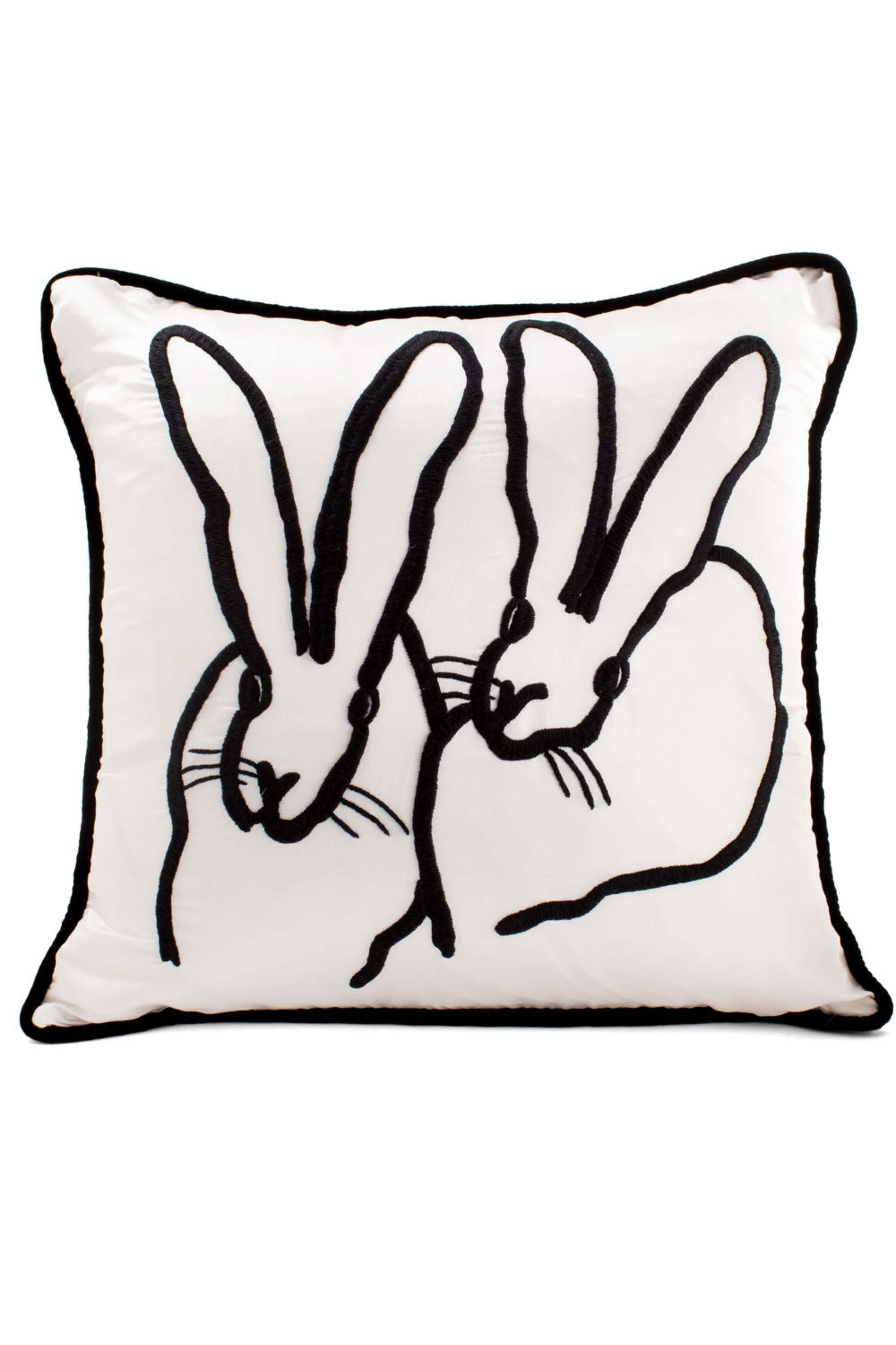 - Hunt Slonem White Embroidered Silk and Velvet Bunny Pillow