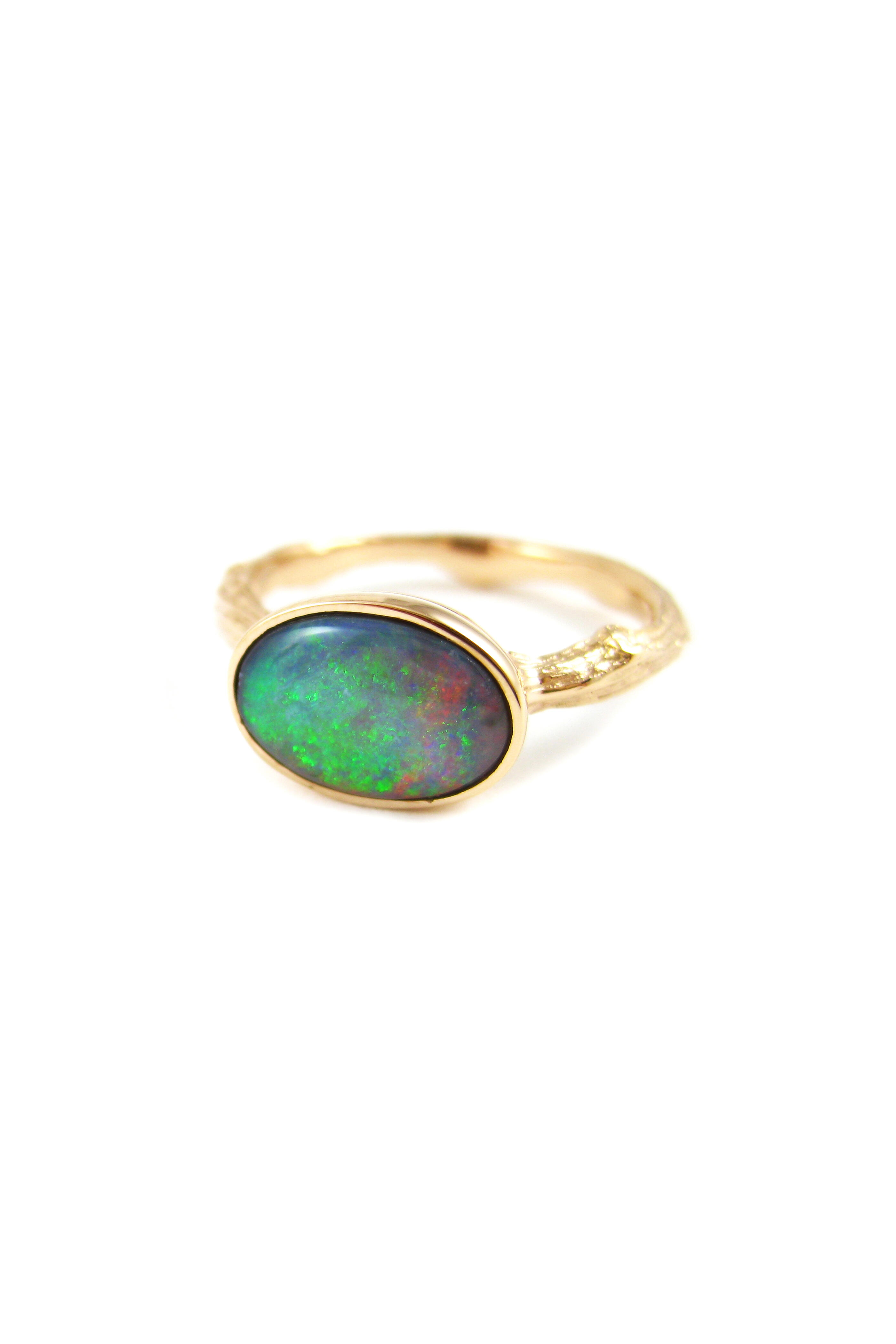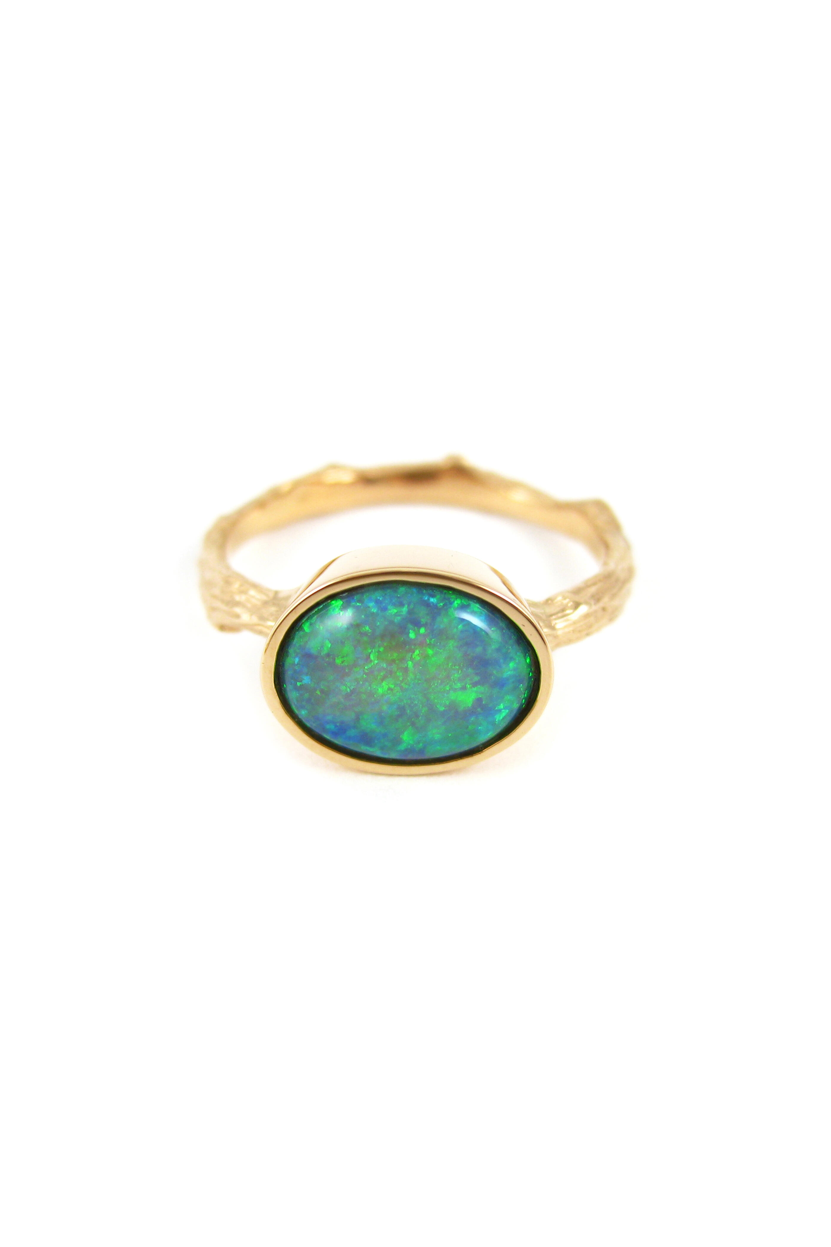 18k Yellow Gold. Opal. Twig detail. Call for ring size.