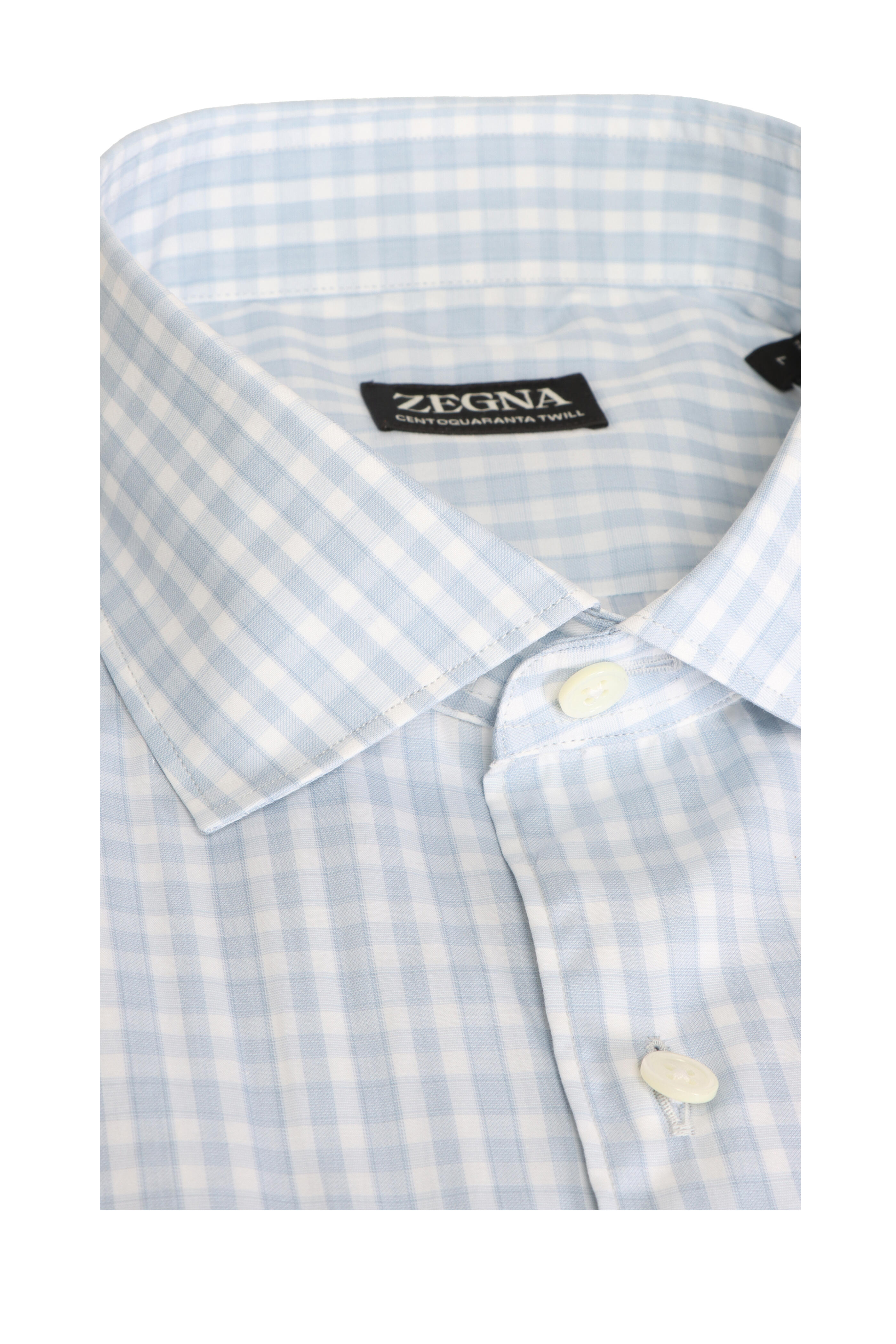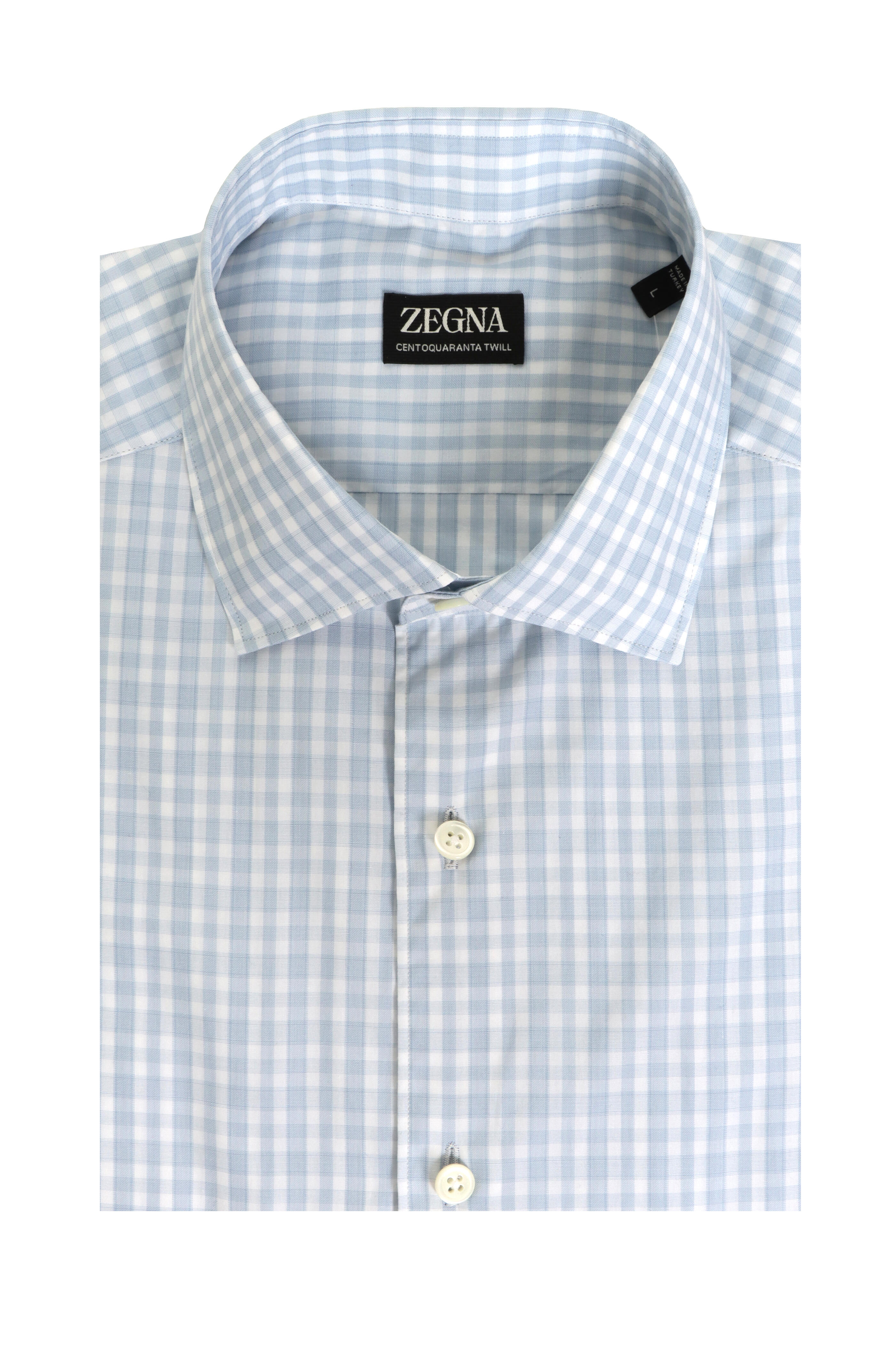 Spread collar. French front button placket. Single button cuffs. Imported. 100% cotton. Dry clean.